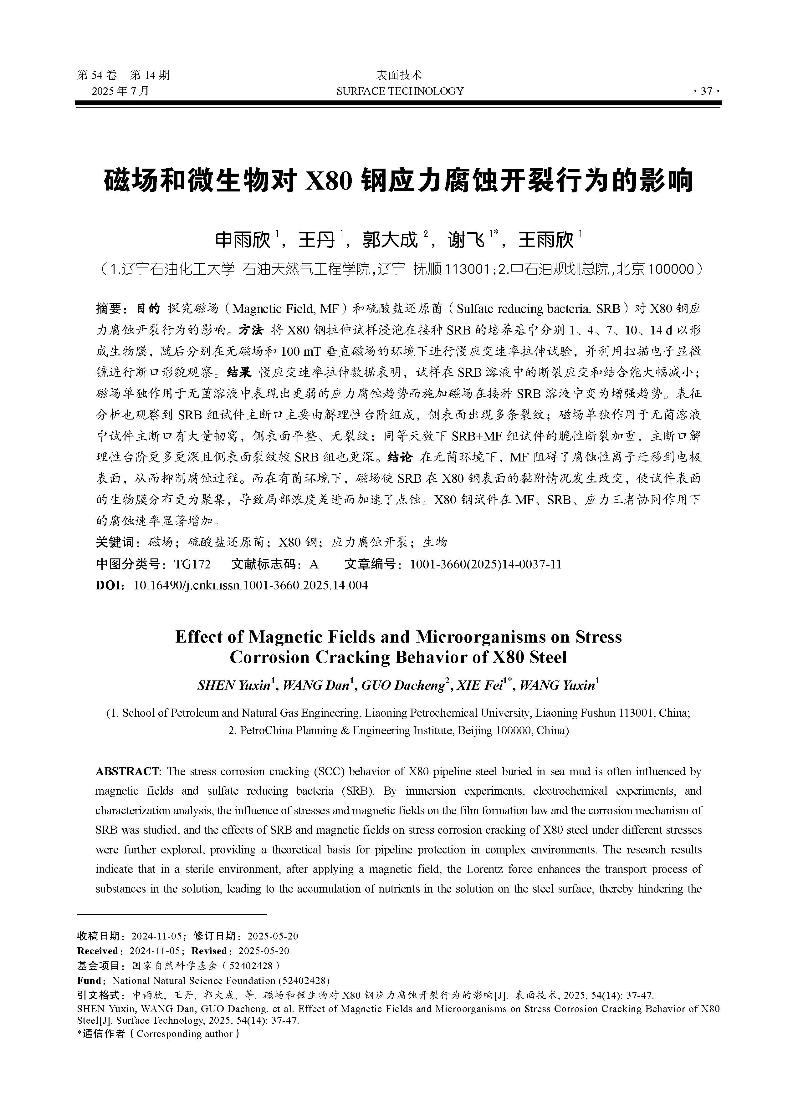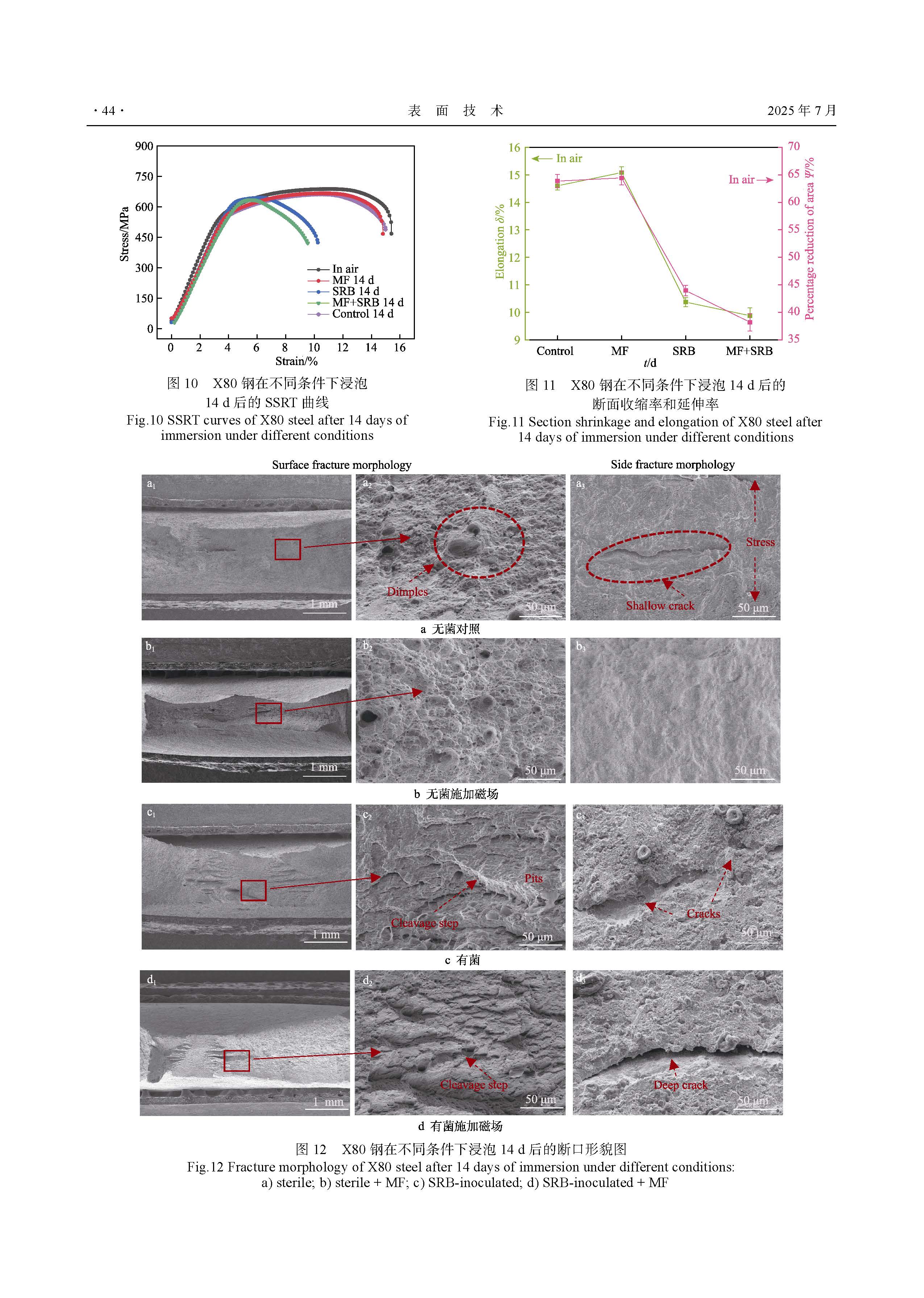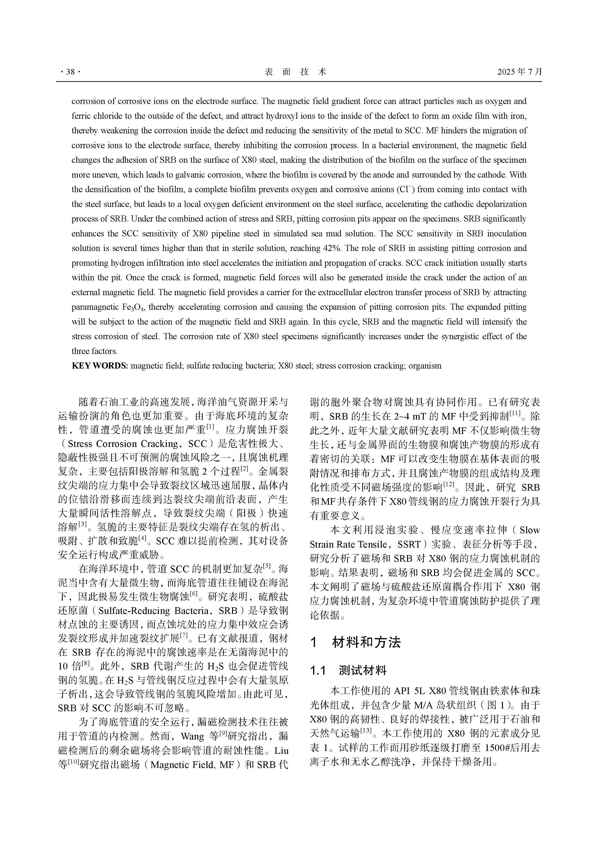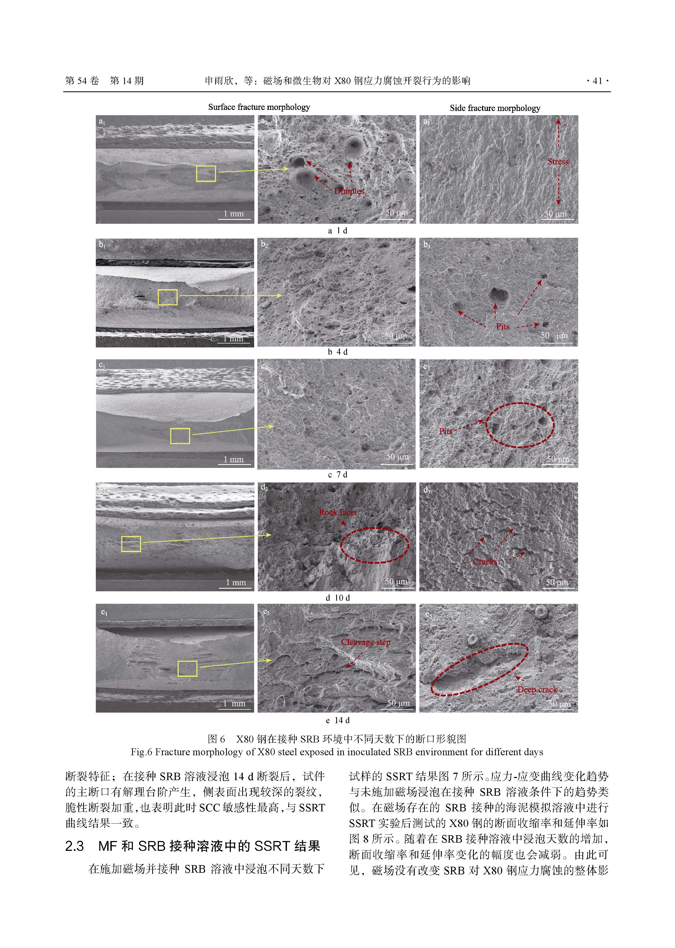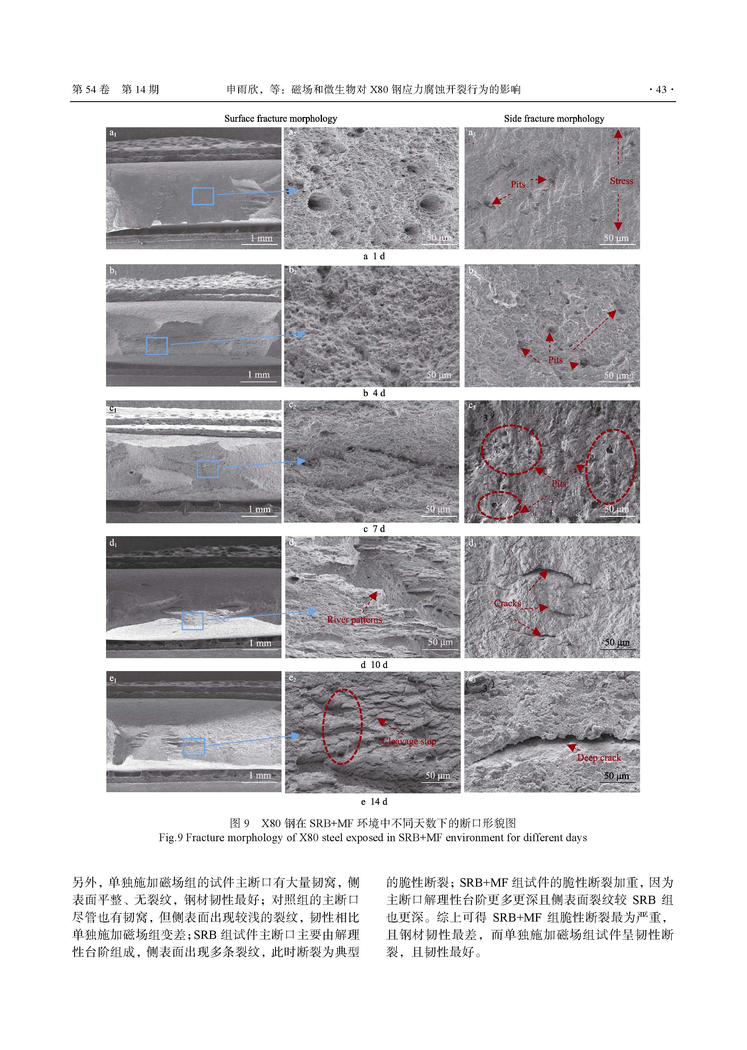 磁场和微生物对X80钢应力腐蚀开裂行为的影响