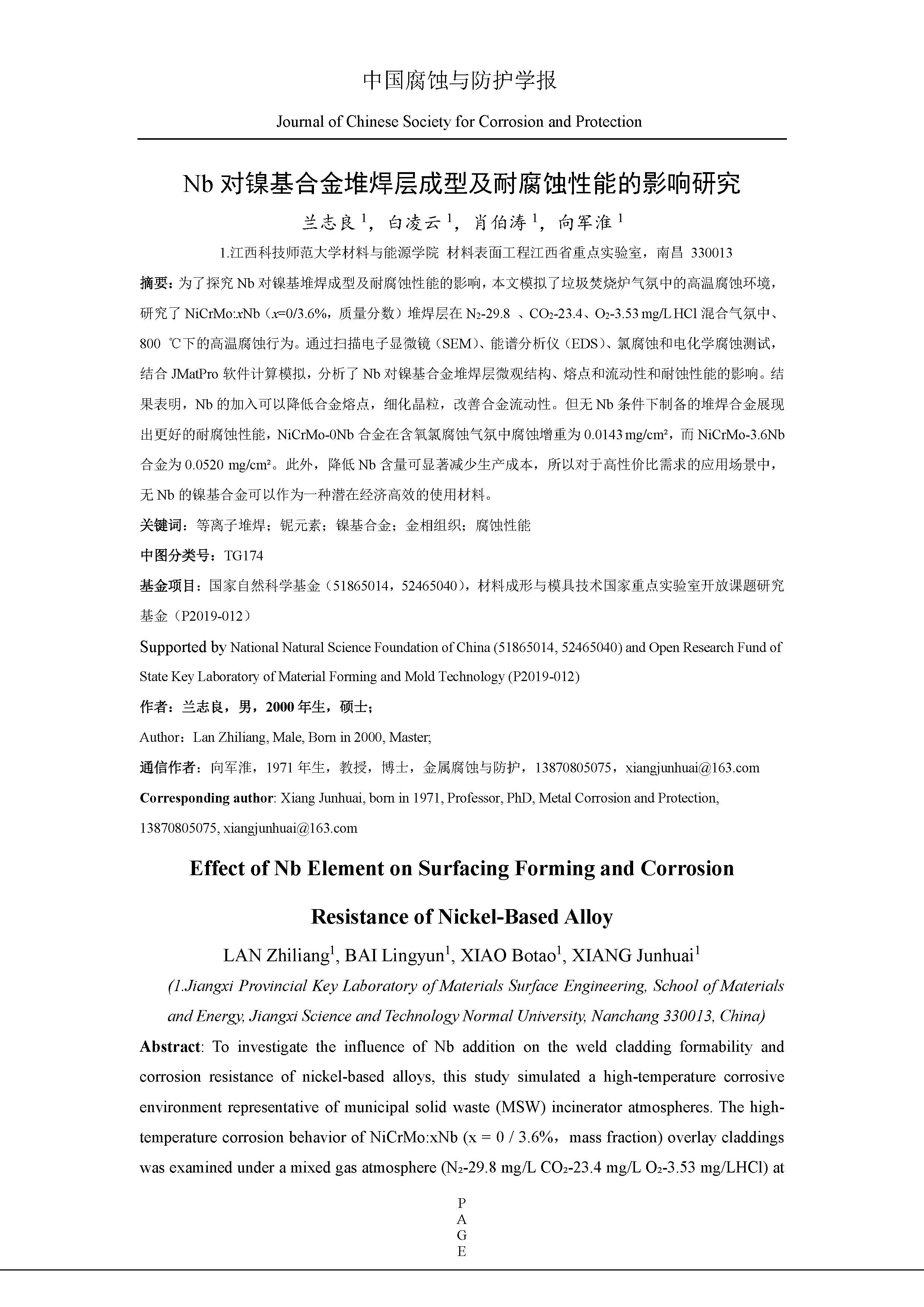 来源:中国腐蚀与防护学报