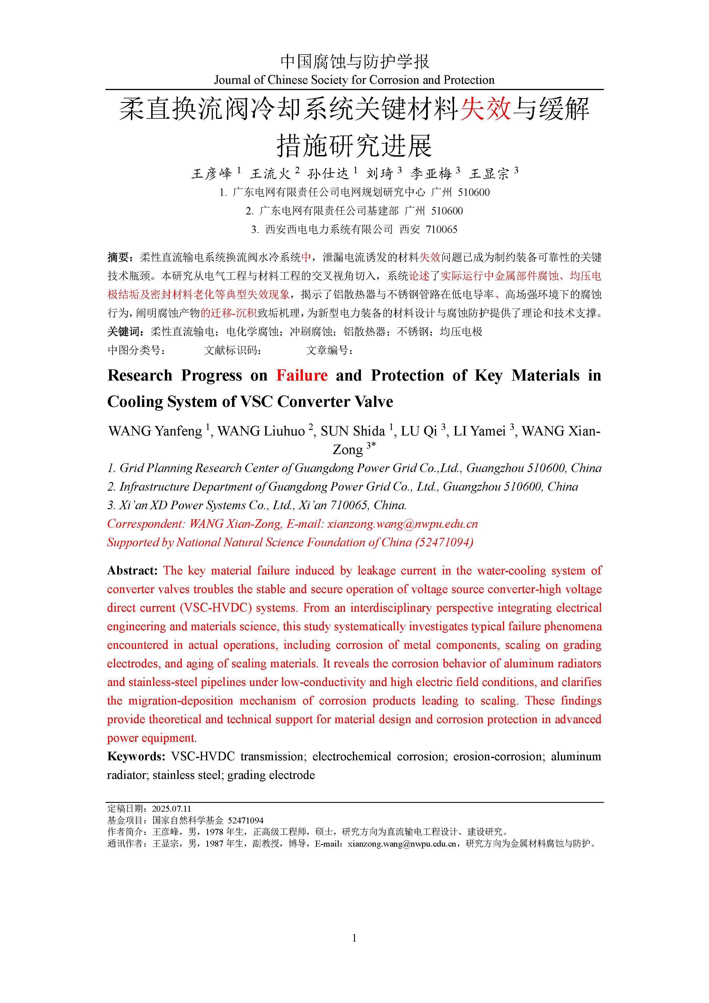 柔直换流阀冷却系统关键材料失效与缓解措施研究进展