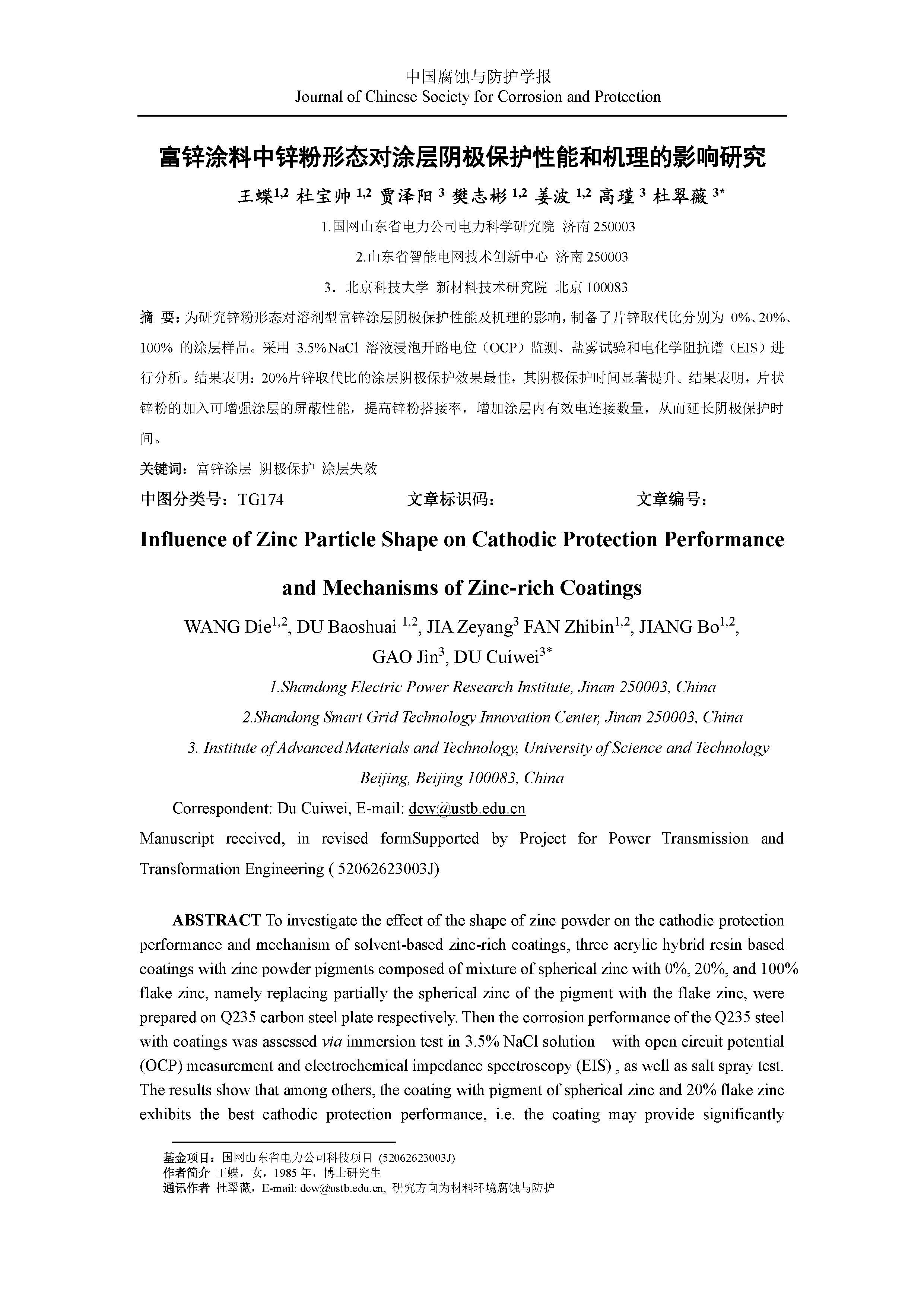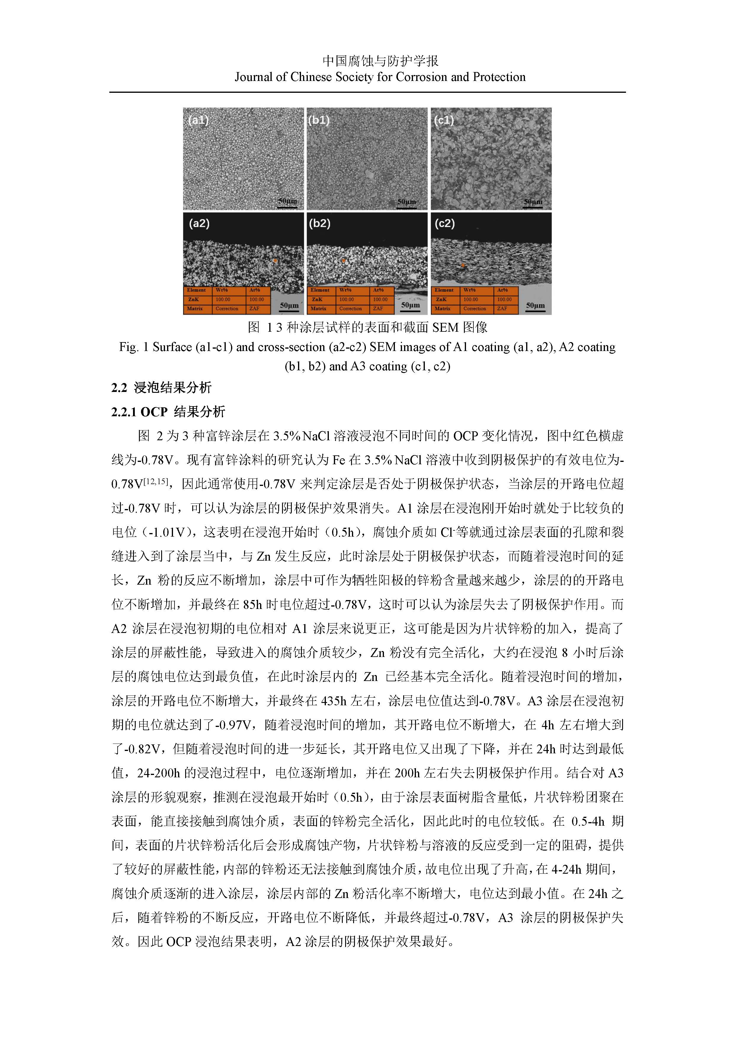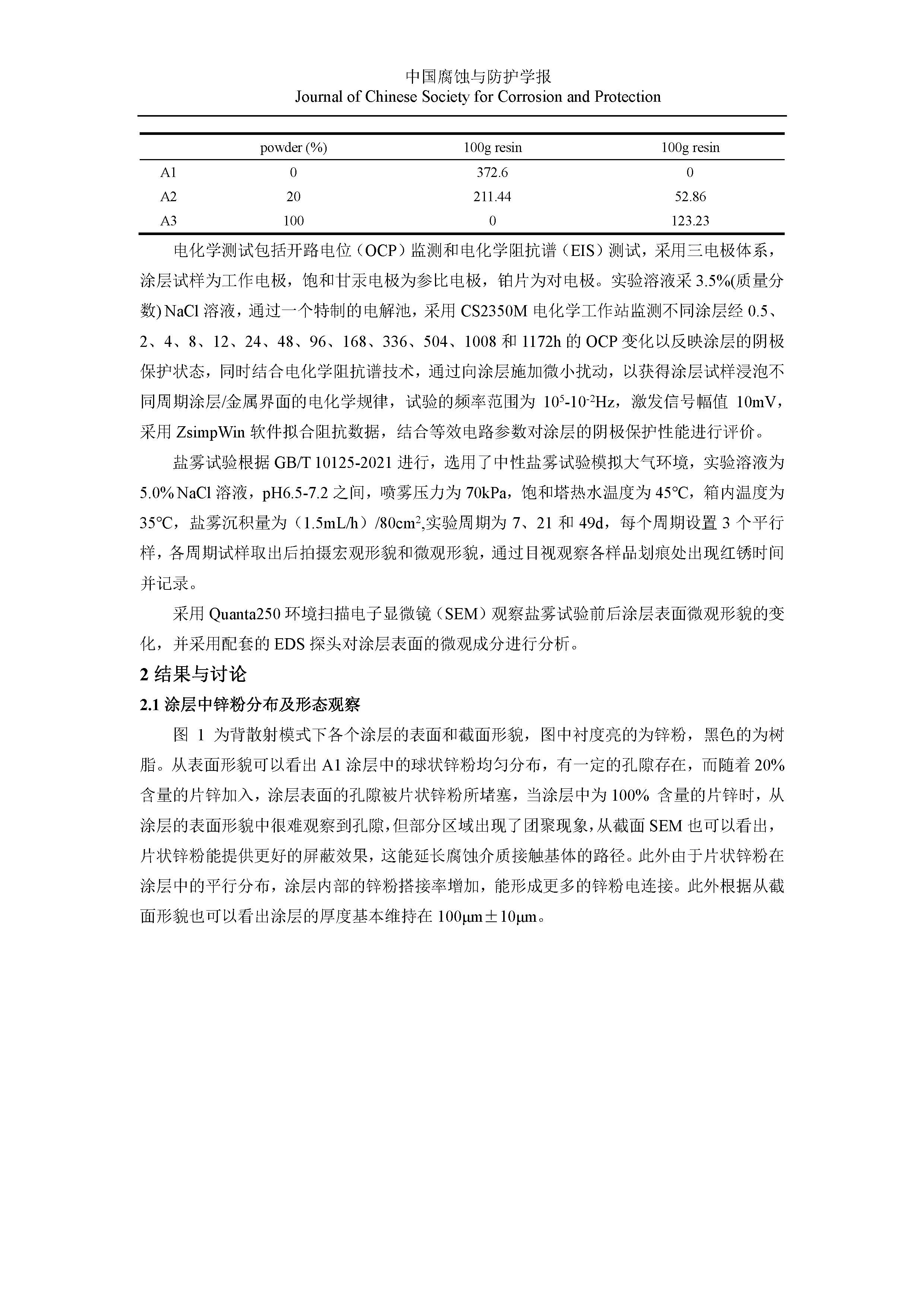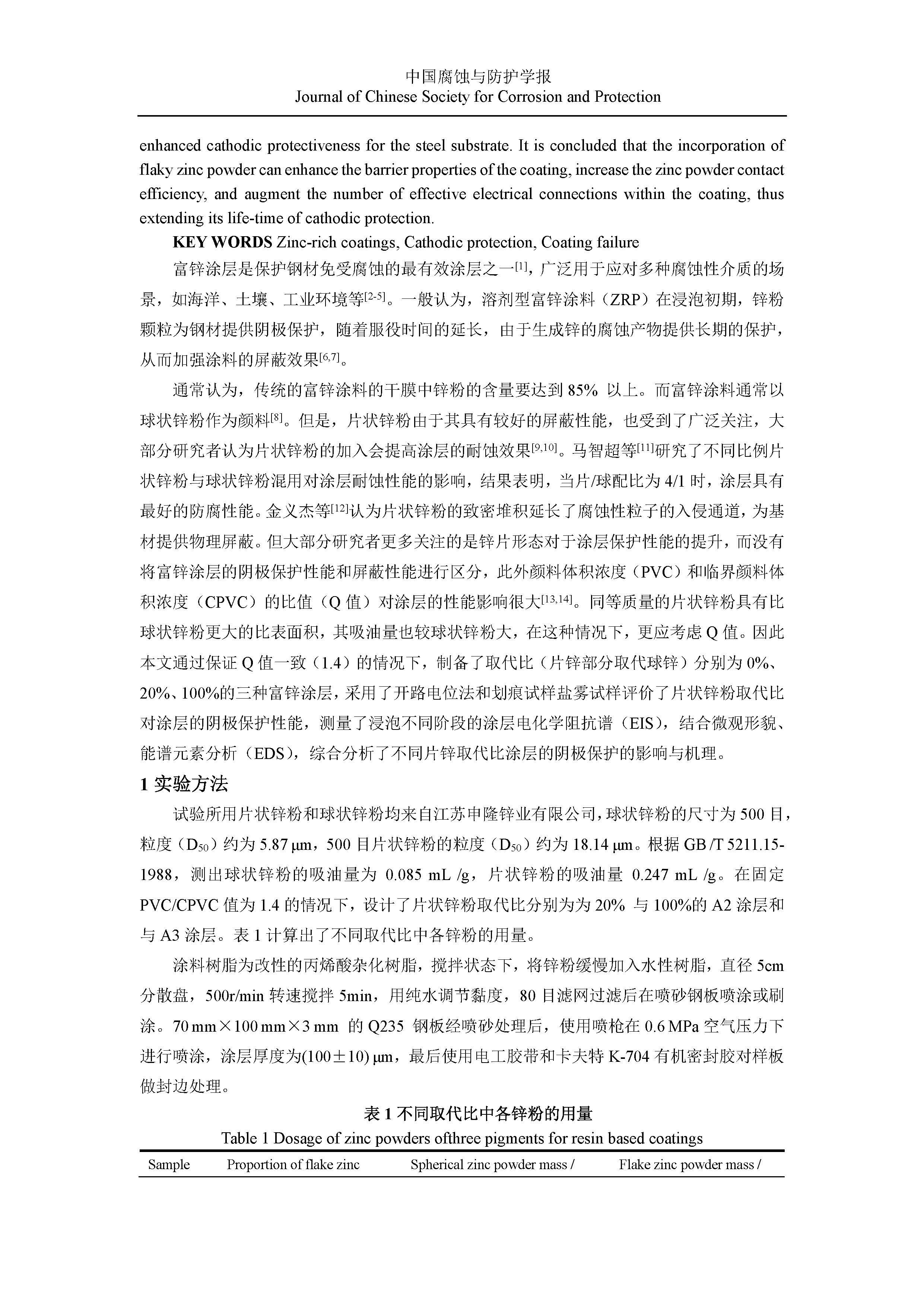 富锌涂料中锌粉形态对涂层阴极保护性能和机理的影响研究