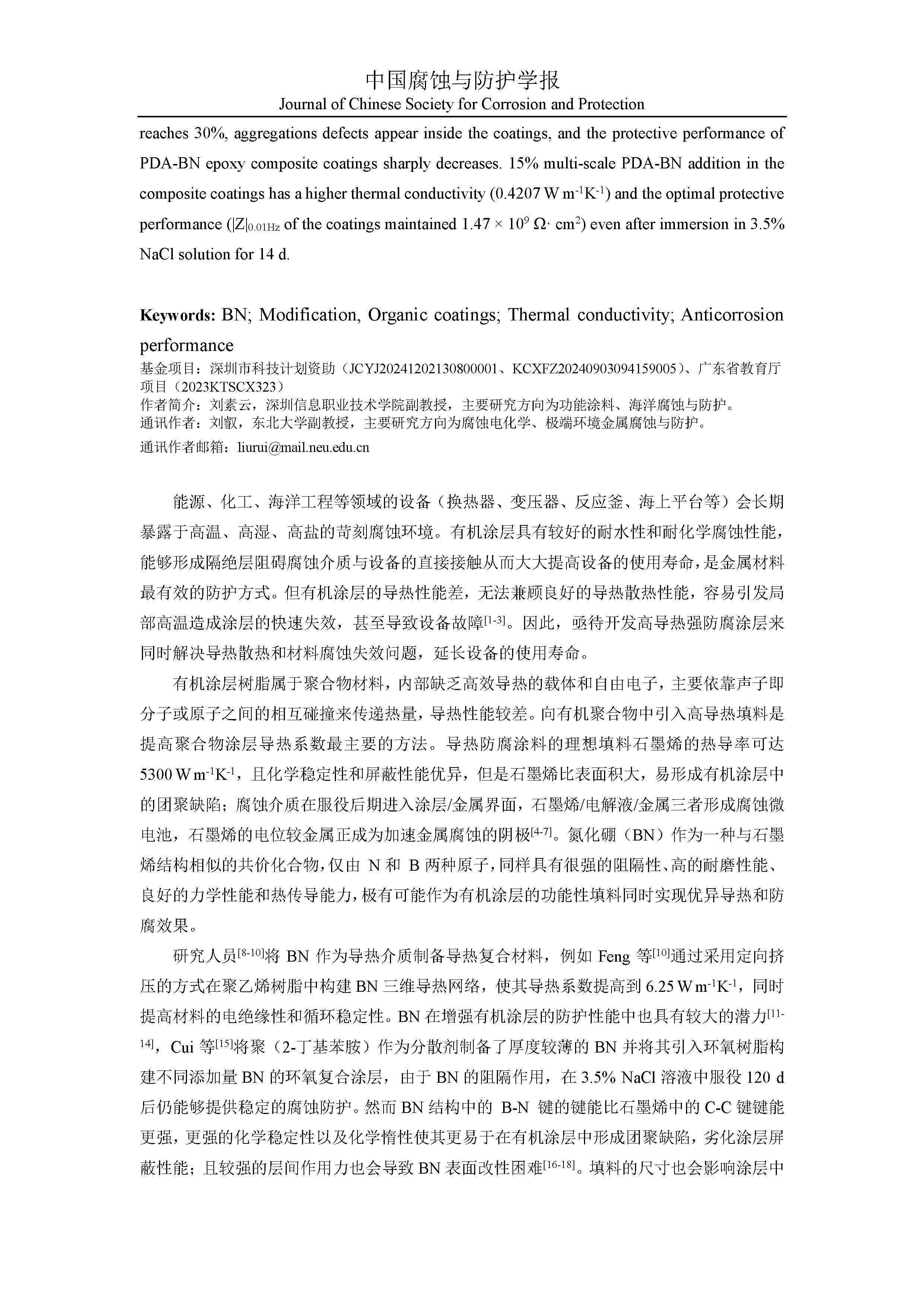 聚多巴胺改性多尺寸氮化硼环氧复合涂层导热防腐性能研究