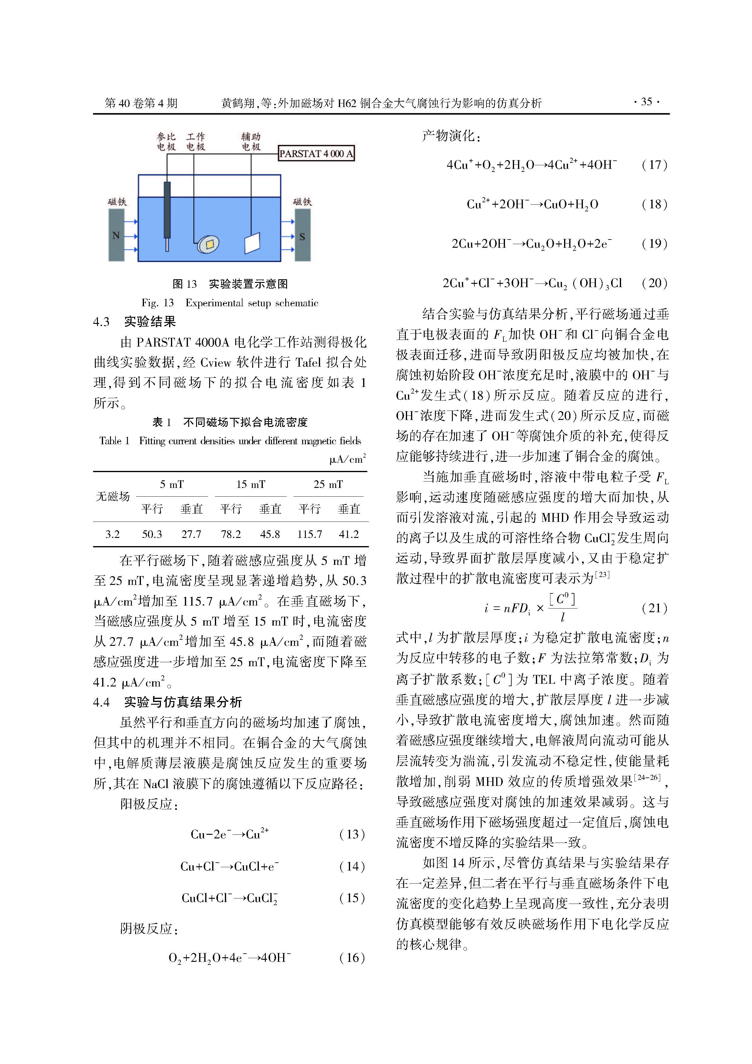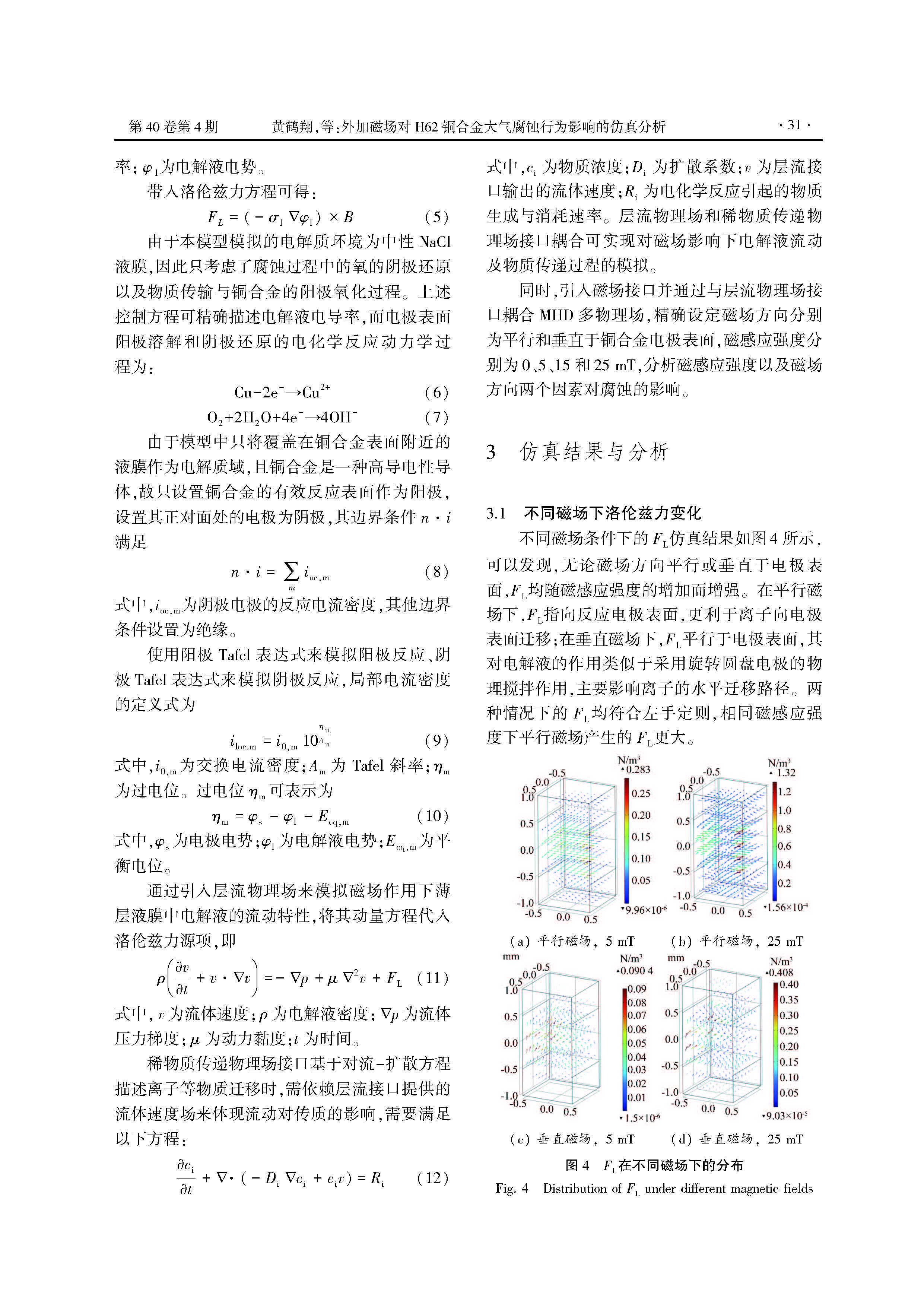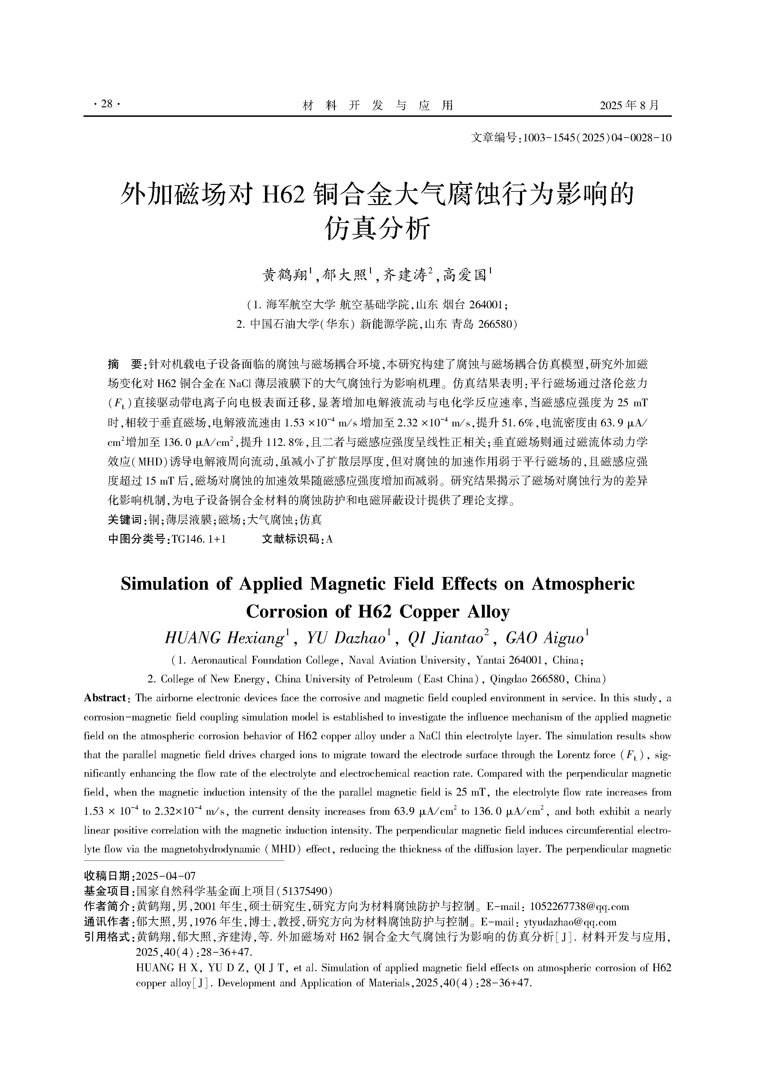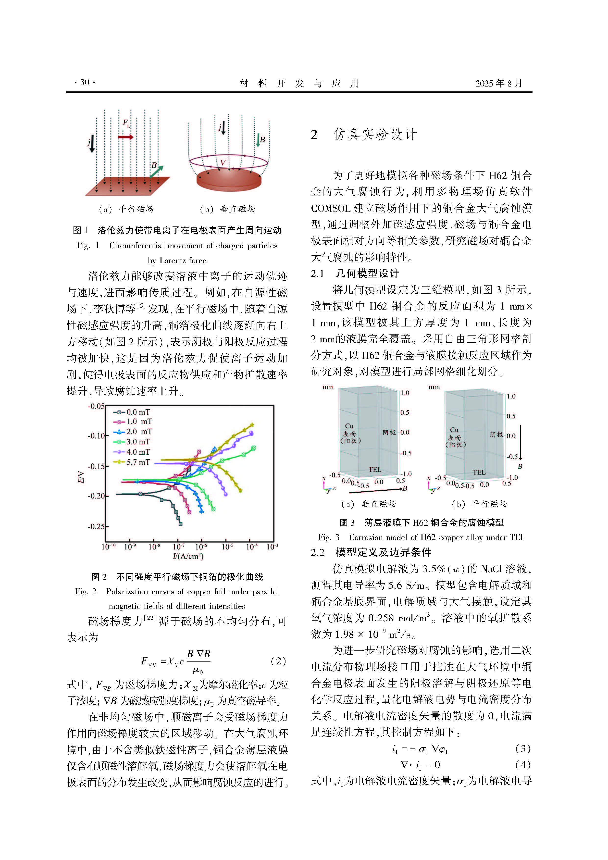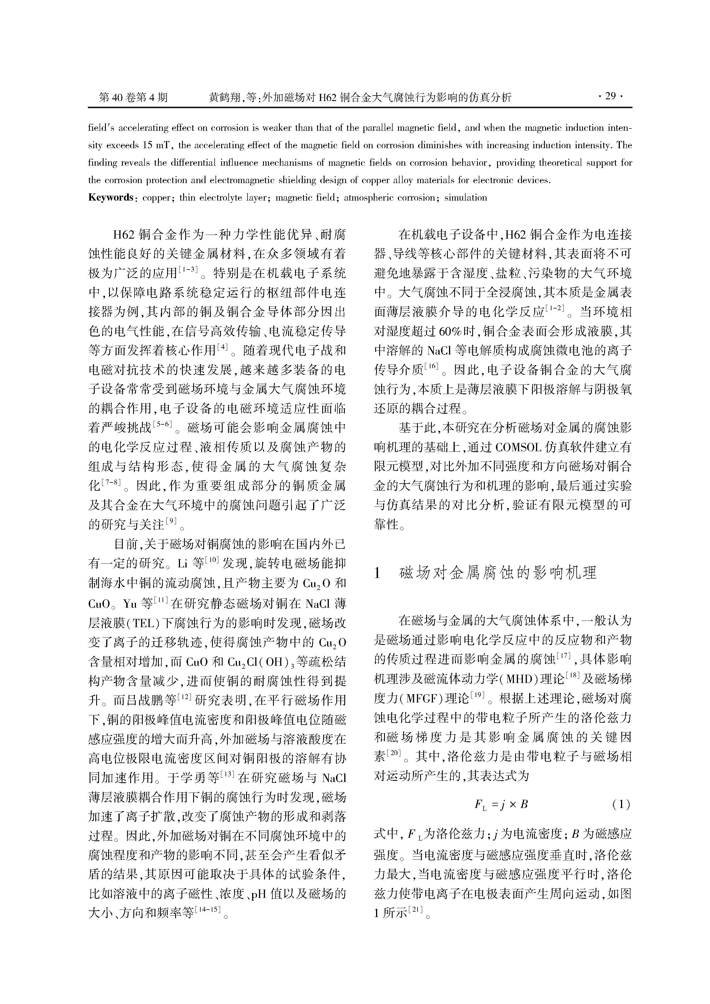 外加磁场对H62铜合金大气腐蚀行为影响的仿真分析