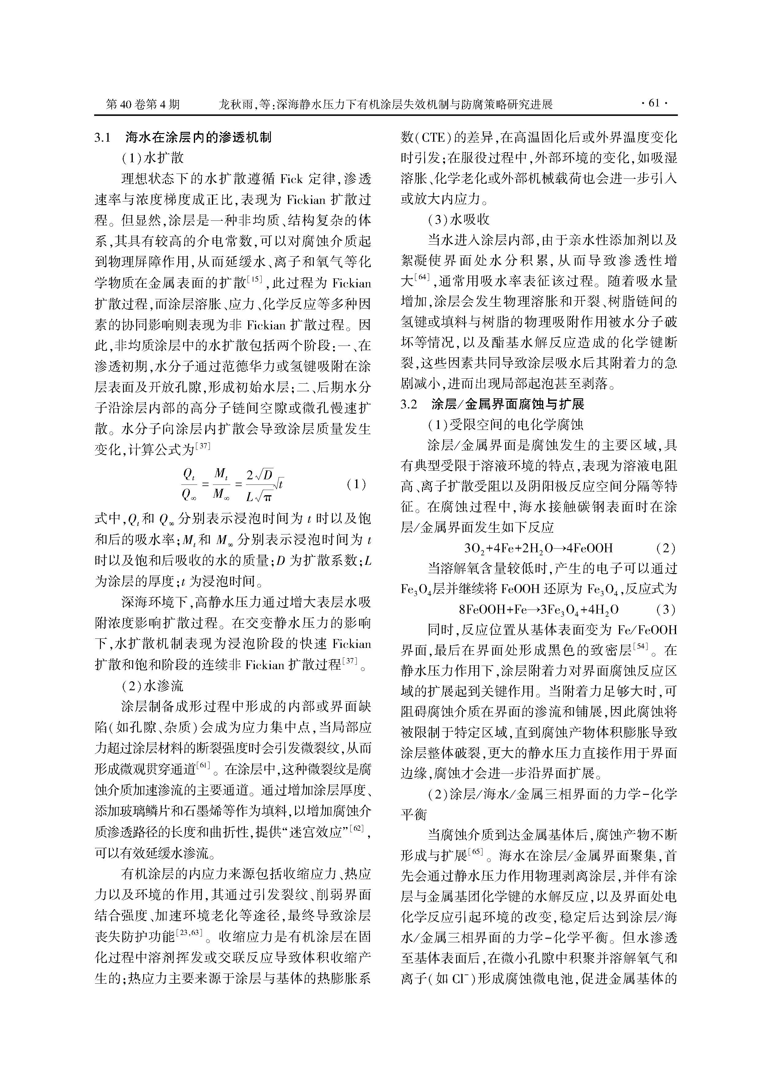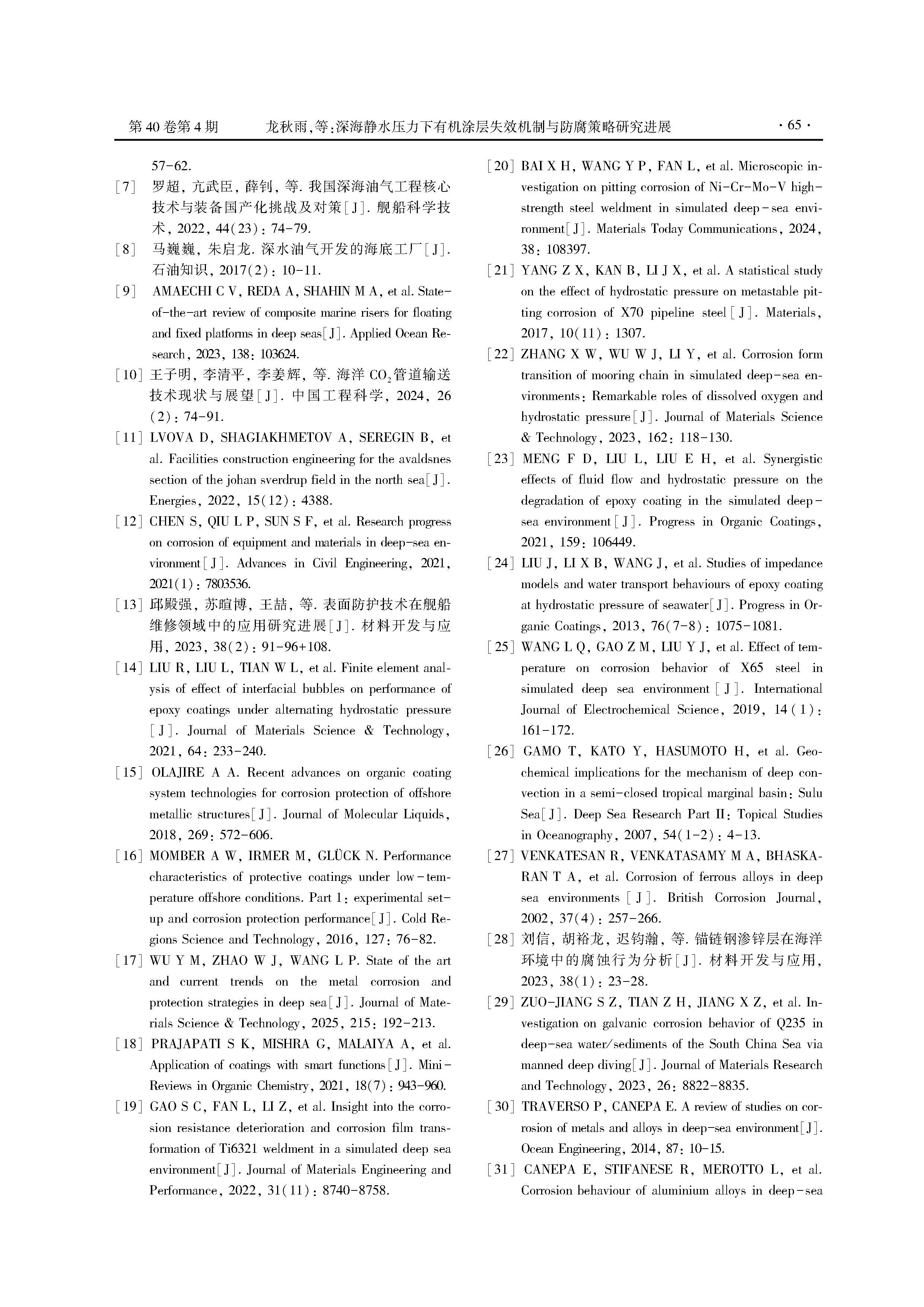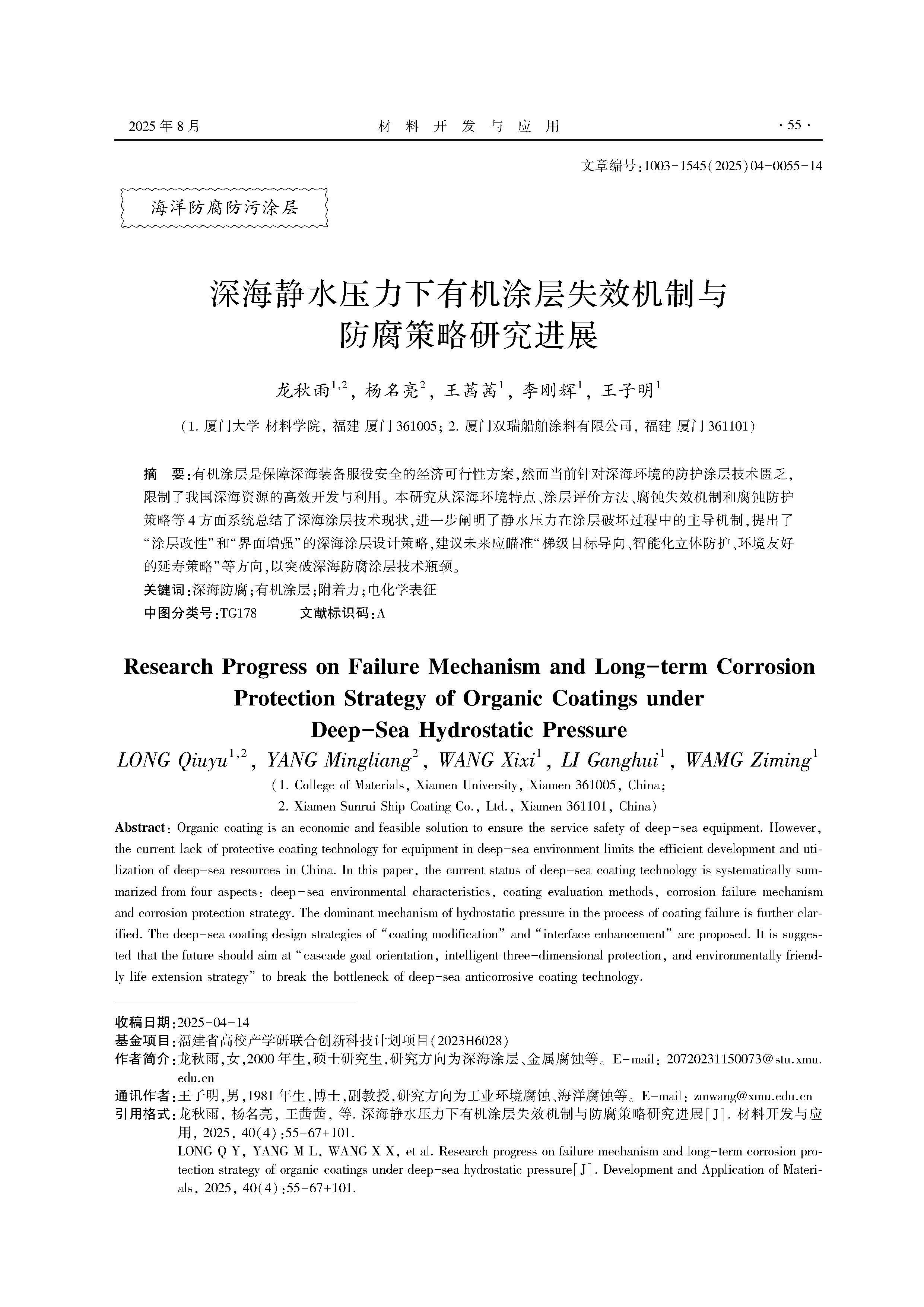 深海静水压力下有机涂层失效机制与防腐策略研究进展