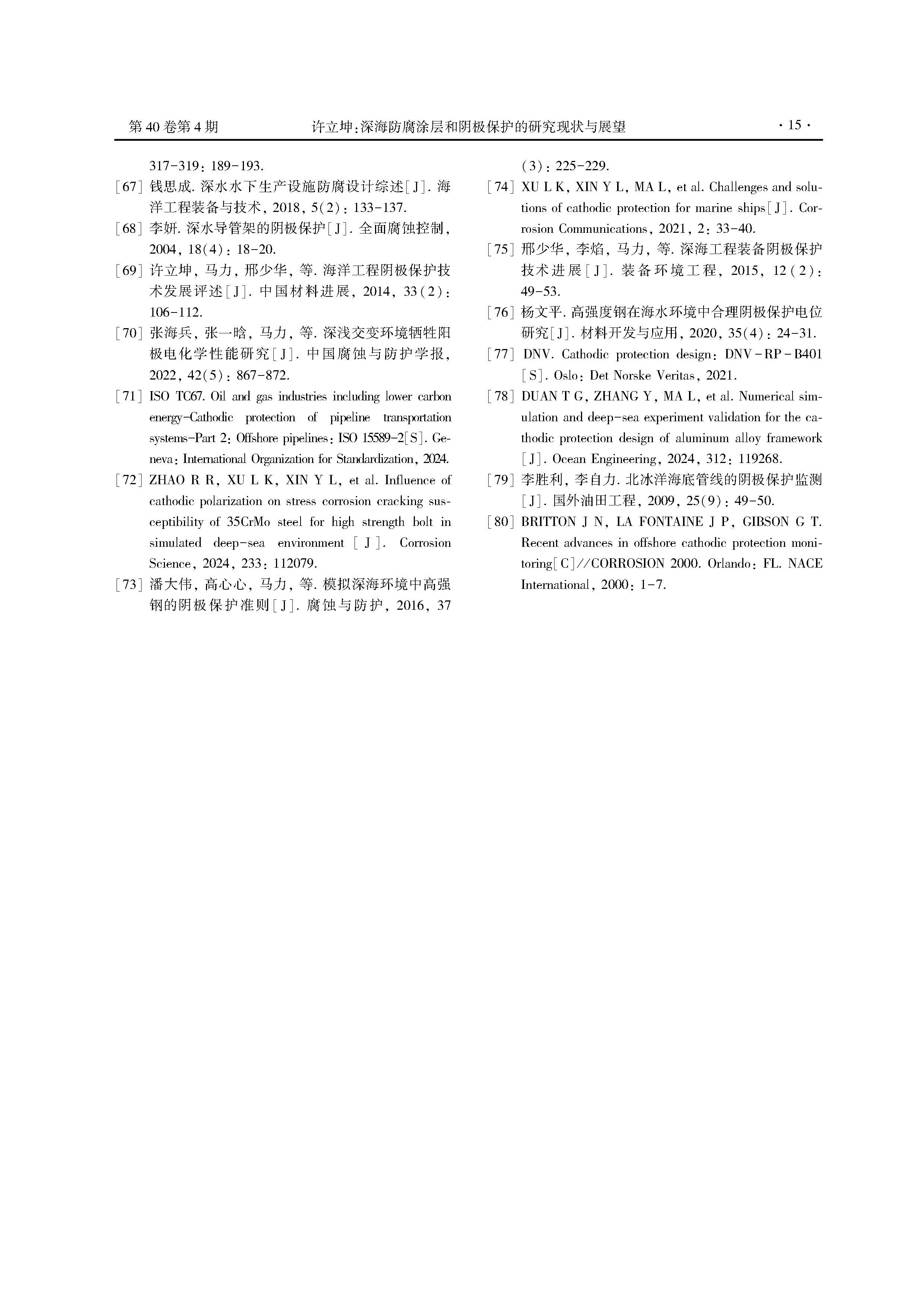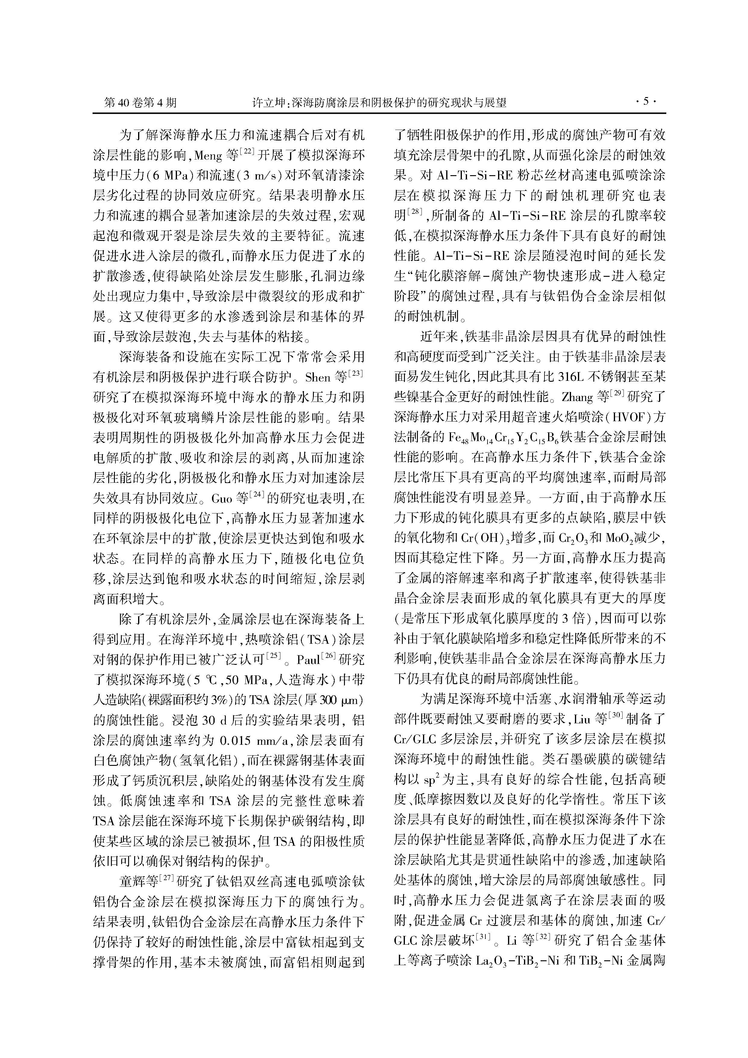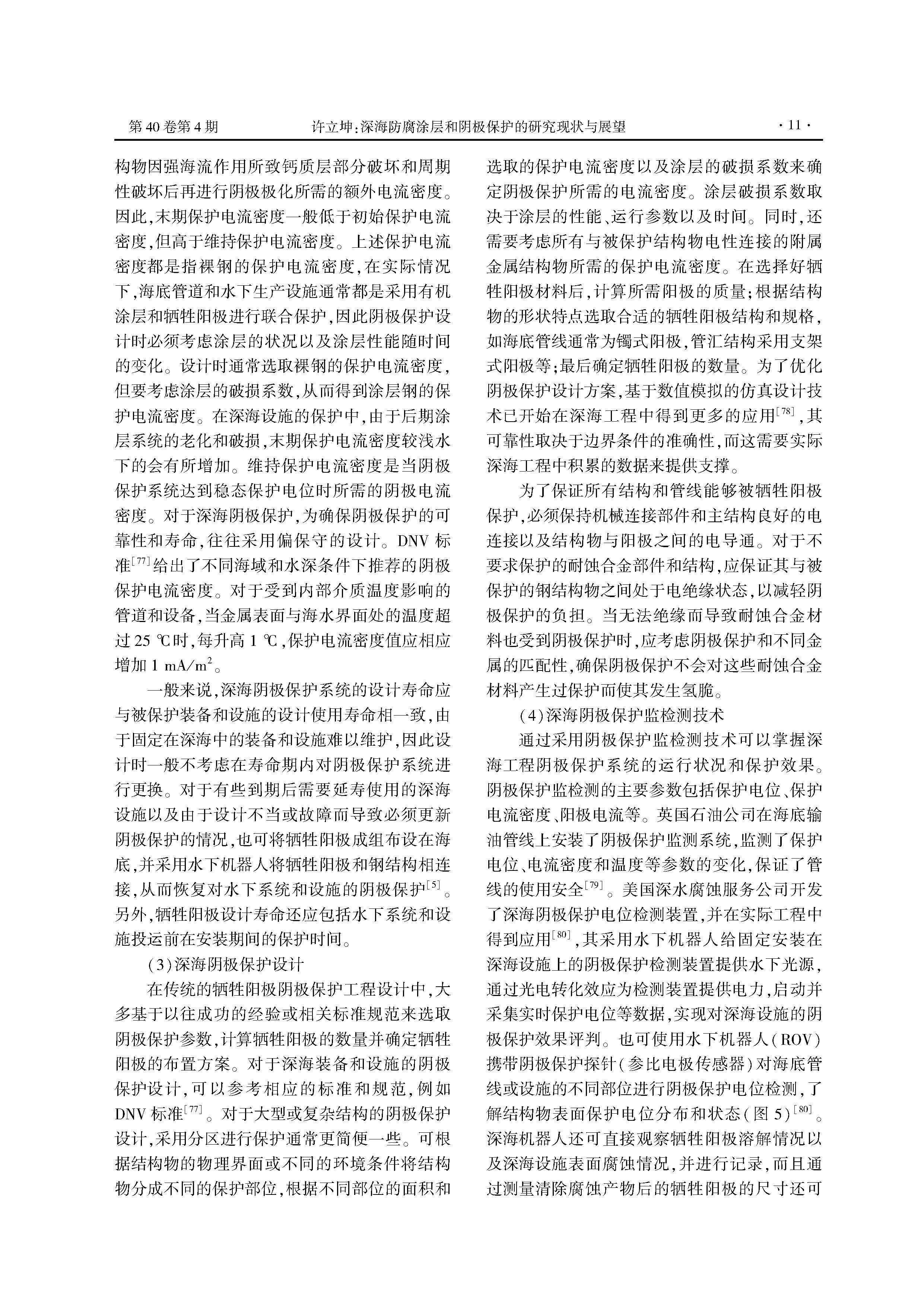 深海防腐涂层和阴极保护的研究现状与展望