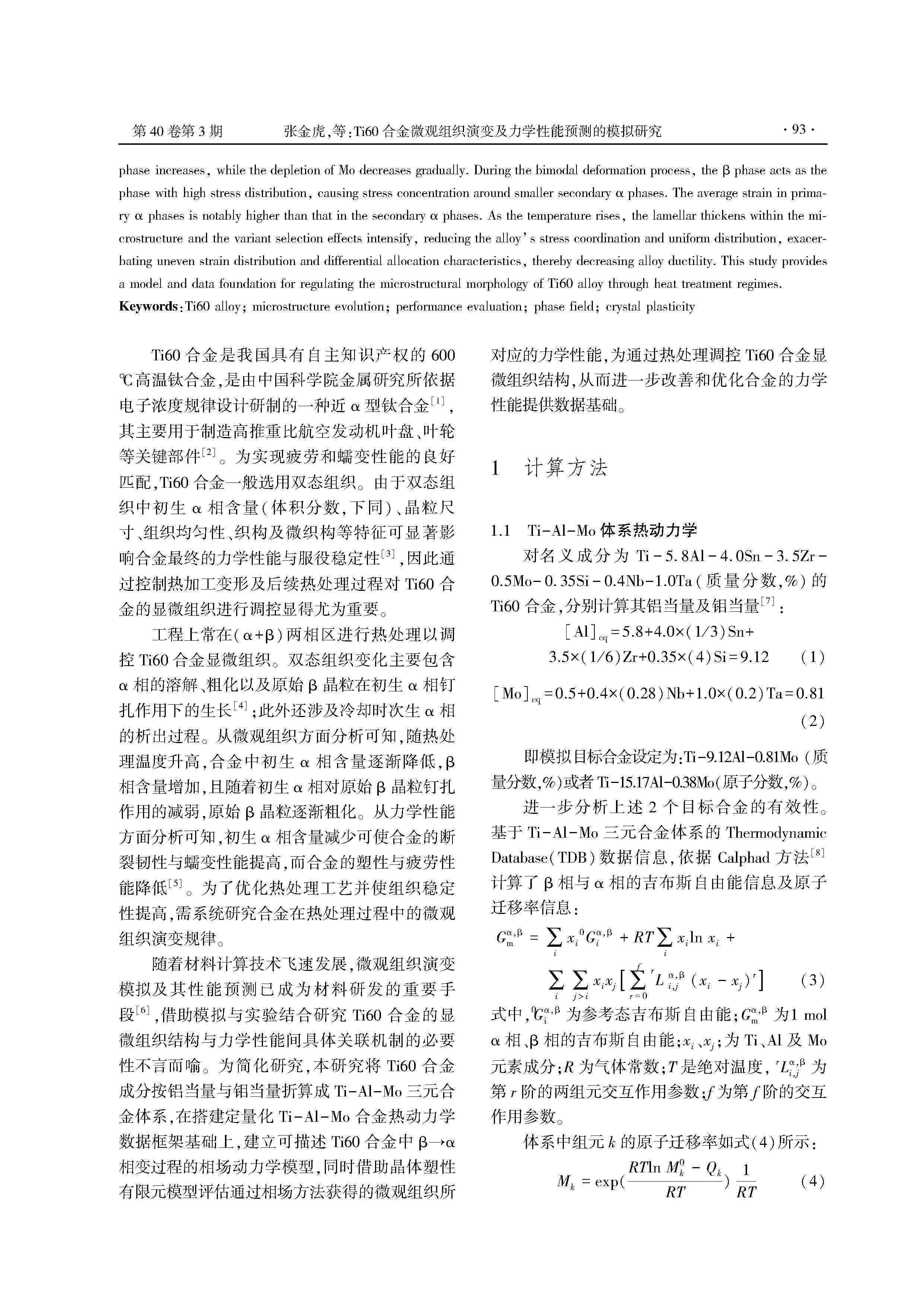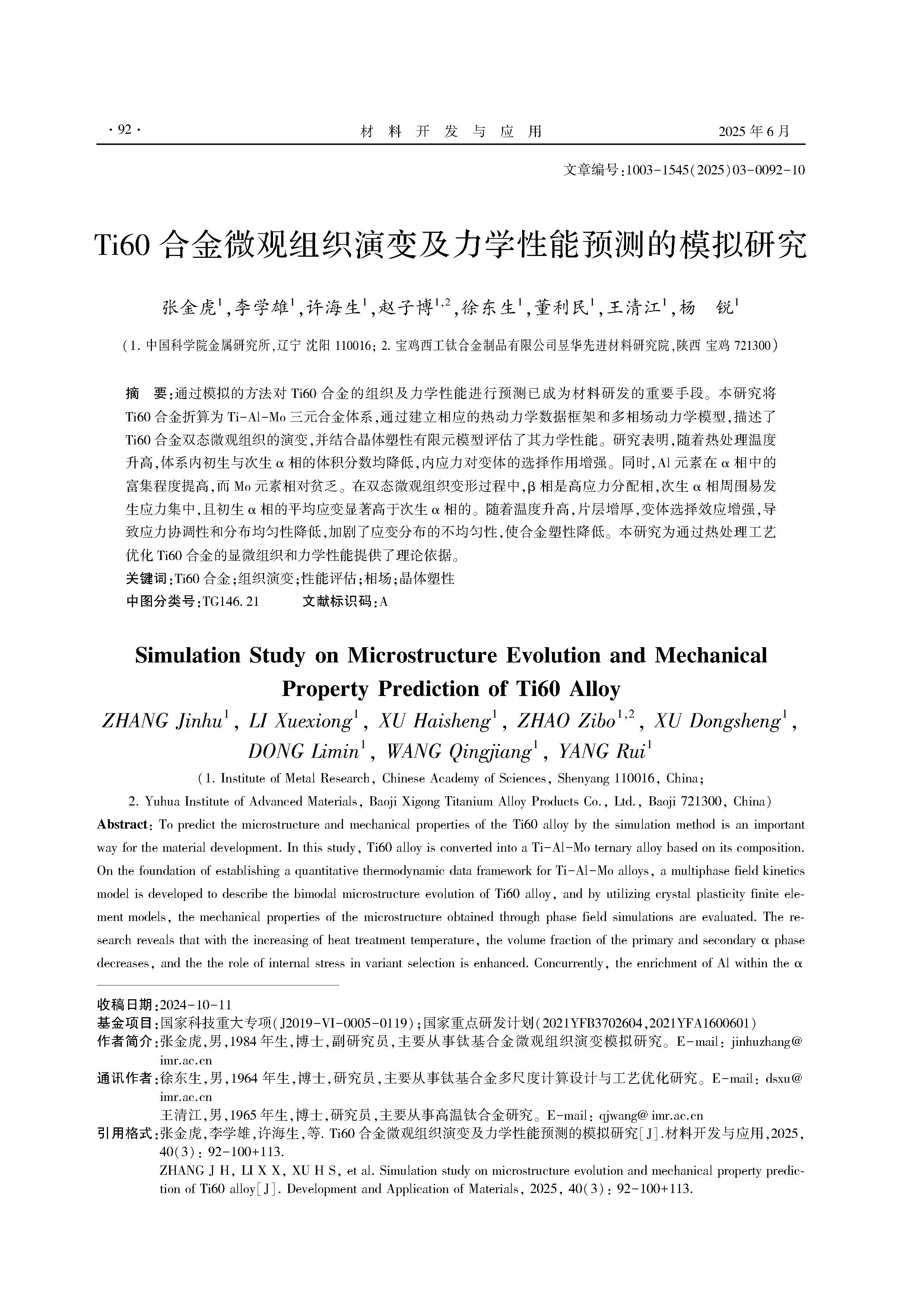Ti60合金微观组织演变及力学性能预测的模拟研究