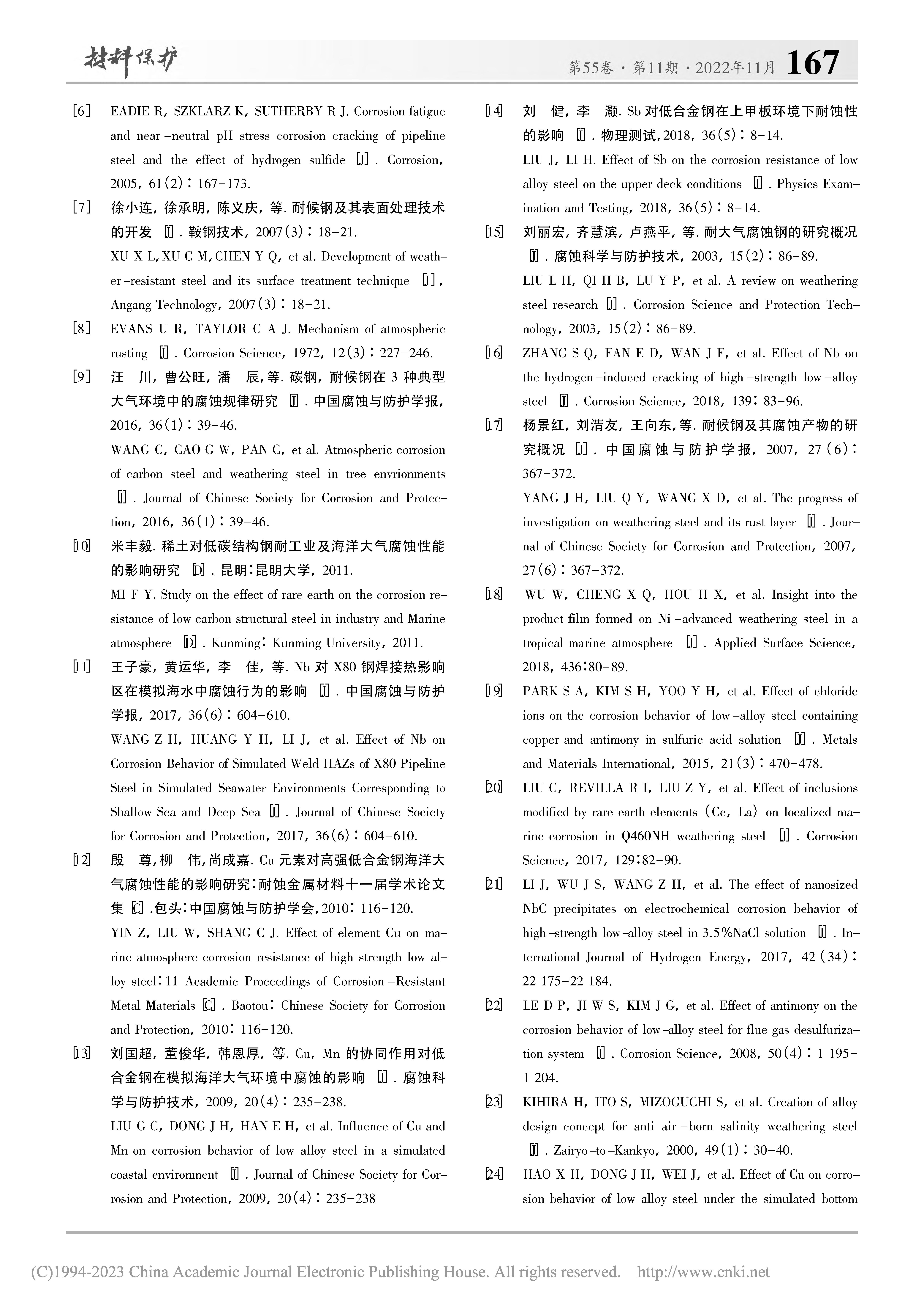 合金元素对低合金结构钢耐蚀性能影响规律的研究进展