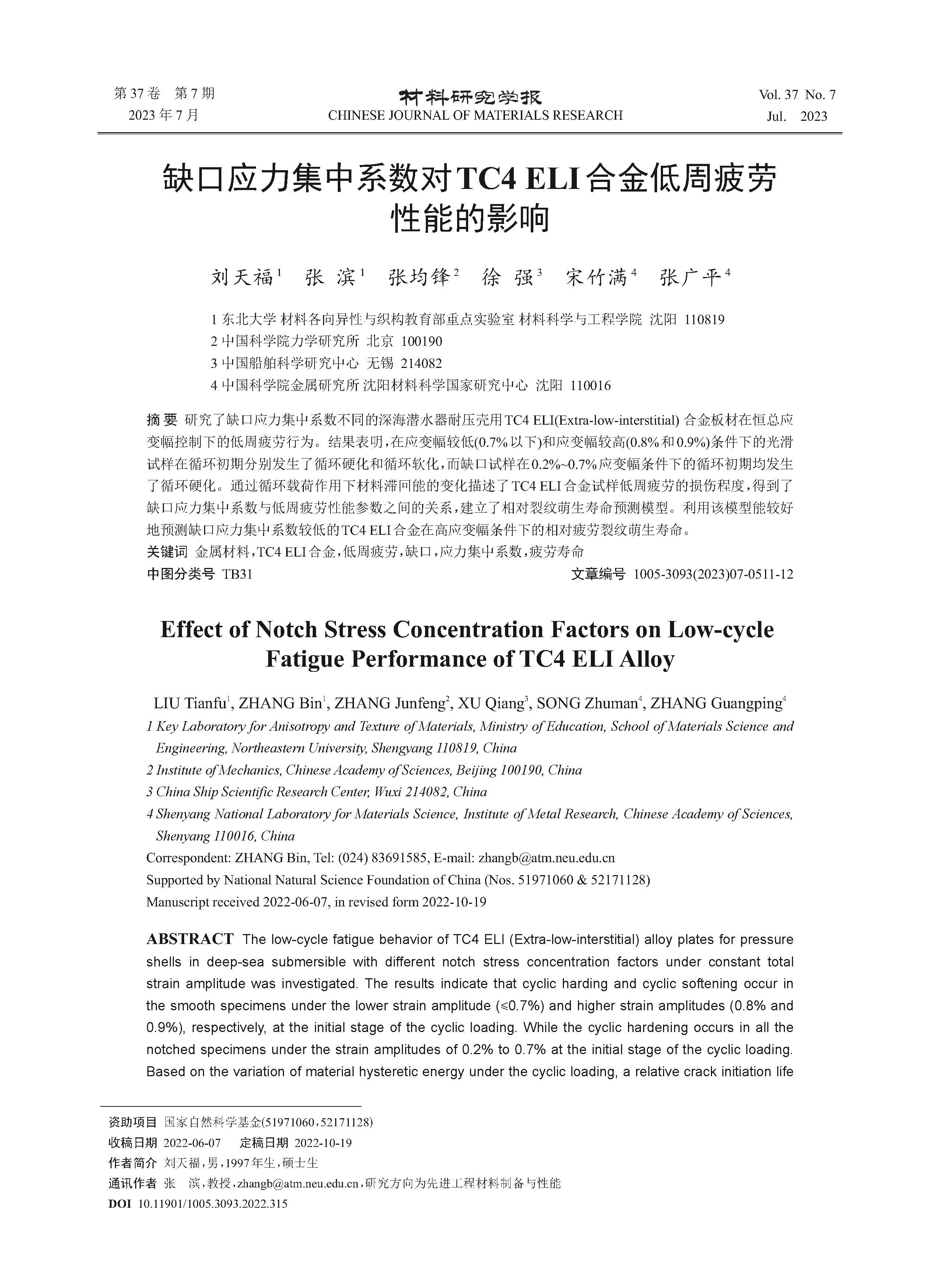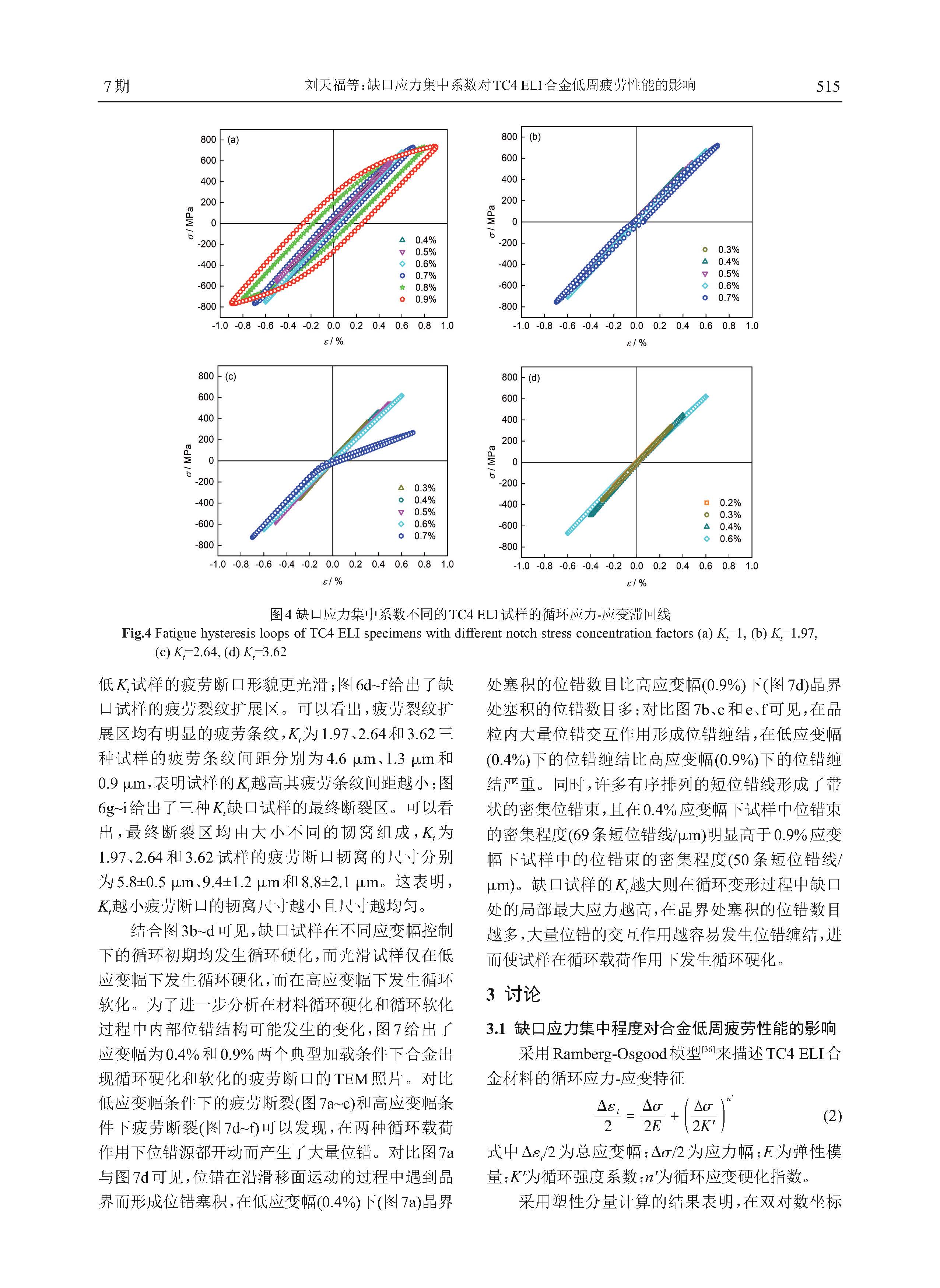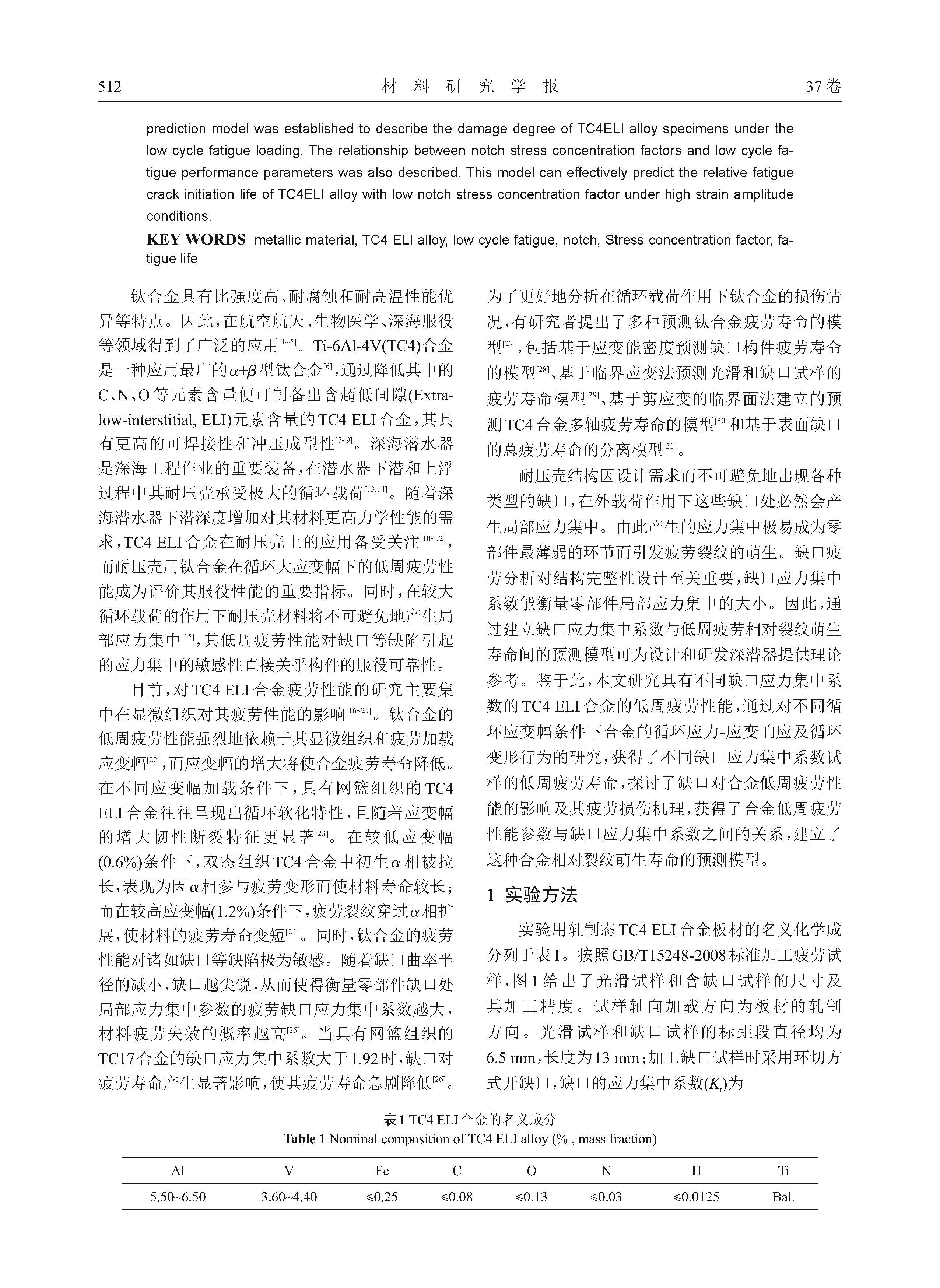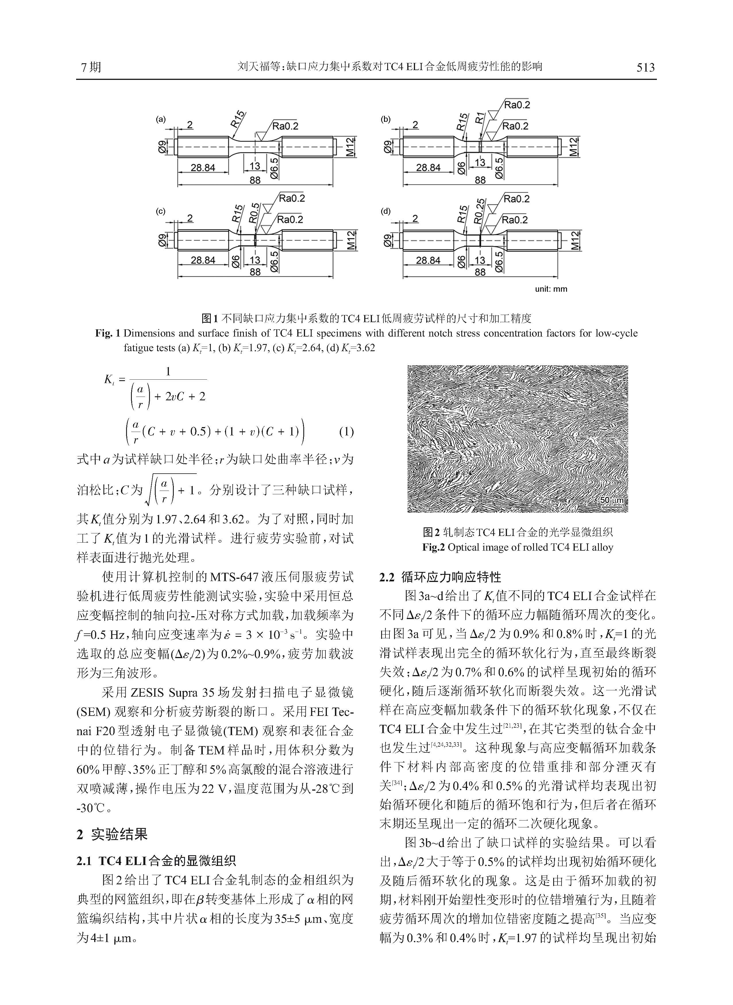 缺口应力集中系数对TC4 ELI合金低周疲劳性能的影响