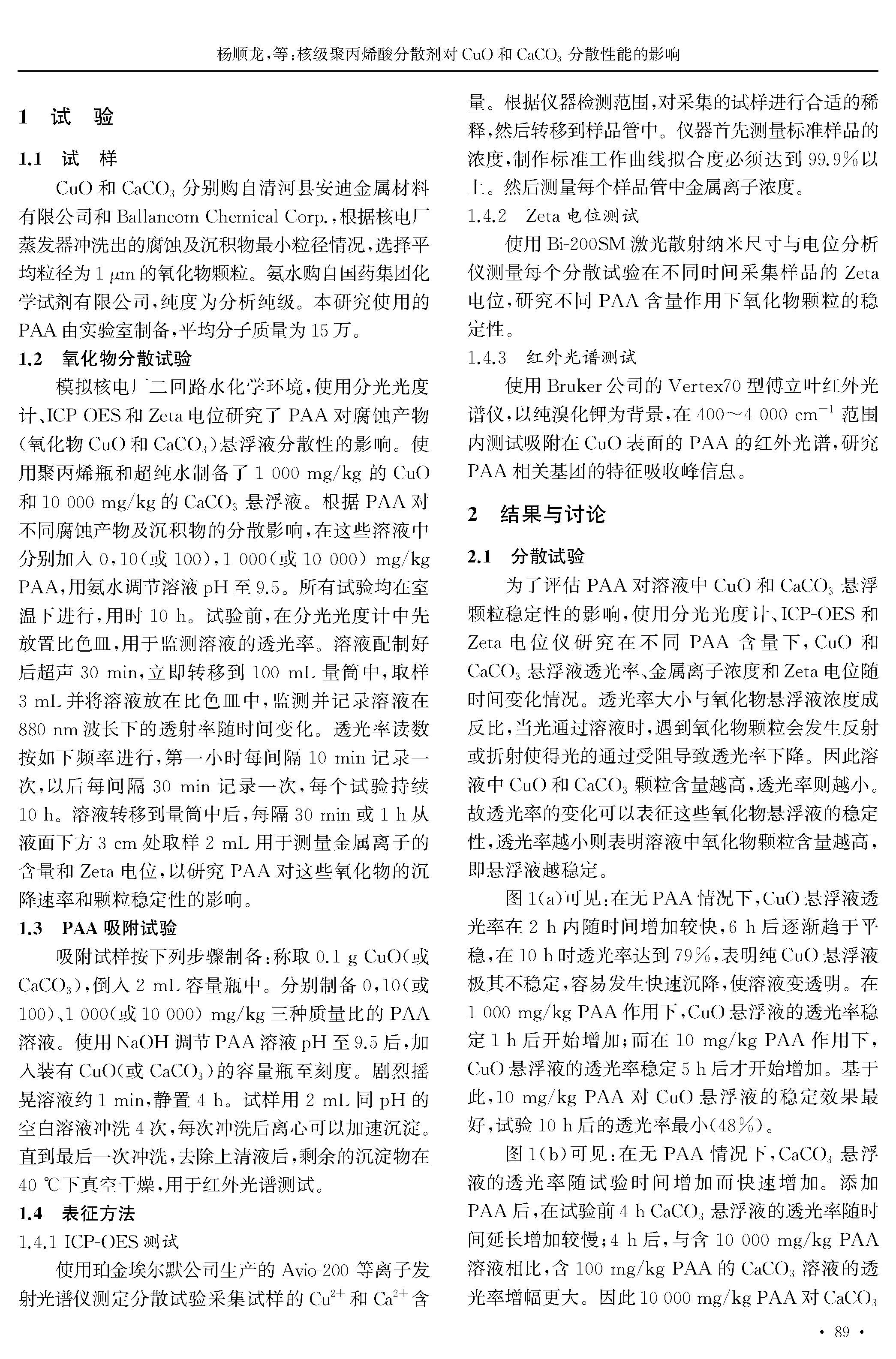 核级聚丙烯酸分散剂对CuO和CaCO3分散性能的影响