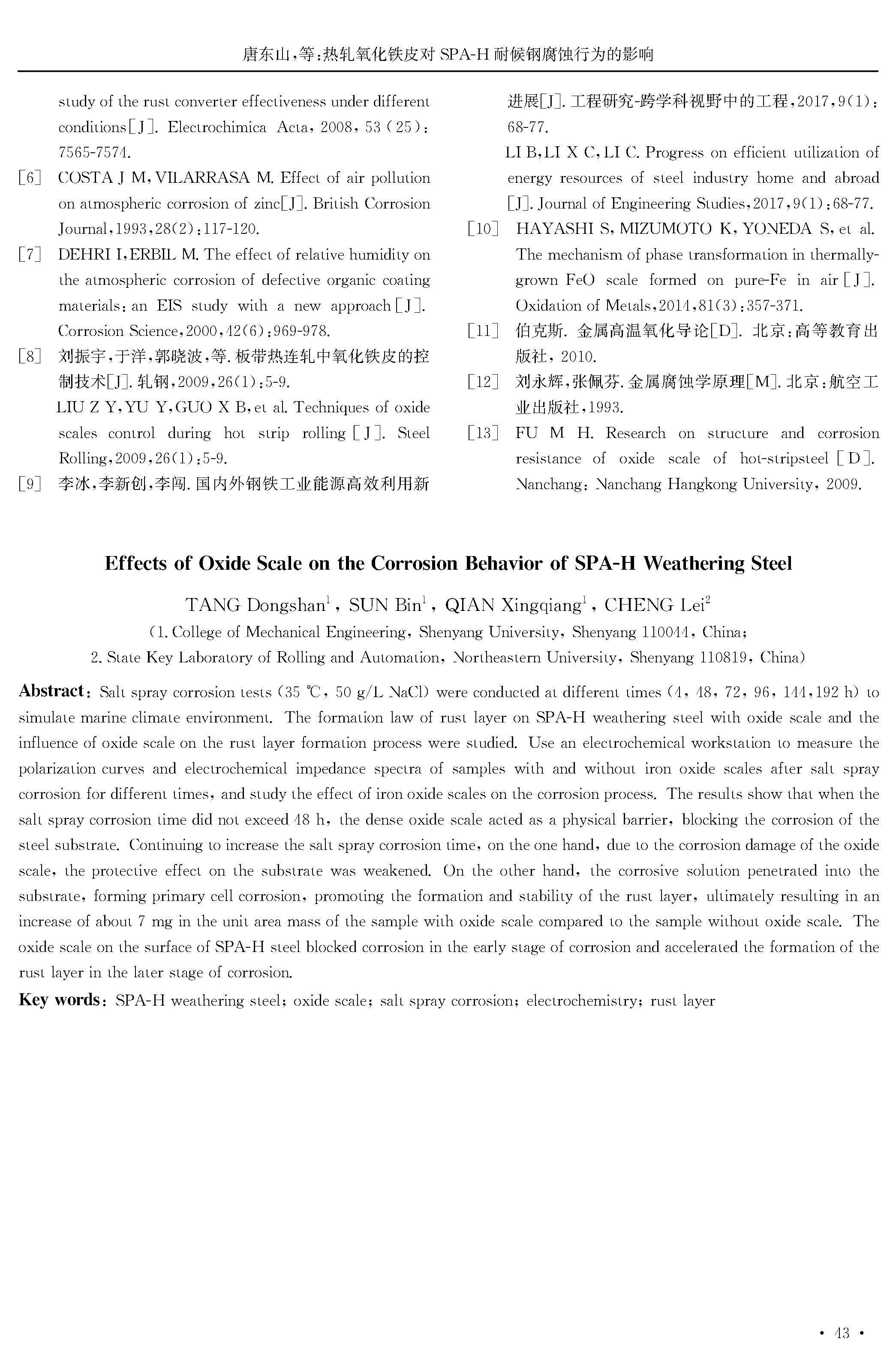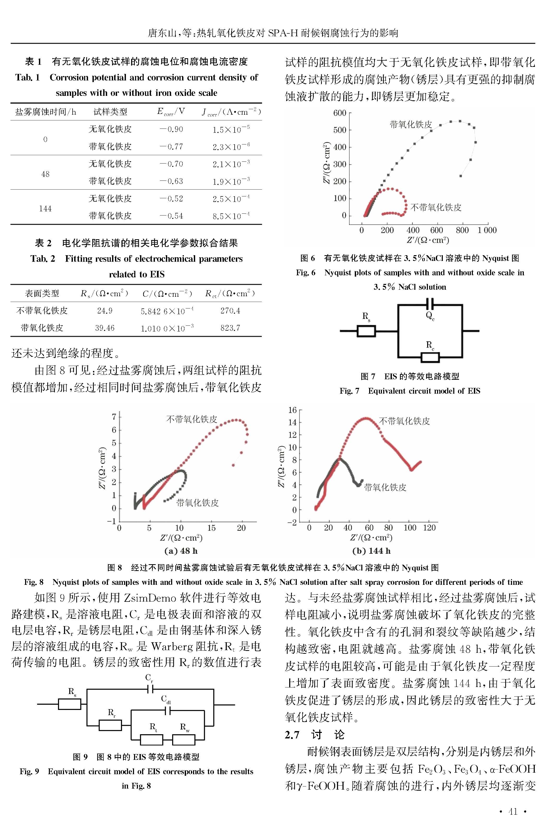 热轧氧化铁皮对SPA-H耐候钢腐蚀行为的影响