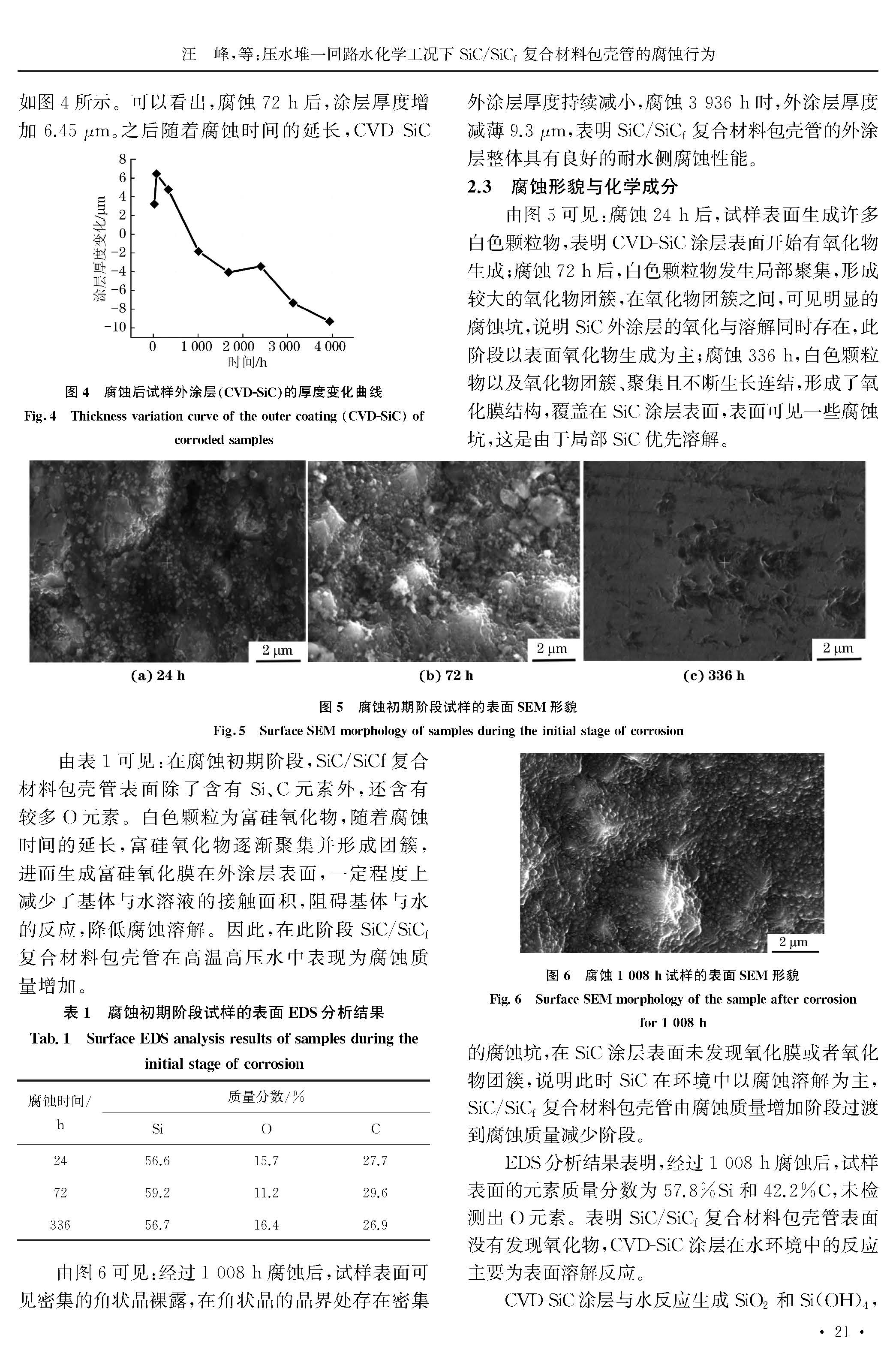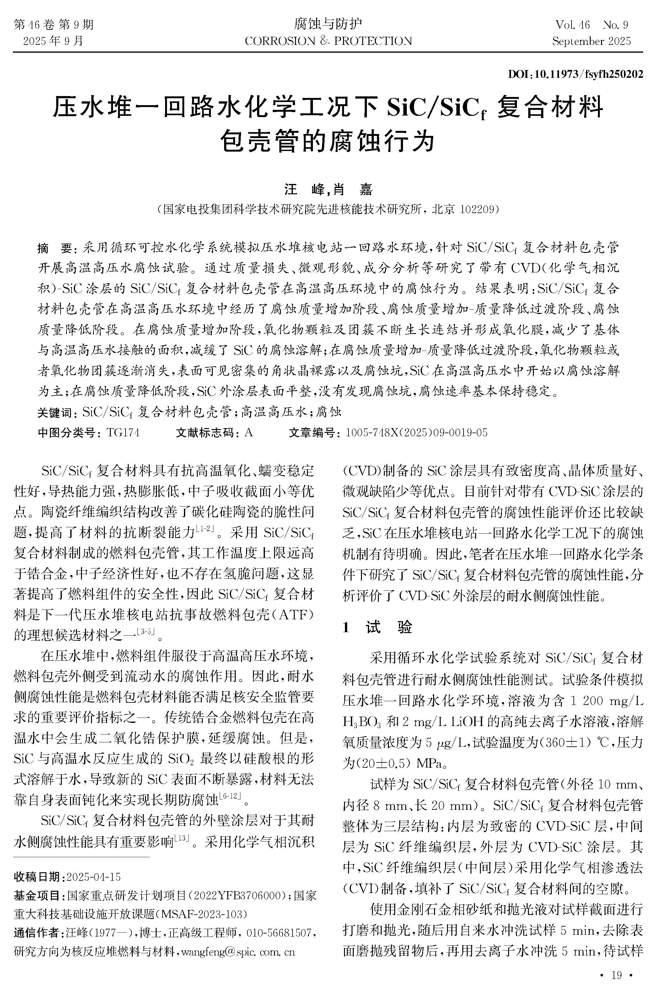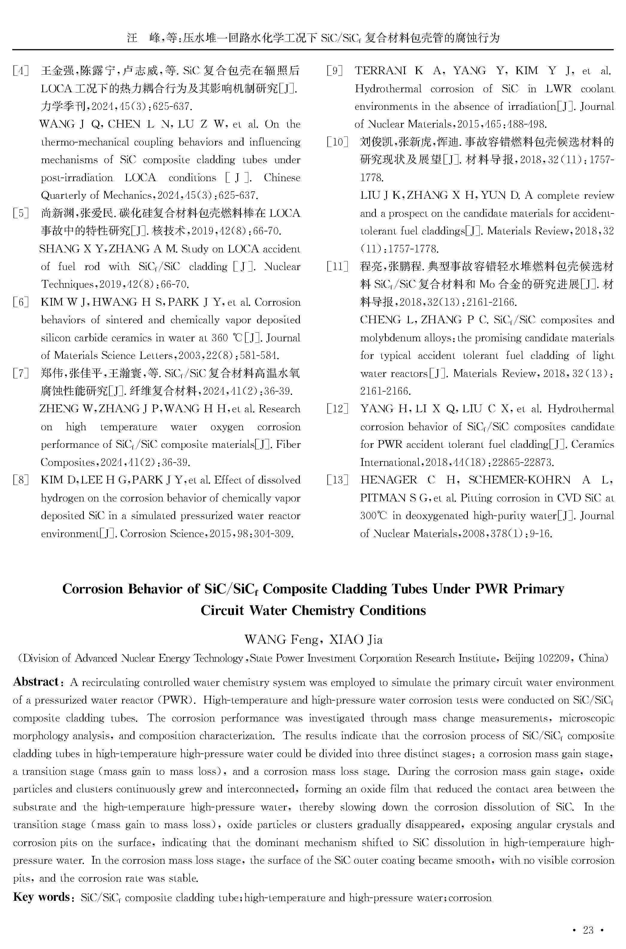 压水堆一回路水化学工况下SiC/SiCf复合材料包壳管的腐蚀行为