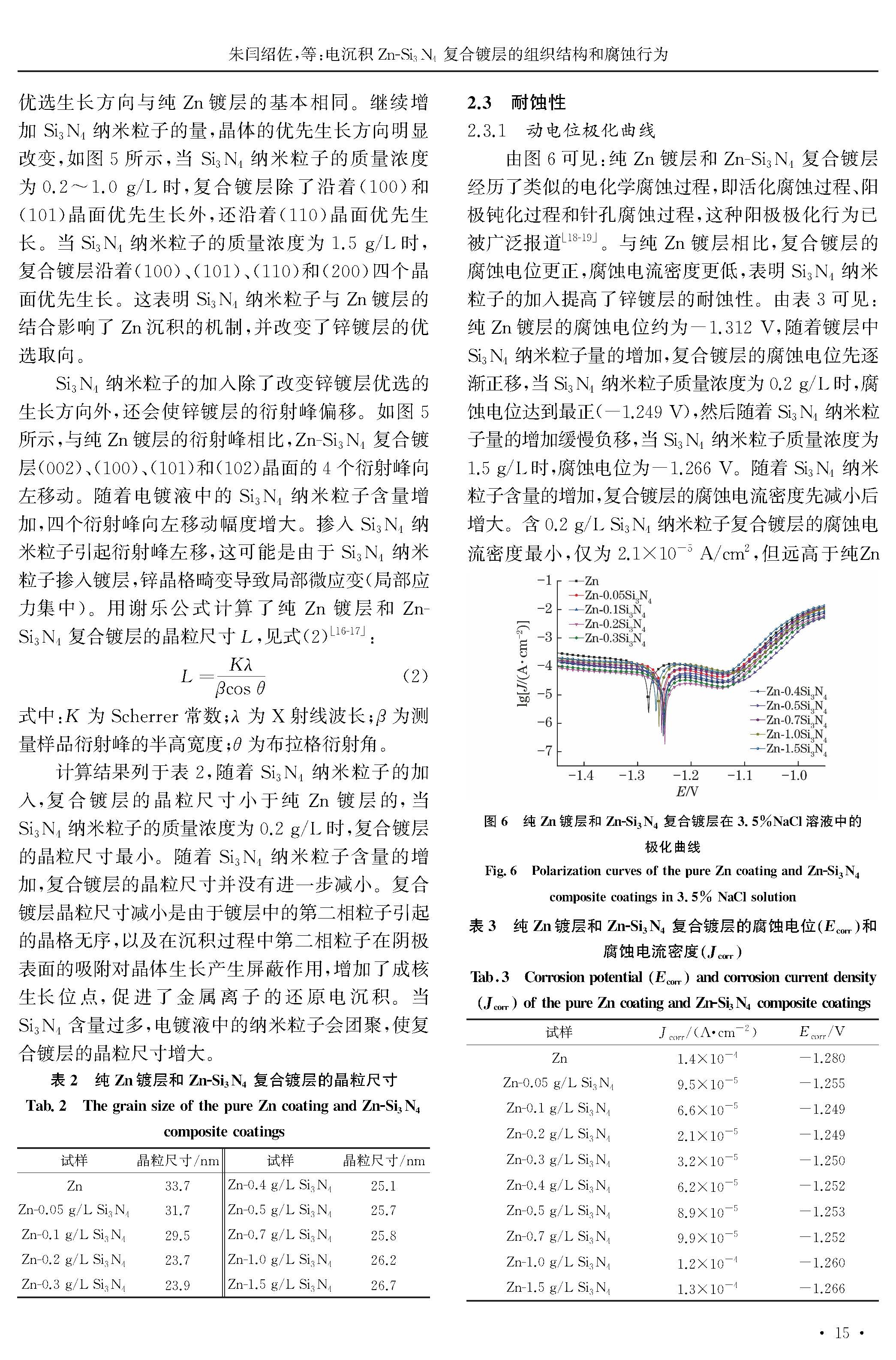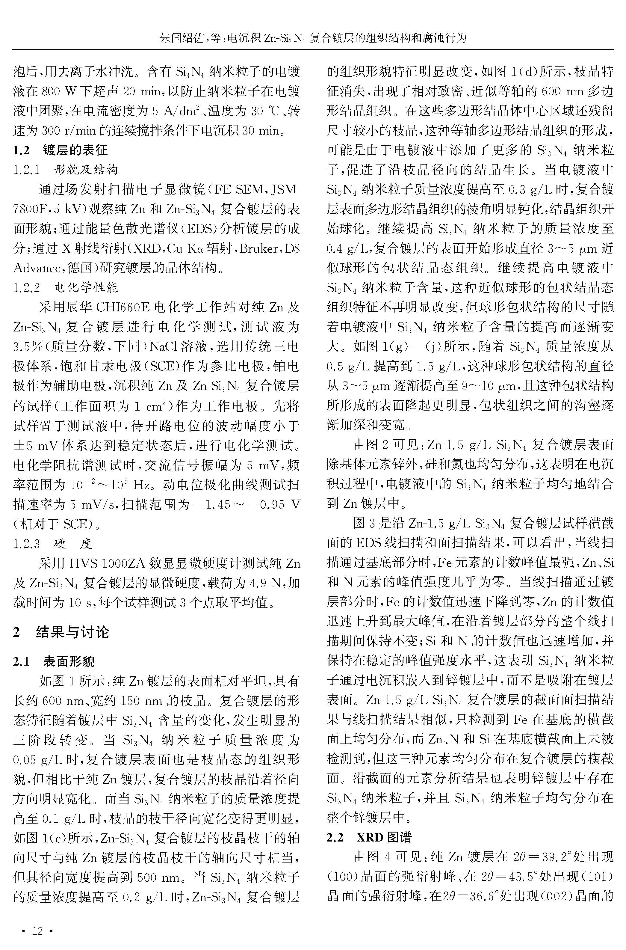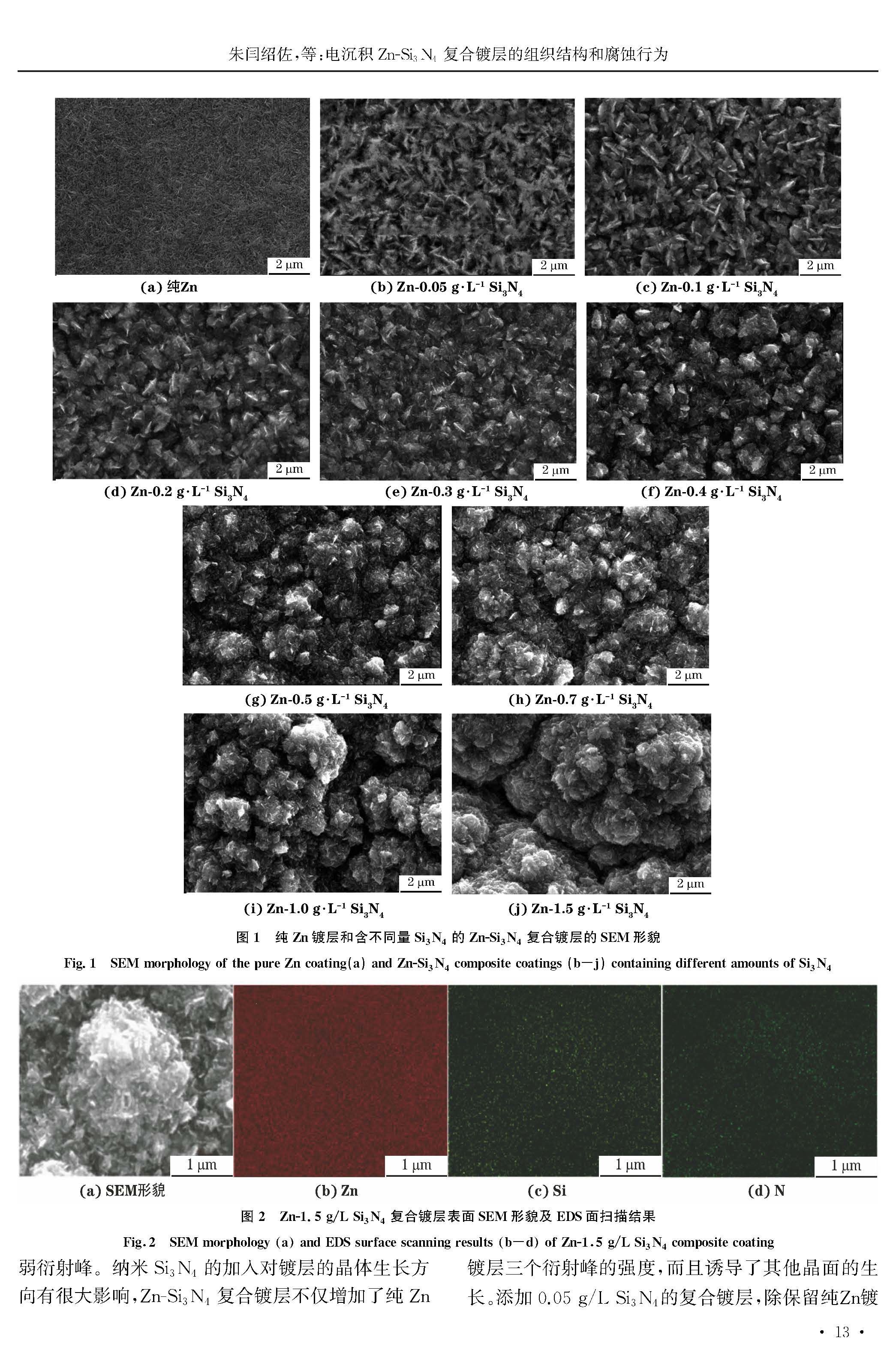 电沉积Zn-Si3N4复合镀层的组织结构和腐蚀行为