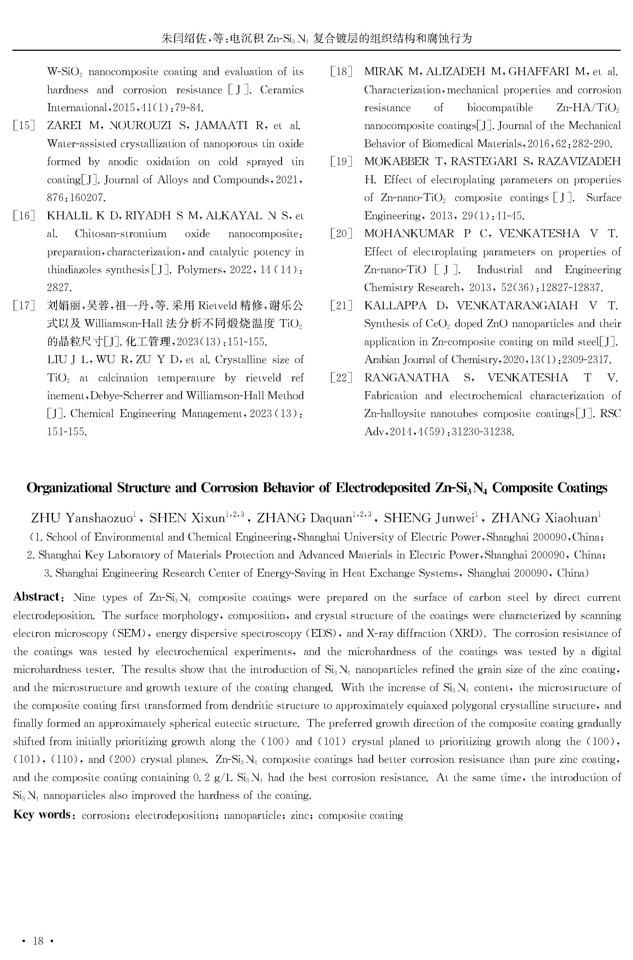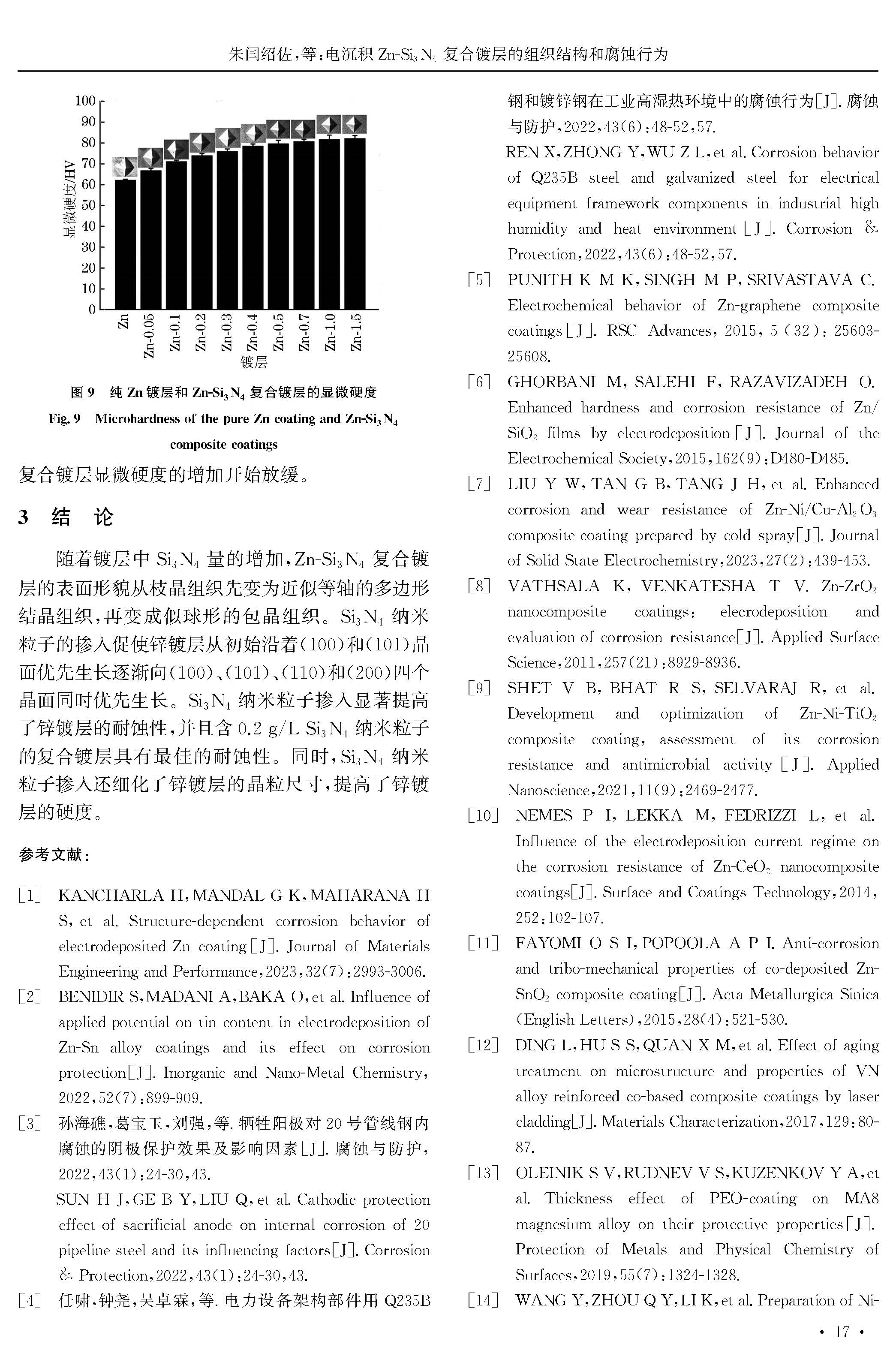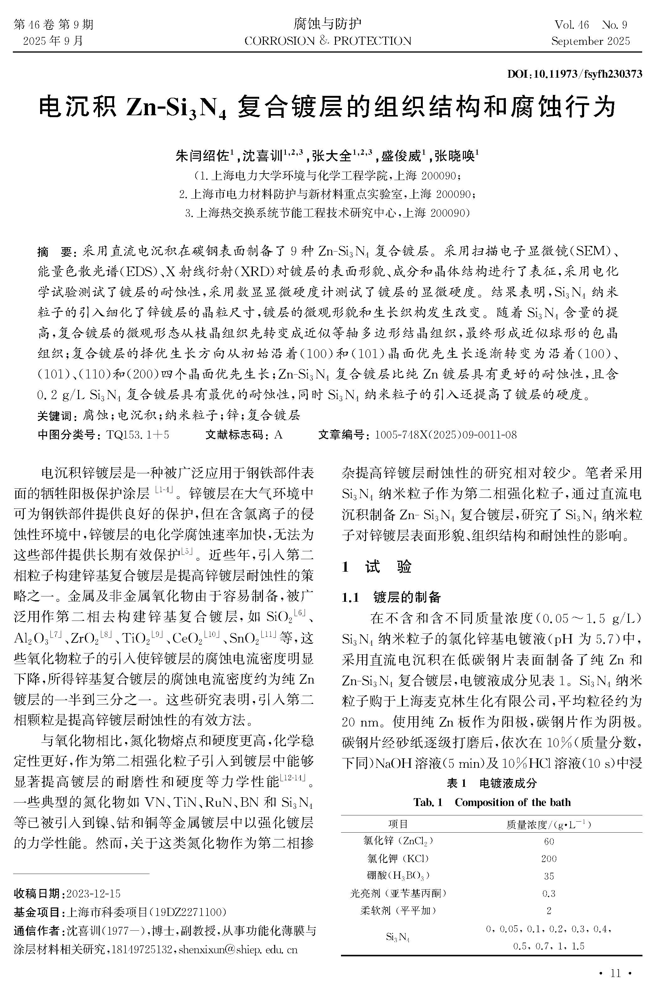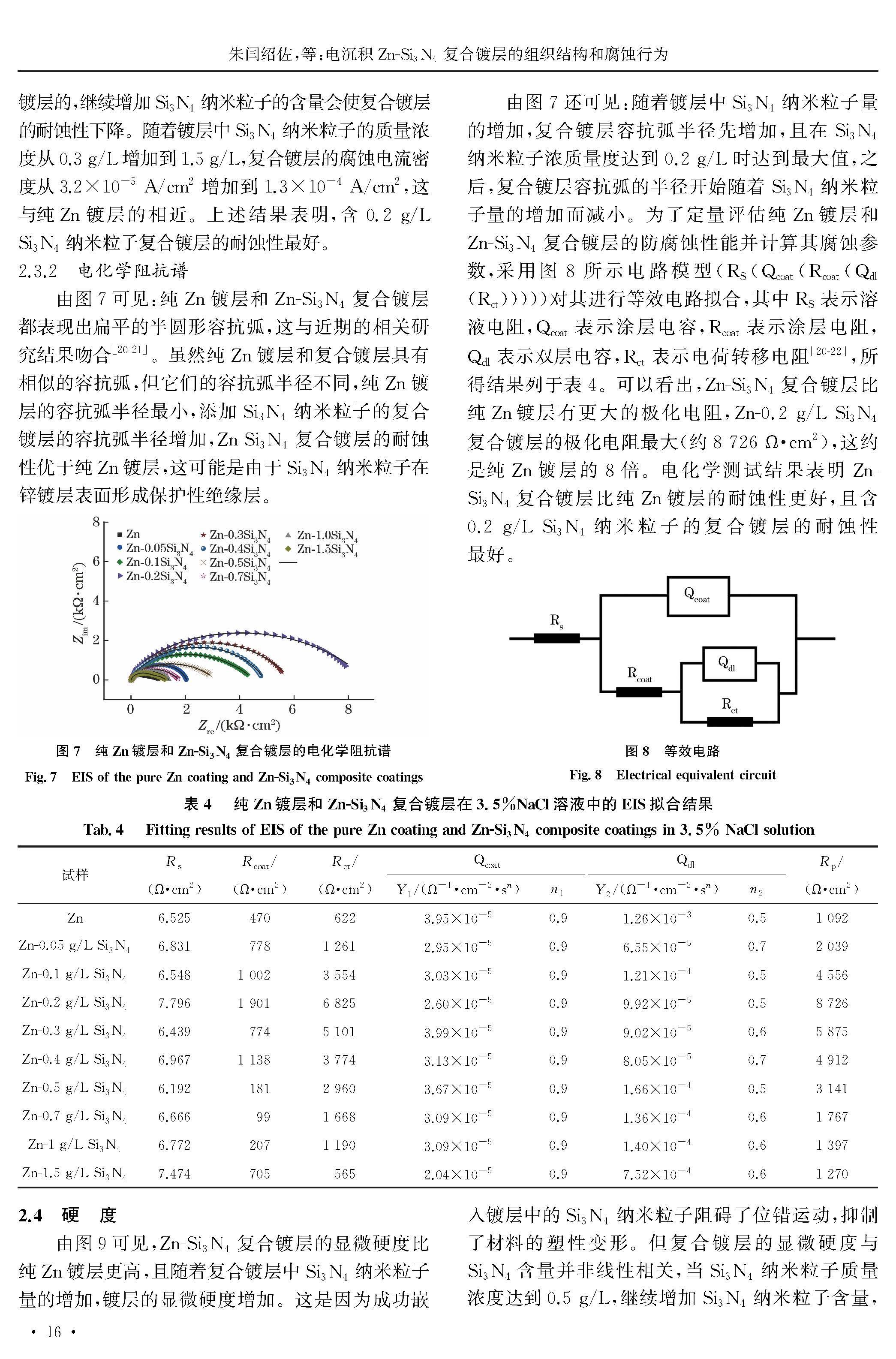 电沉积Zn-Si3N4复合镀层的组织结构和腐蚀行为