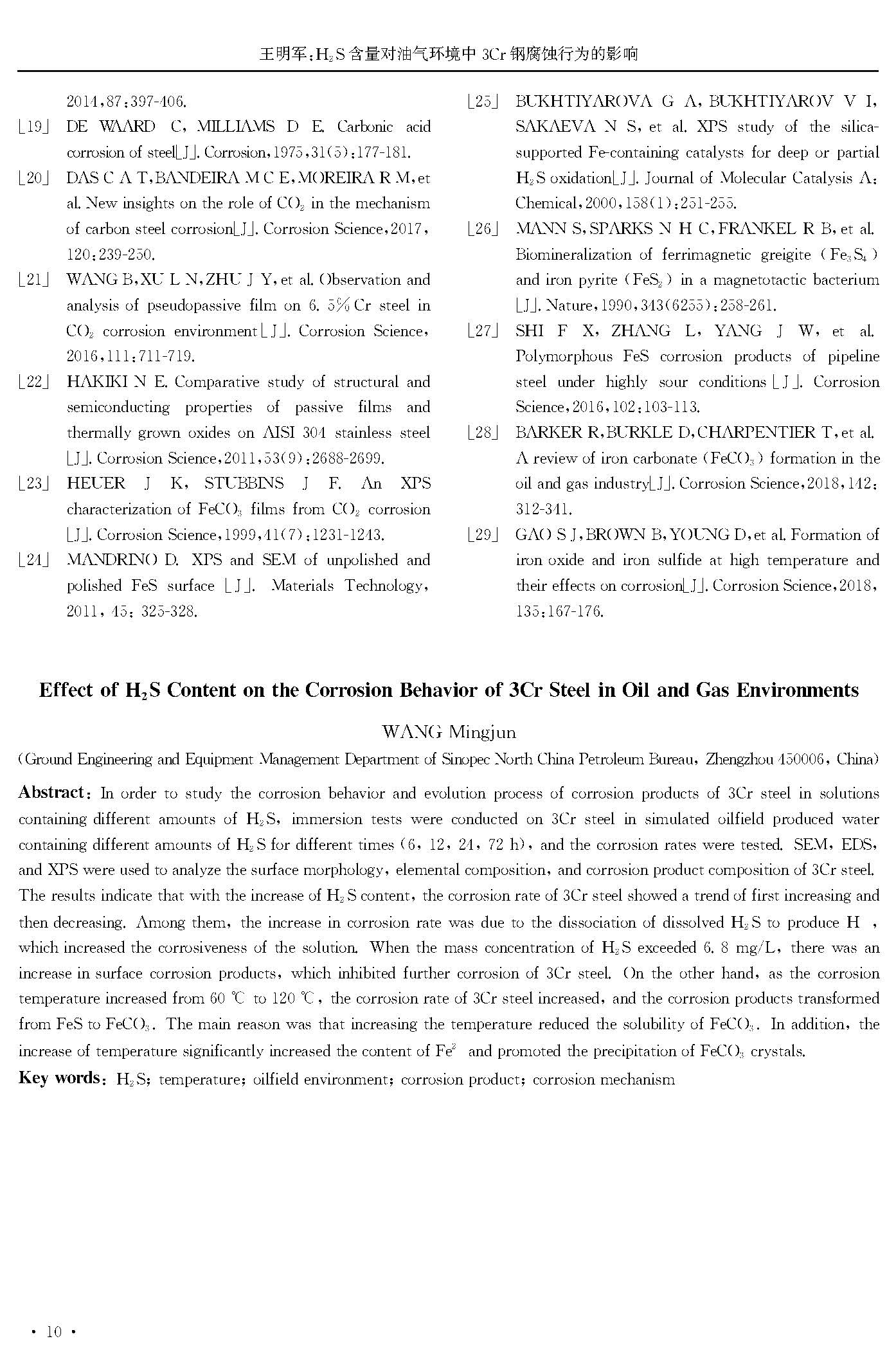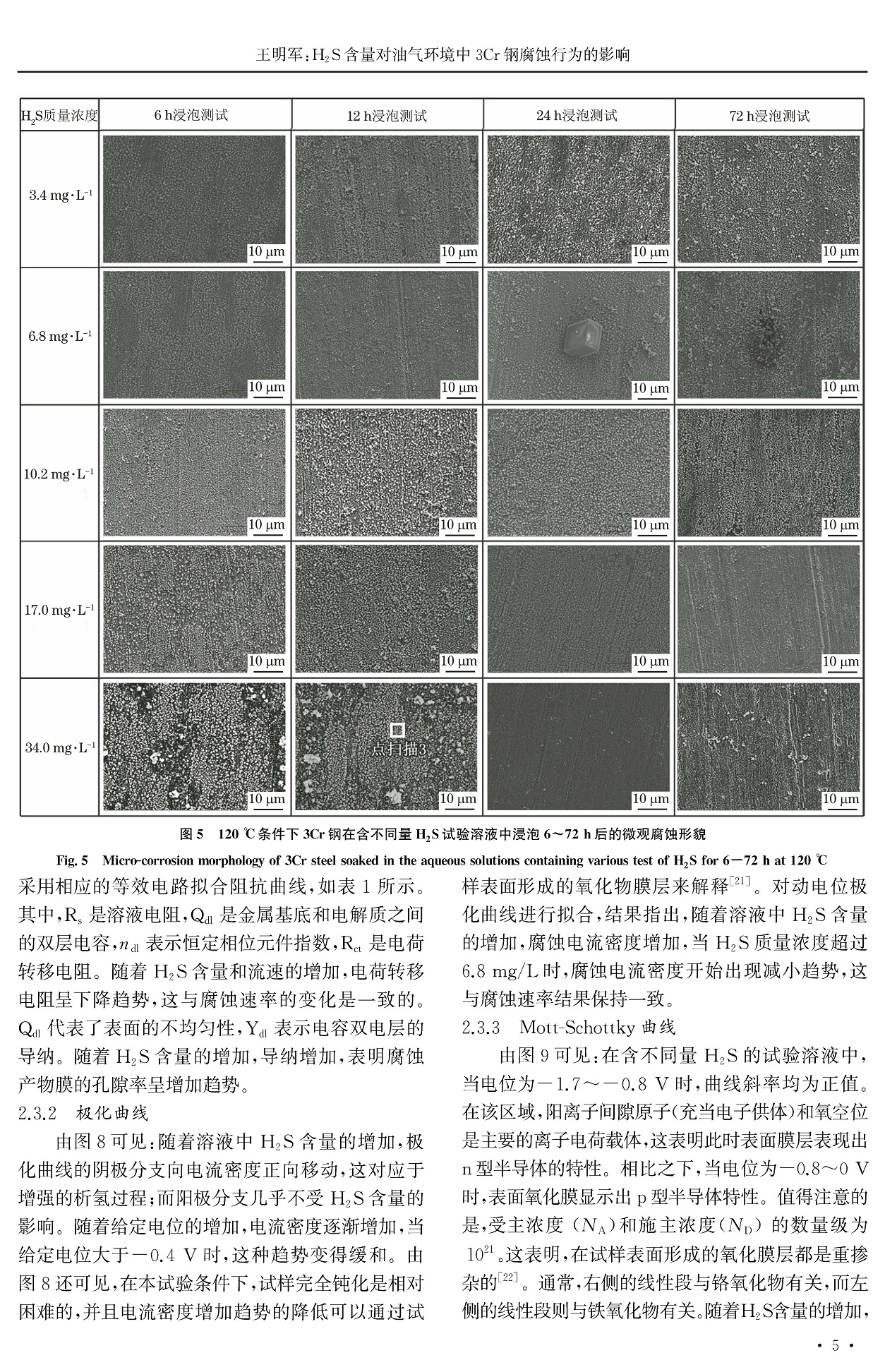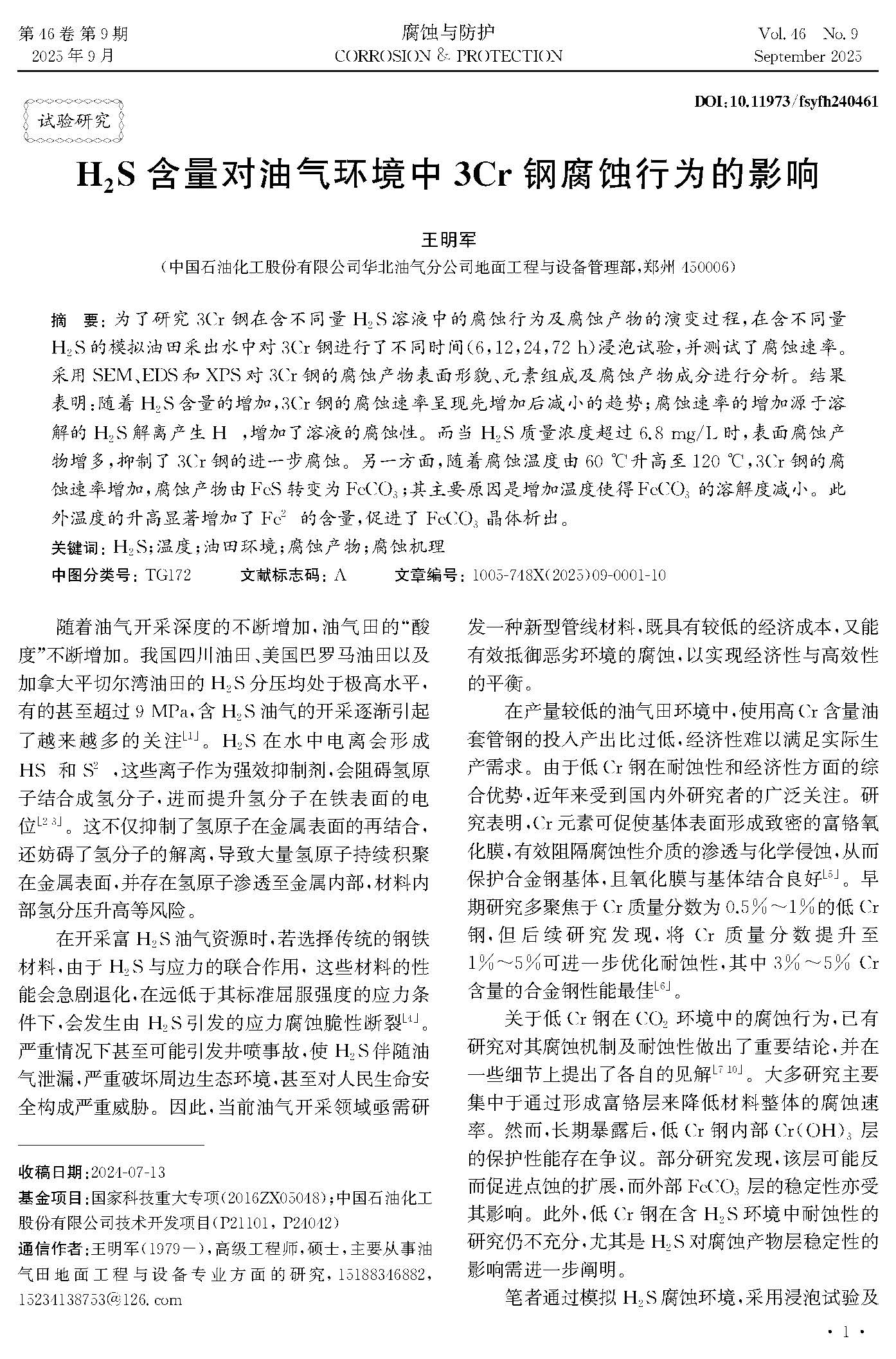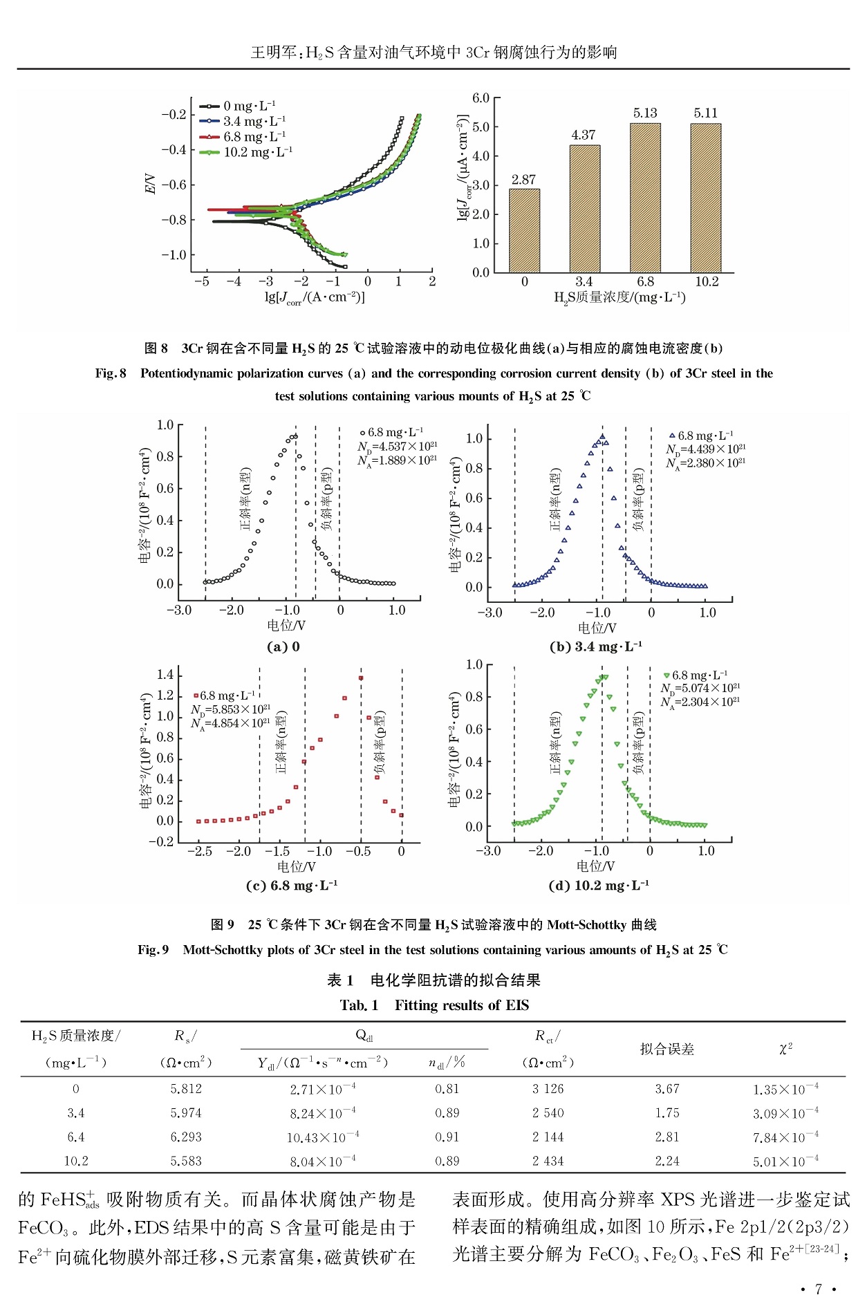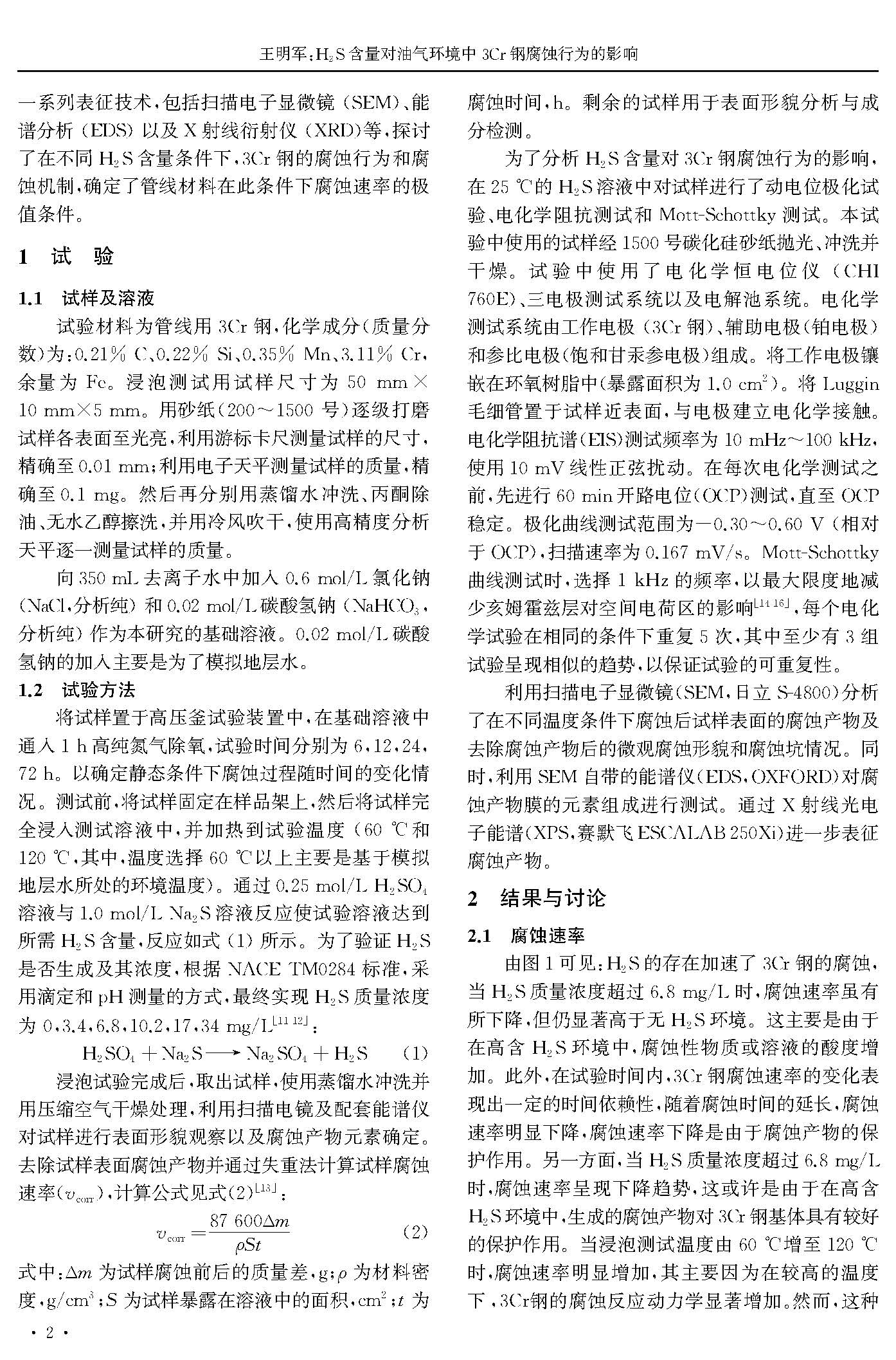 H2S含量对油气环境中3Cr钢腐蚀行为的影响