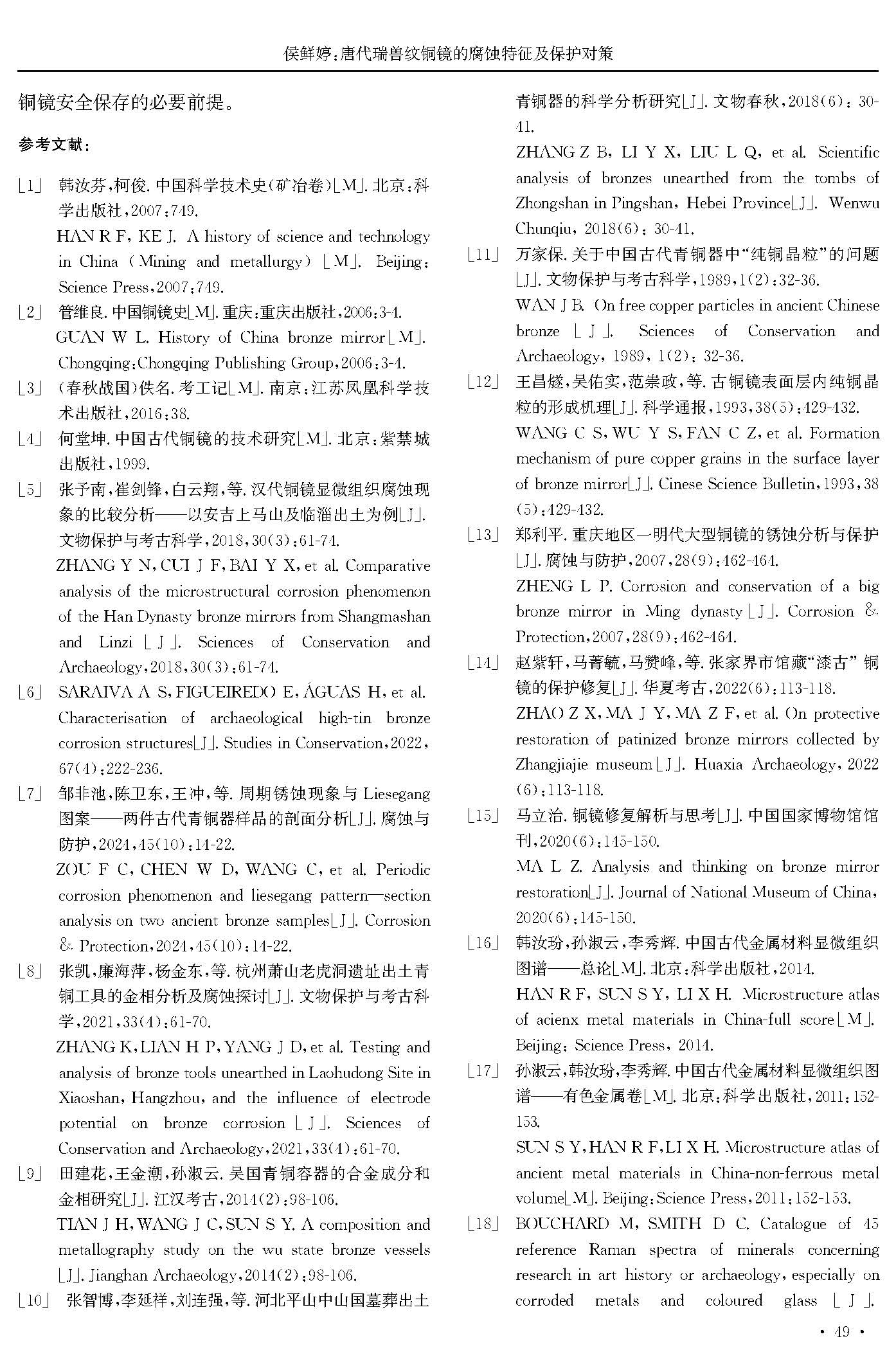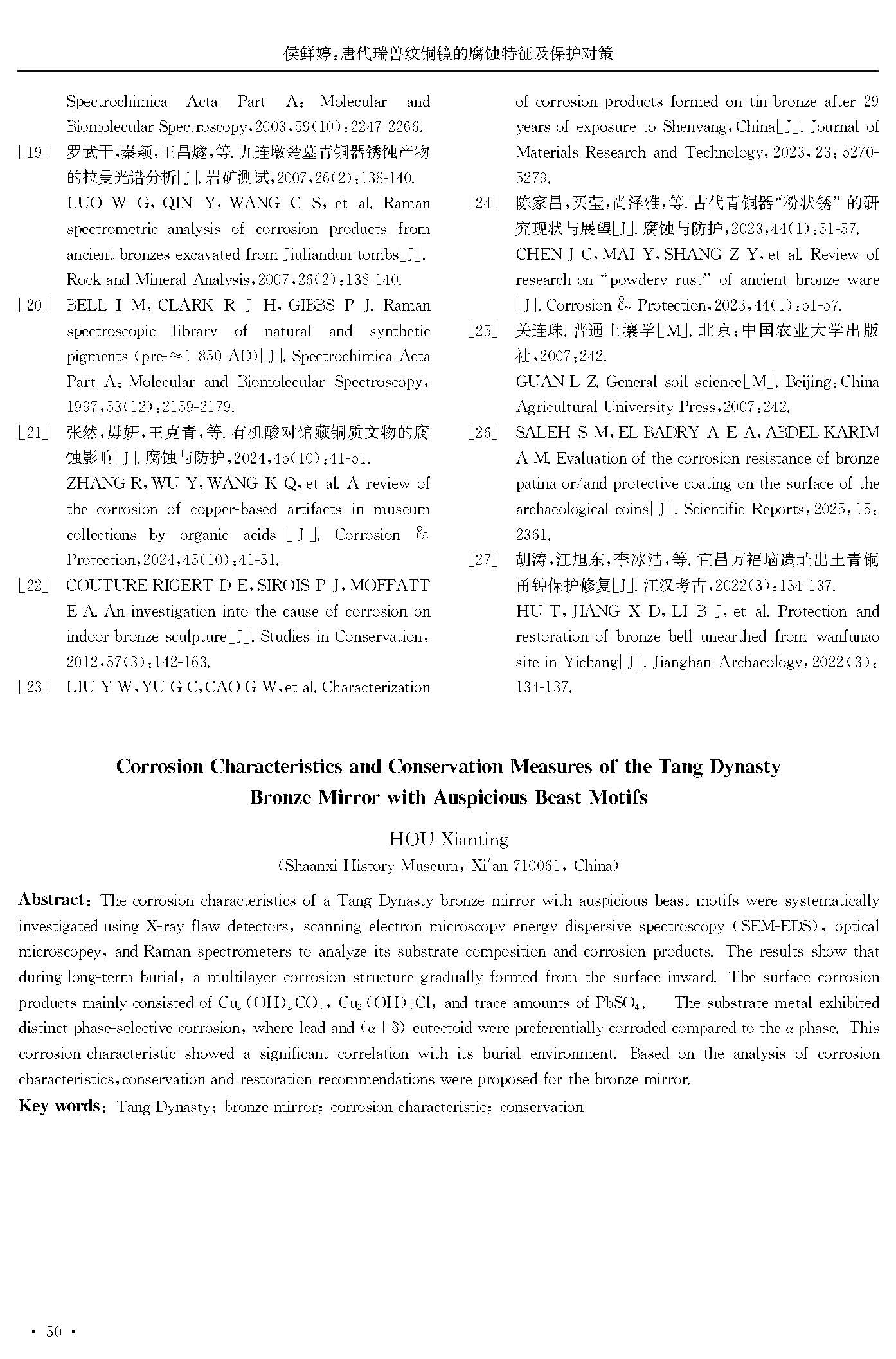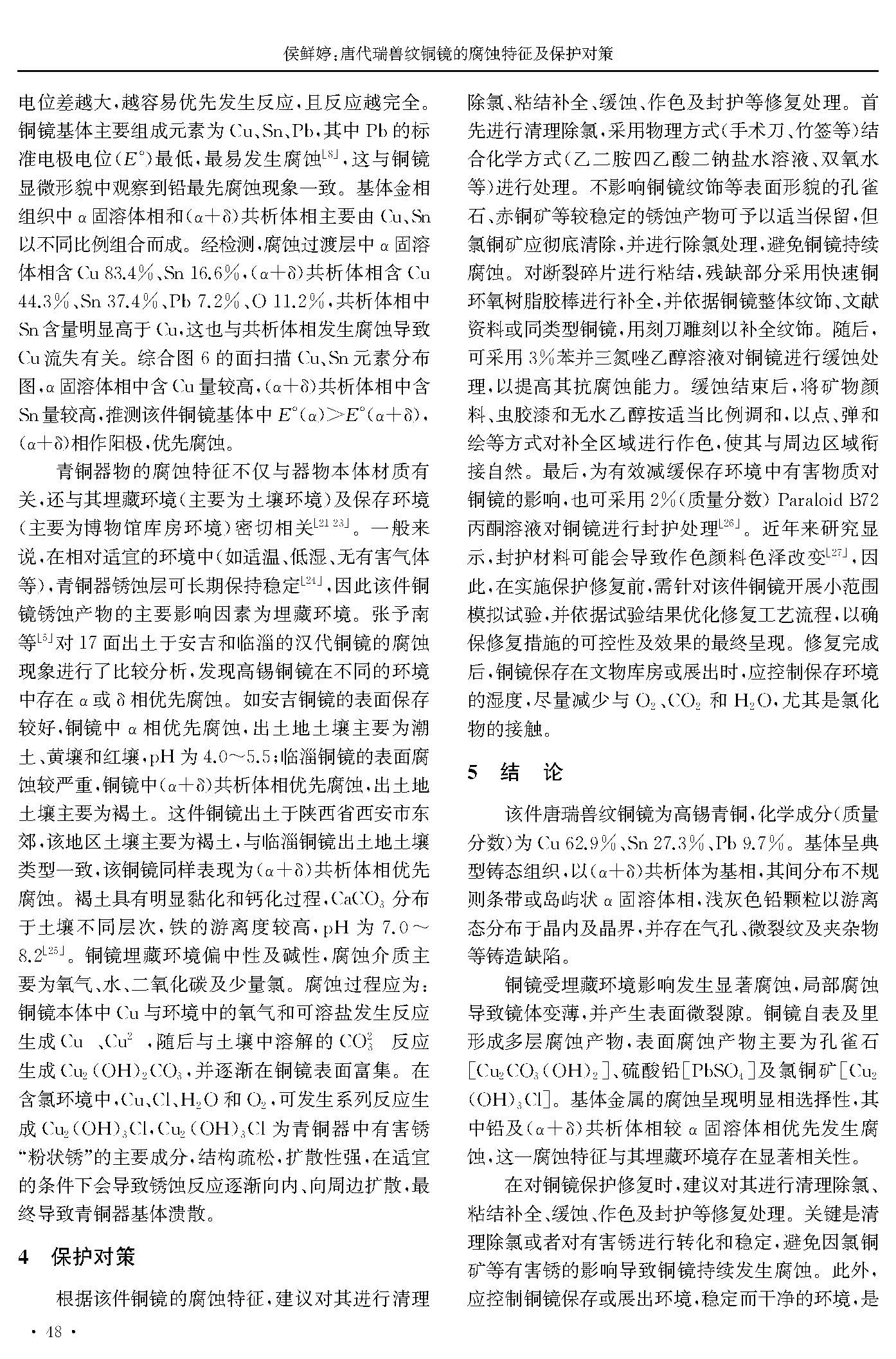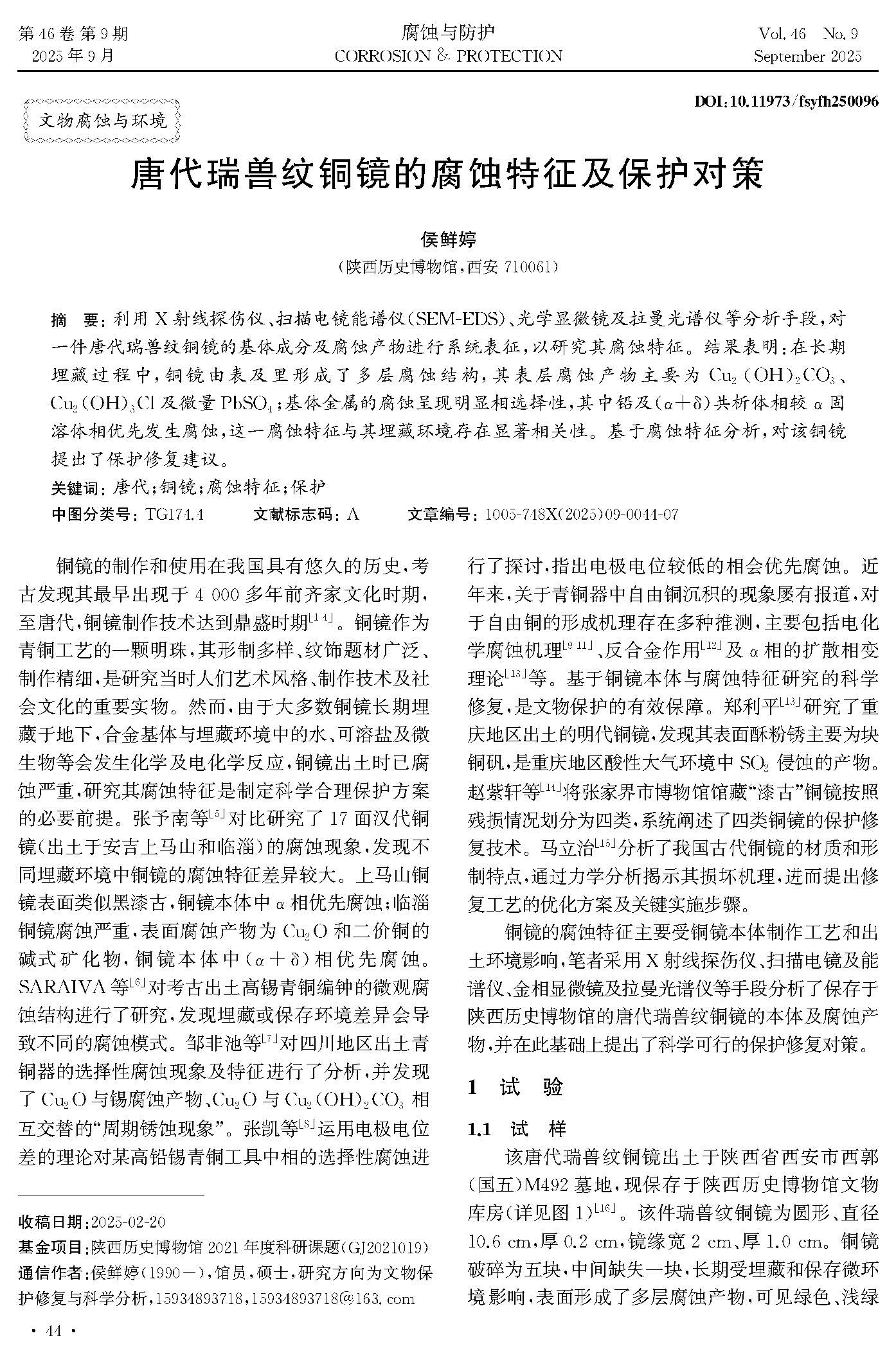 唐代瑞兽纹铜镜的腐蚀特征及保护对策
