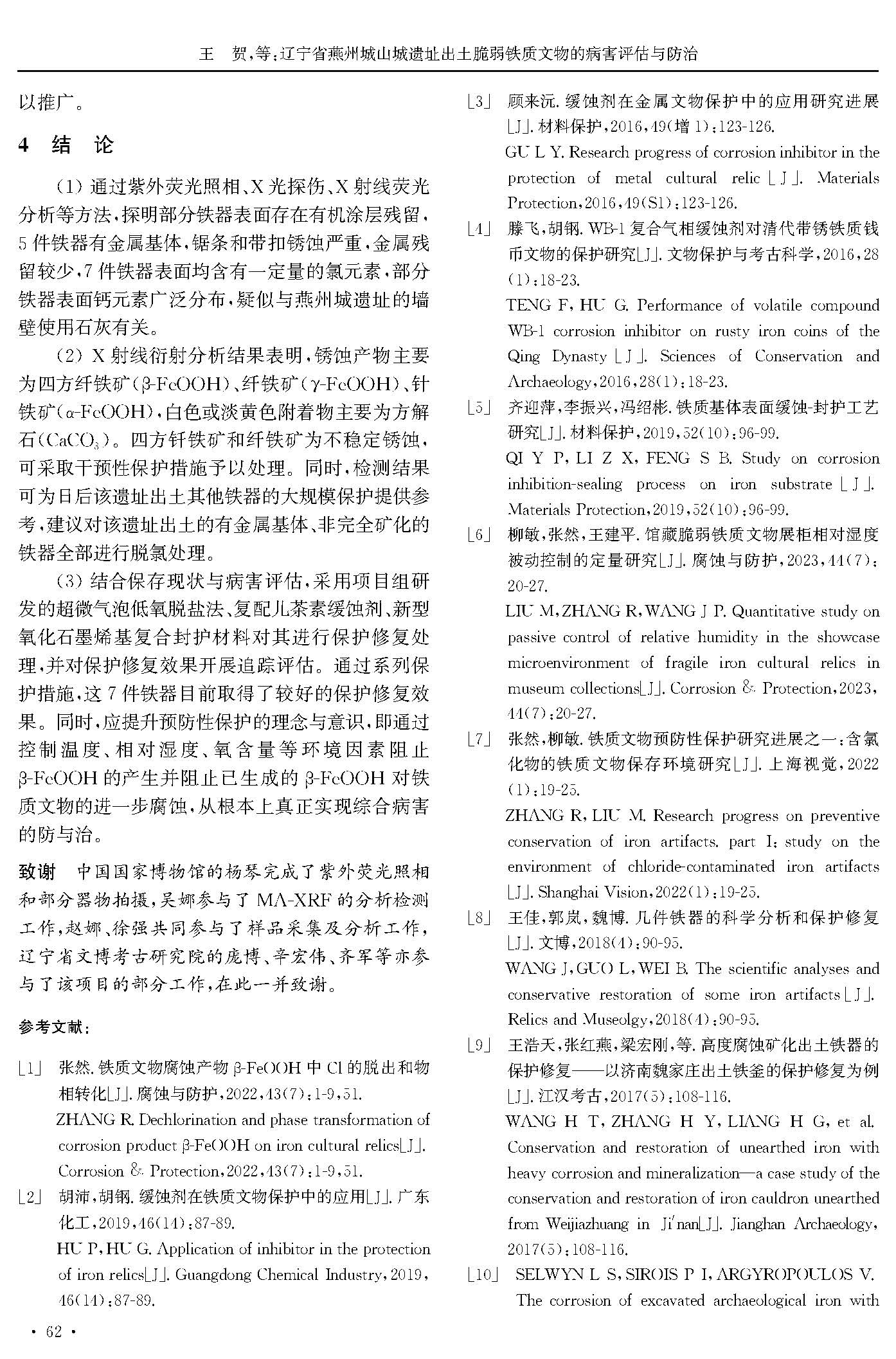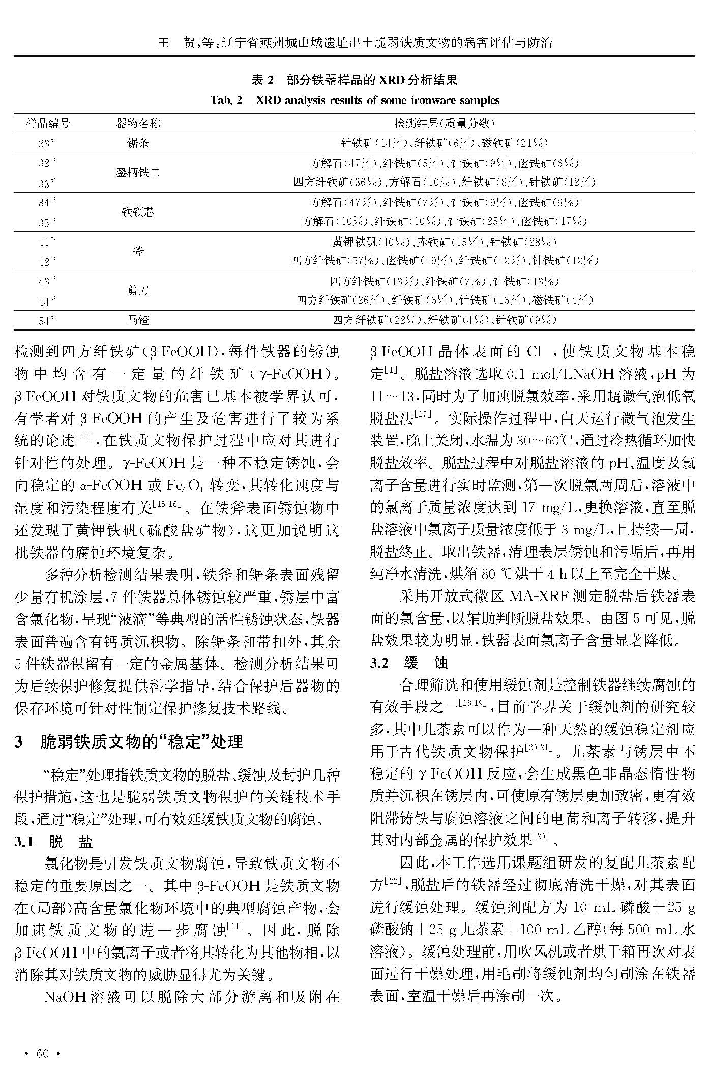 辽宁省燕州城山城遗址出土脆弱铁质文物的病害评估与防治