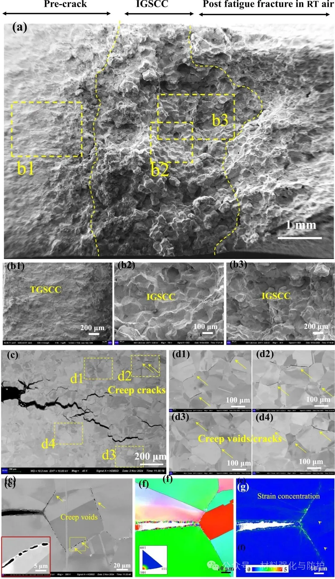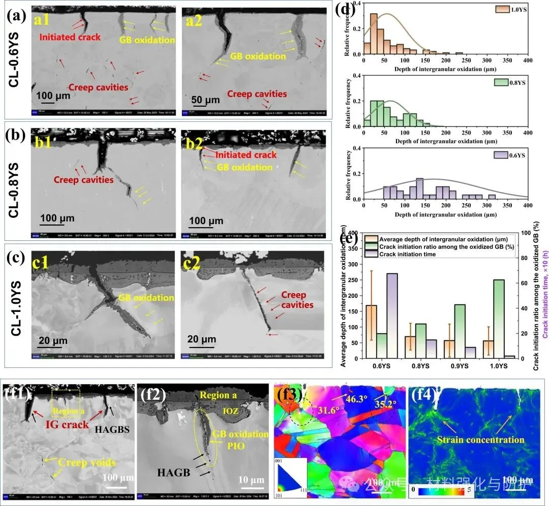 同时结合SEM、EBSD、TEM与EDS分析,系统揭示晶界氧化、碳化、蠕变空洞与裂纹演化之间的关系。