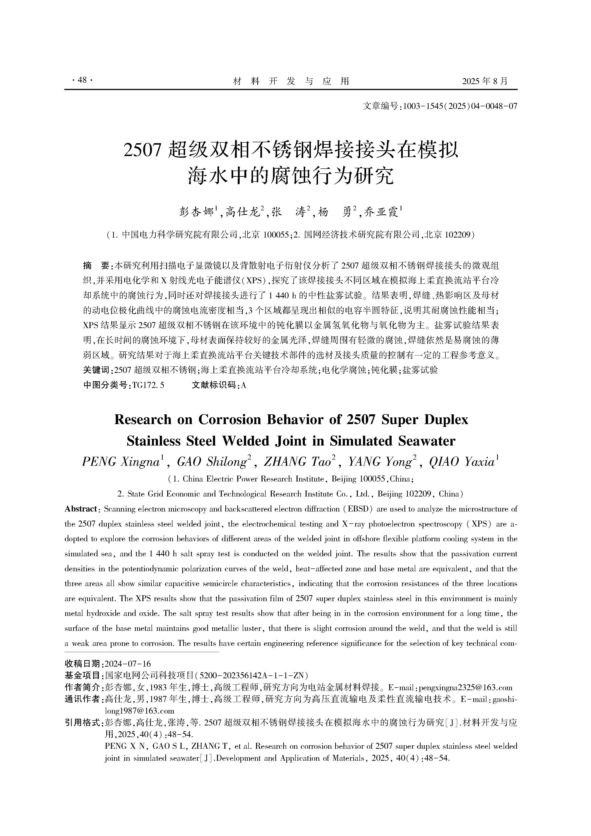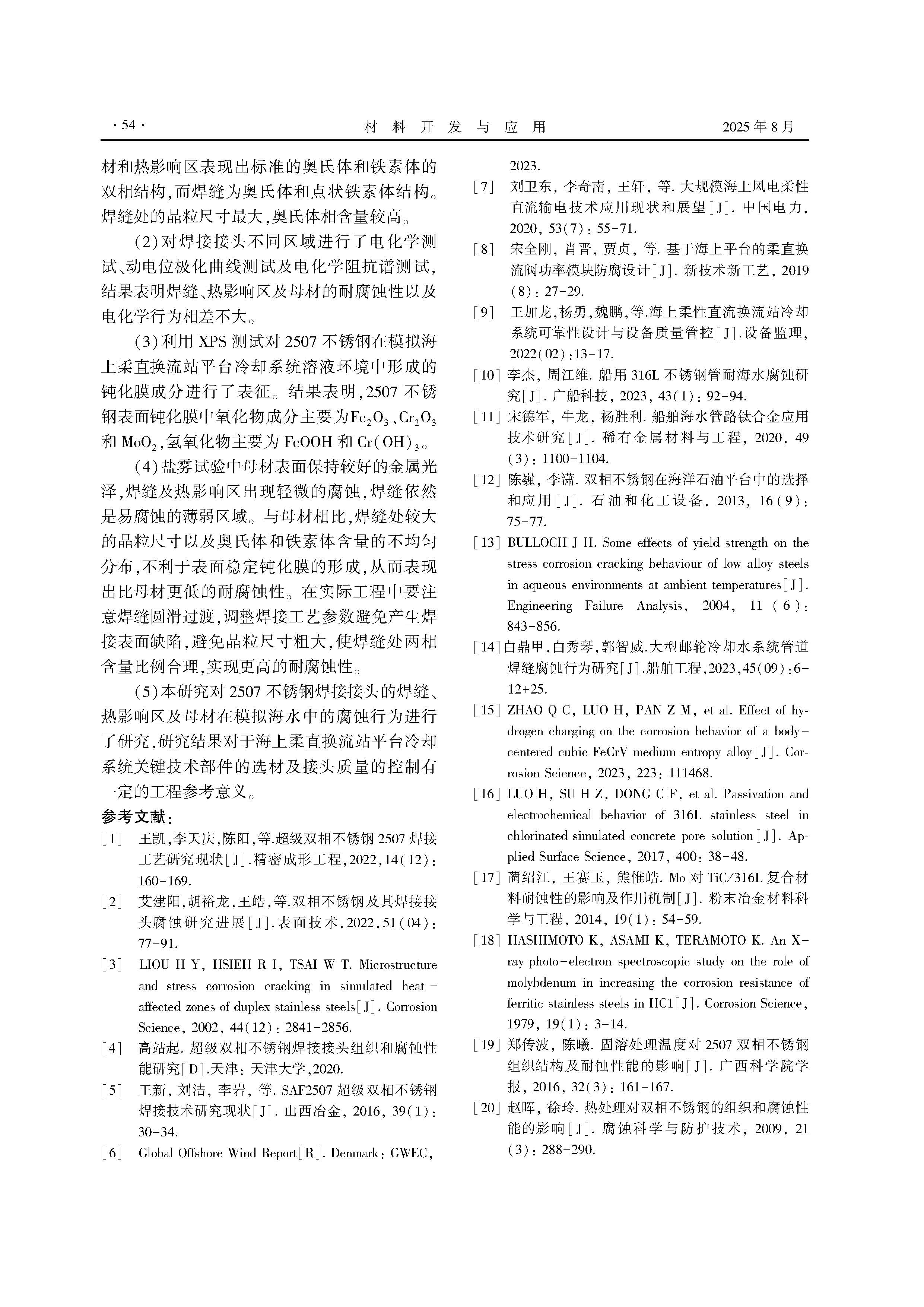 2507超级双相不锈钢焊接接头在模拟海水中的腐蚀行为研究