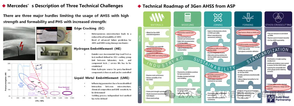 除了边缘开裂,还面临着延迟开裂和点焊LME的难题。三大难题虽难,但其蕴藏的机会要远大于挑战,是近十年汽车用先进高强钢的研究热点。