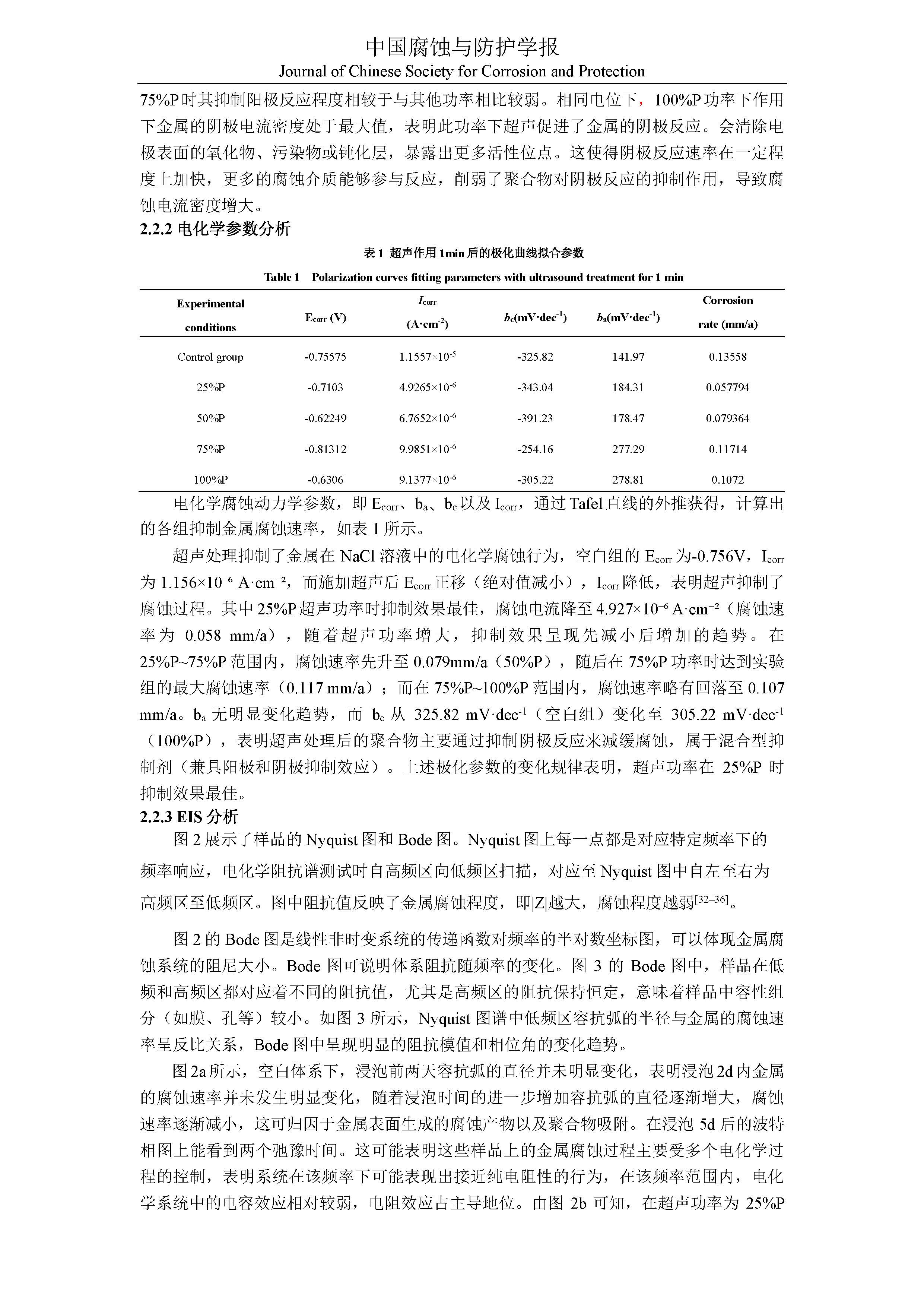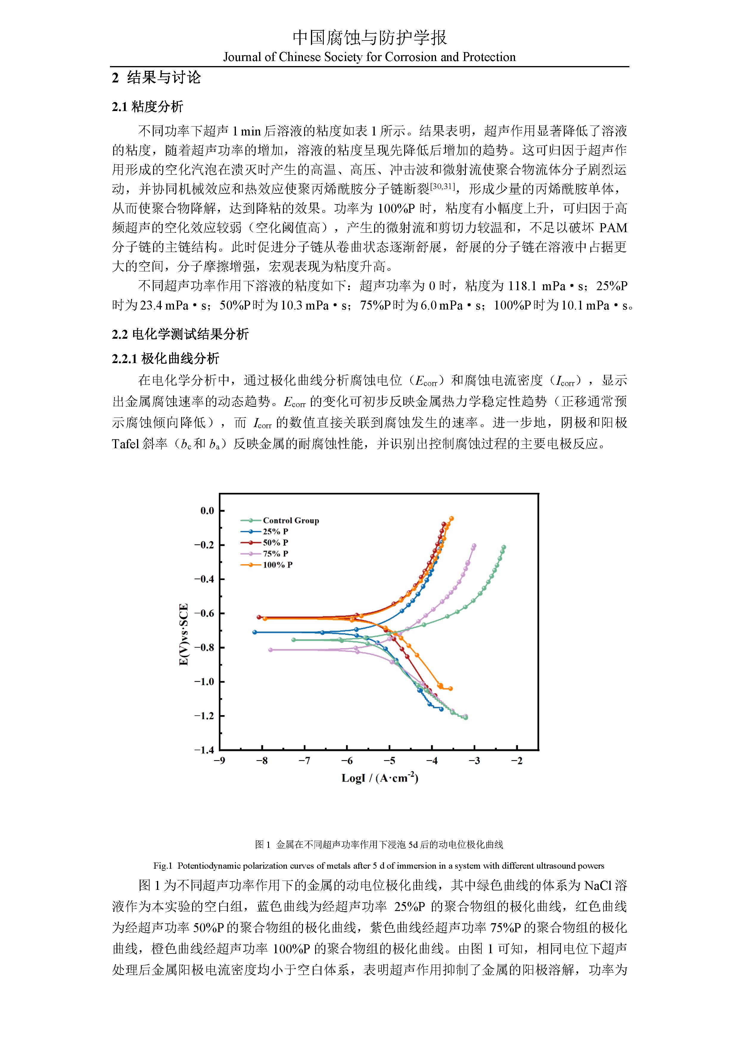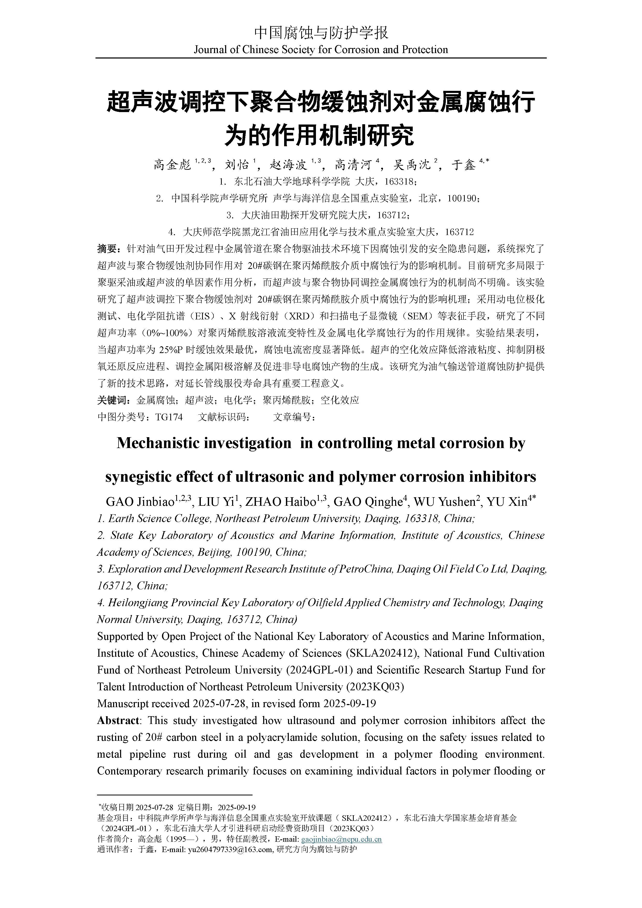 超声波调控下聚合物缓蚀剂对金属腐蚀行为的作用机制研究.
