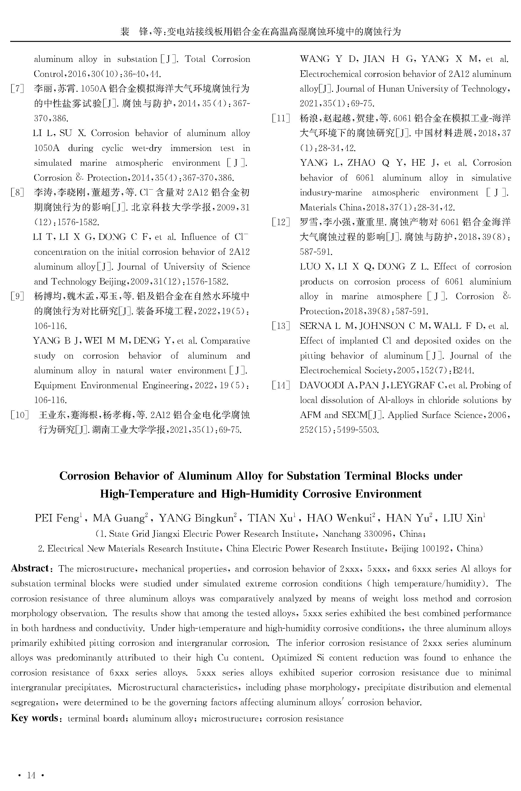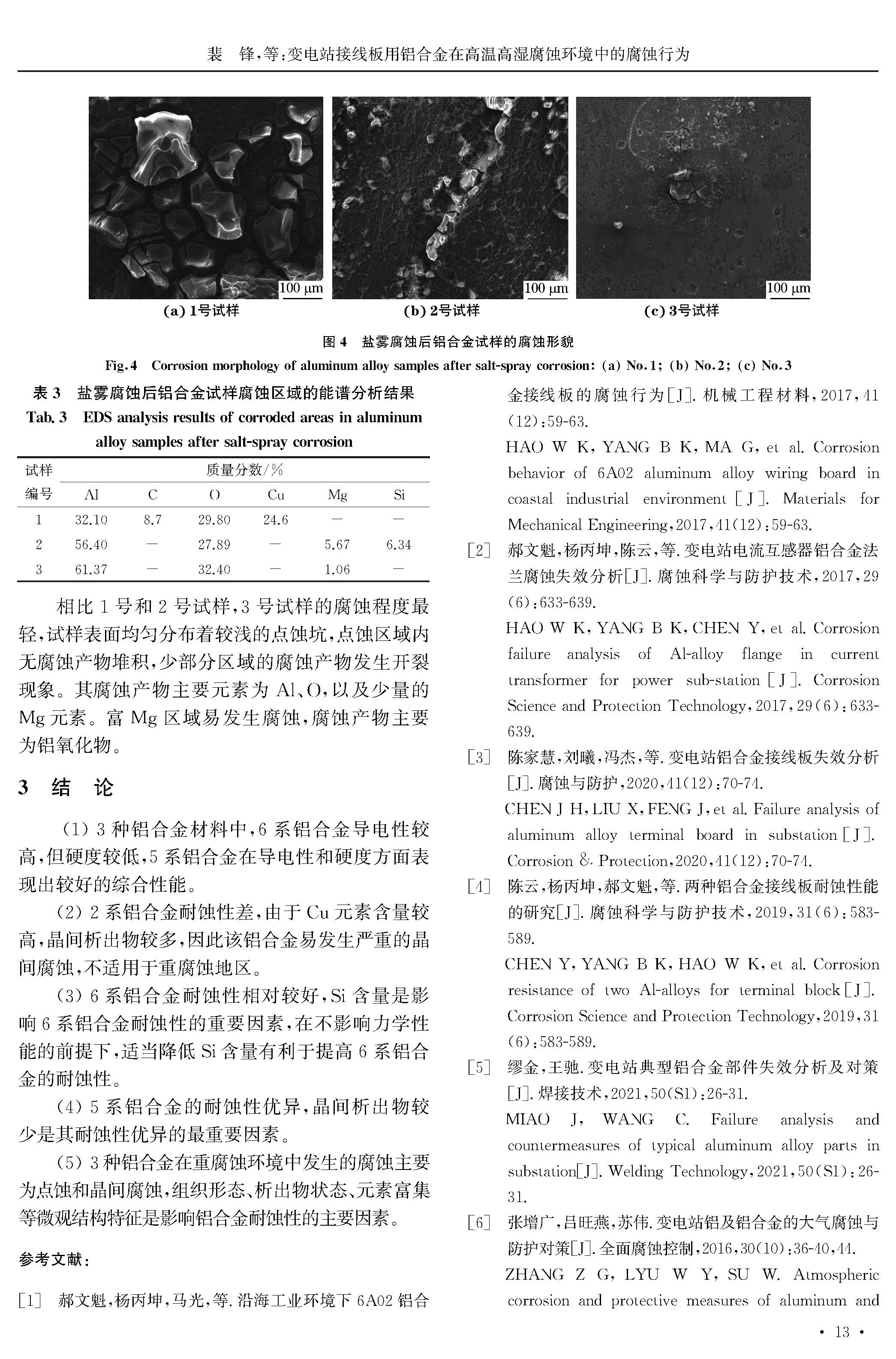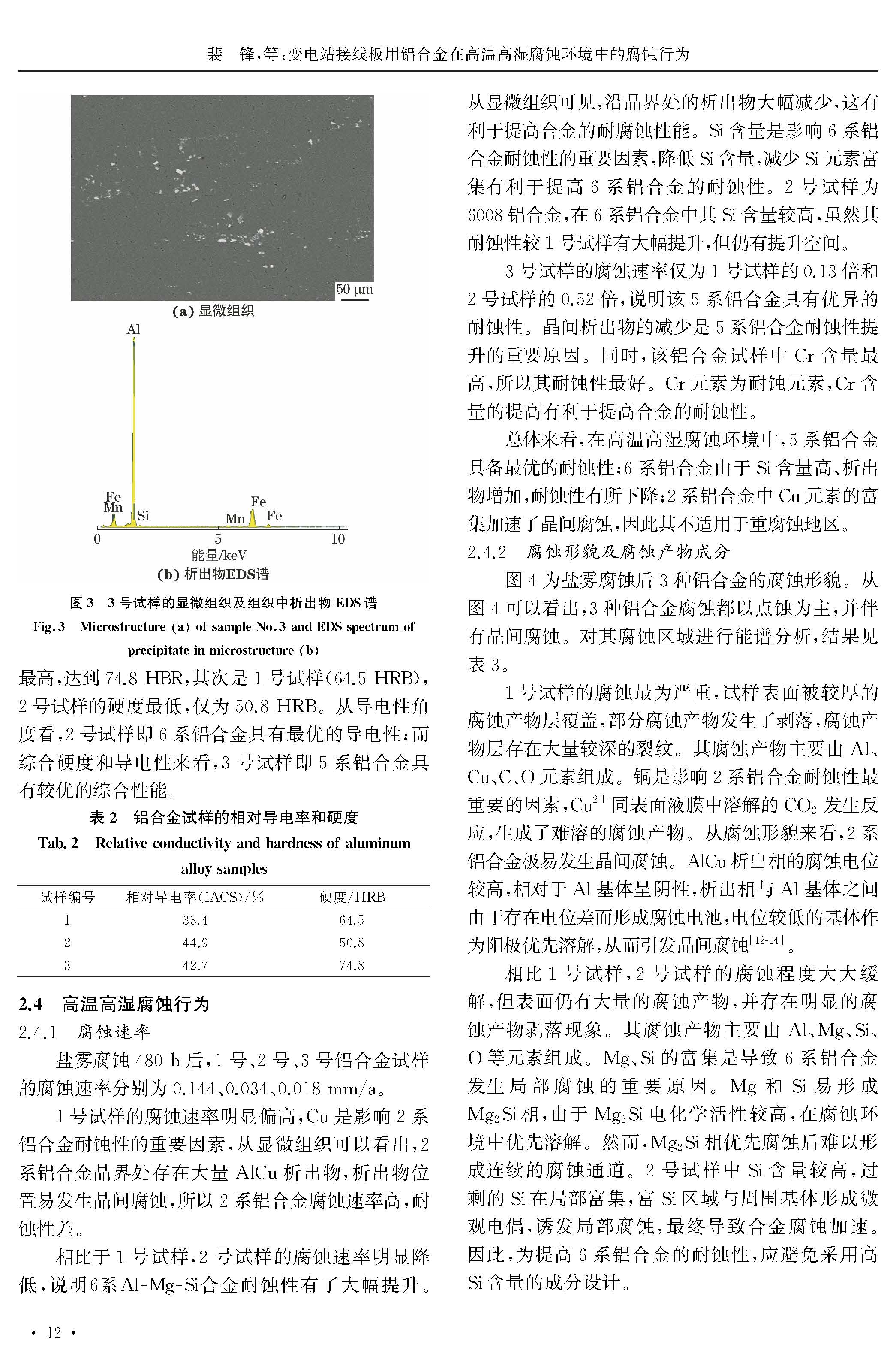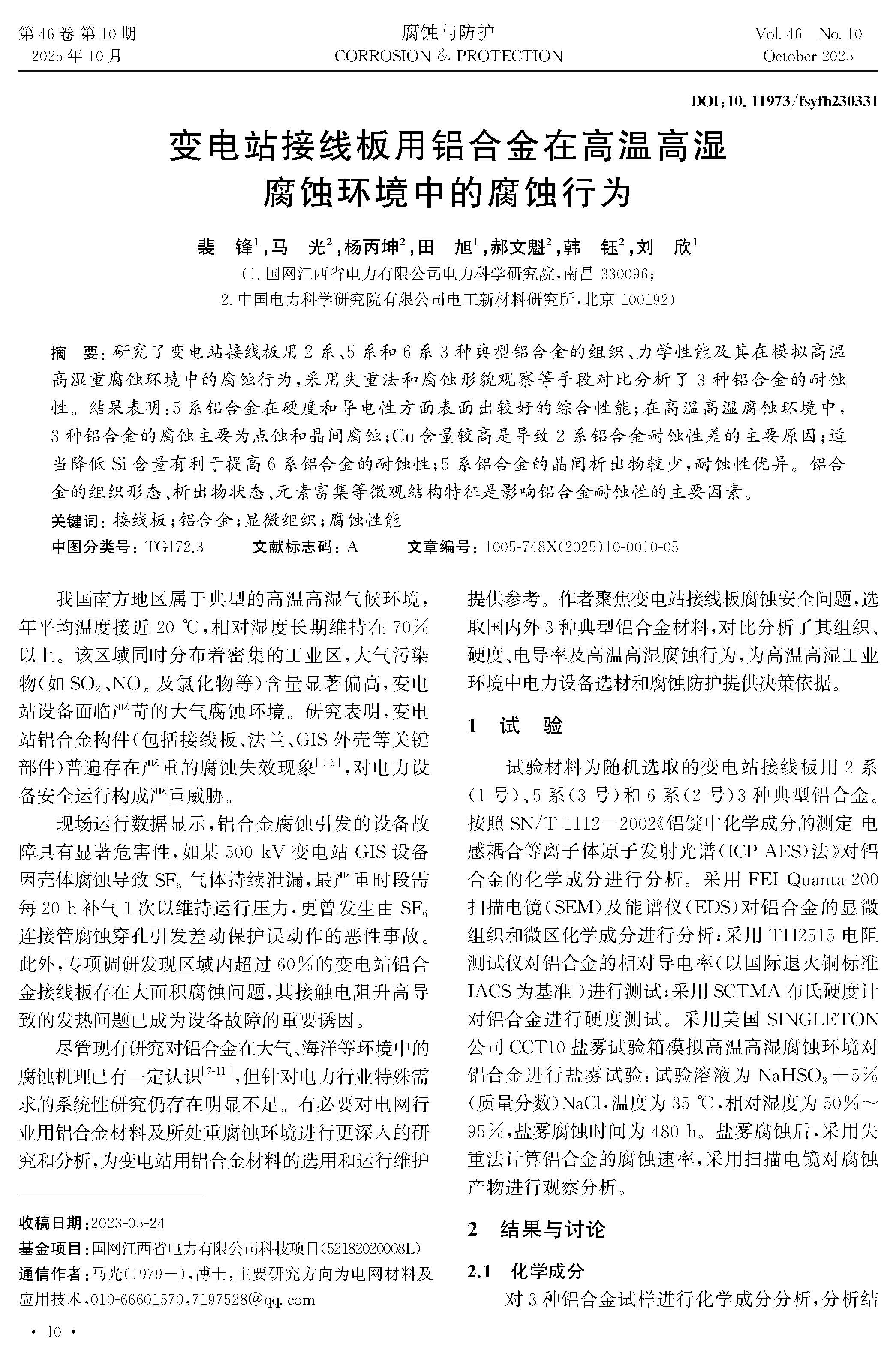 变电站接线板用铝合金在高温高湿腐蚀环境中的腐蚀行为