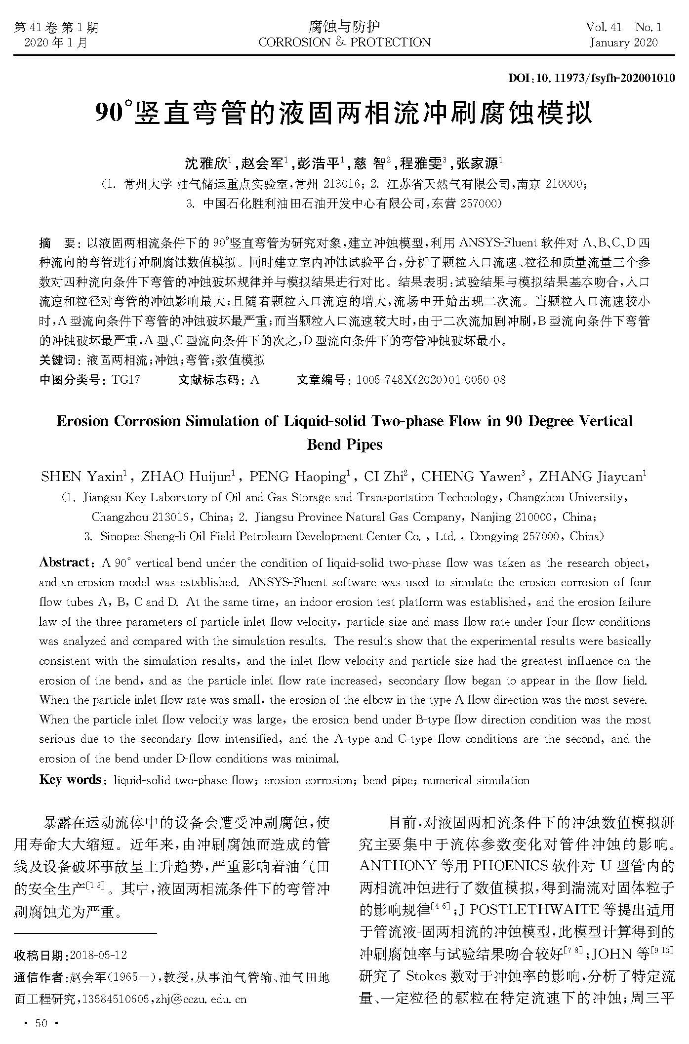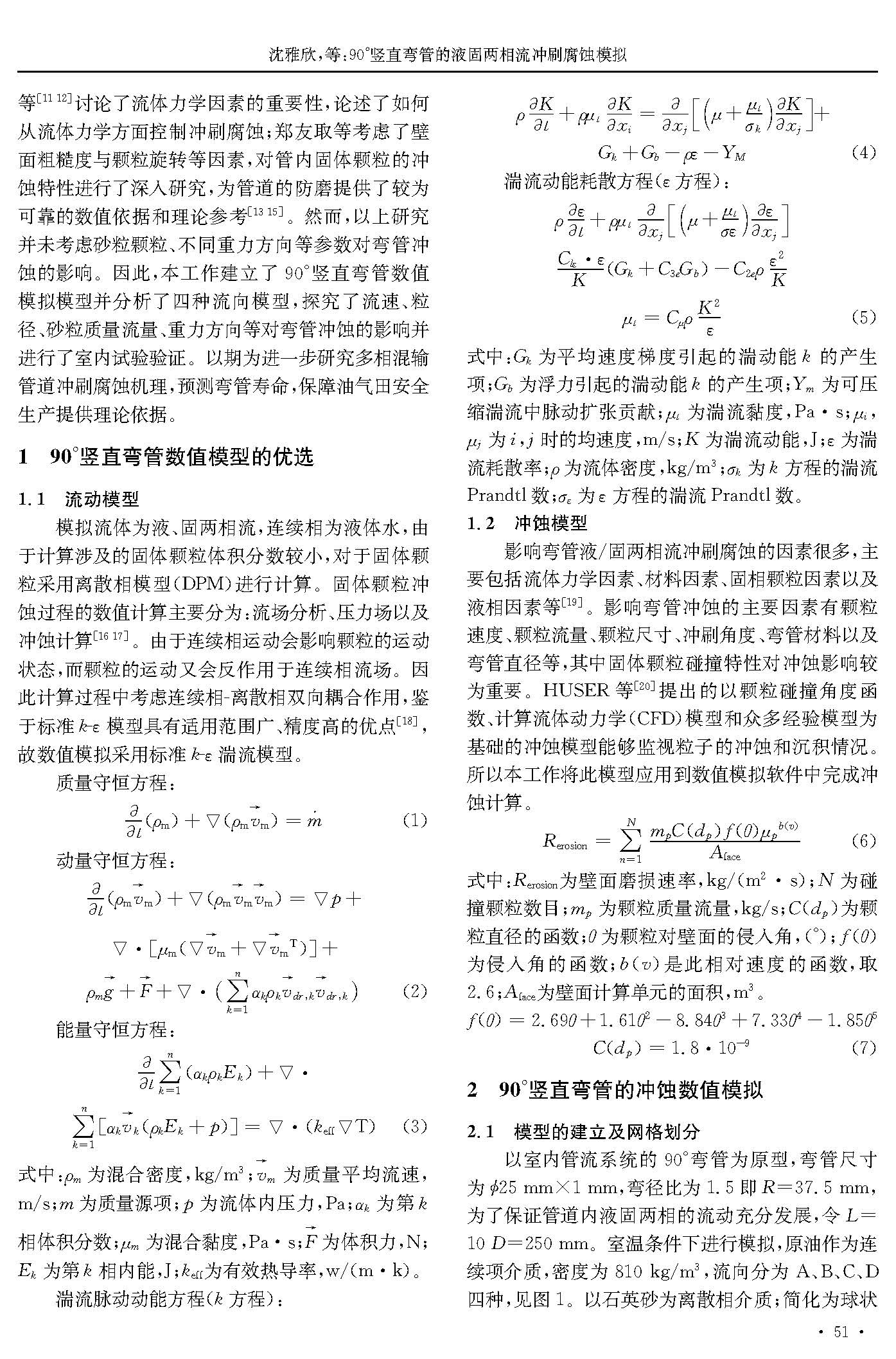 90℃竖直弯管的液固两相流冲刷腐蚀模拟