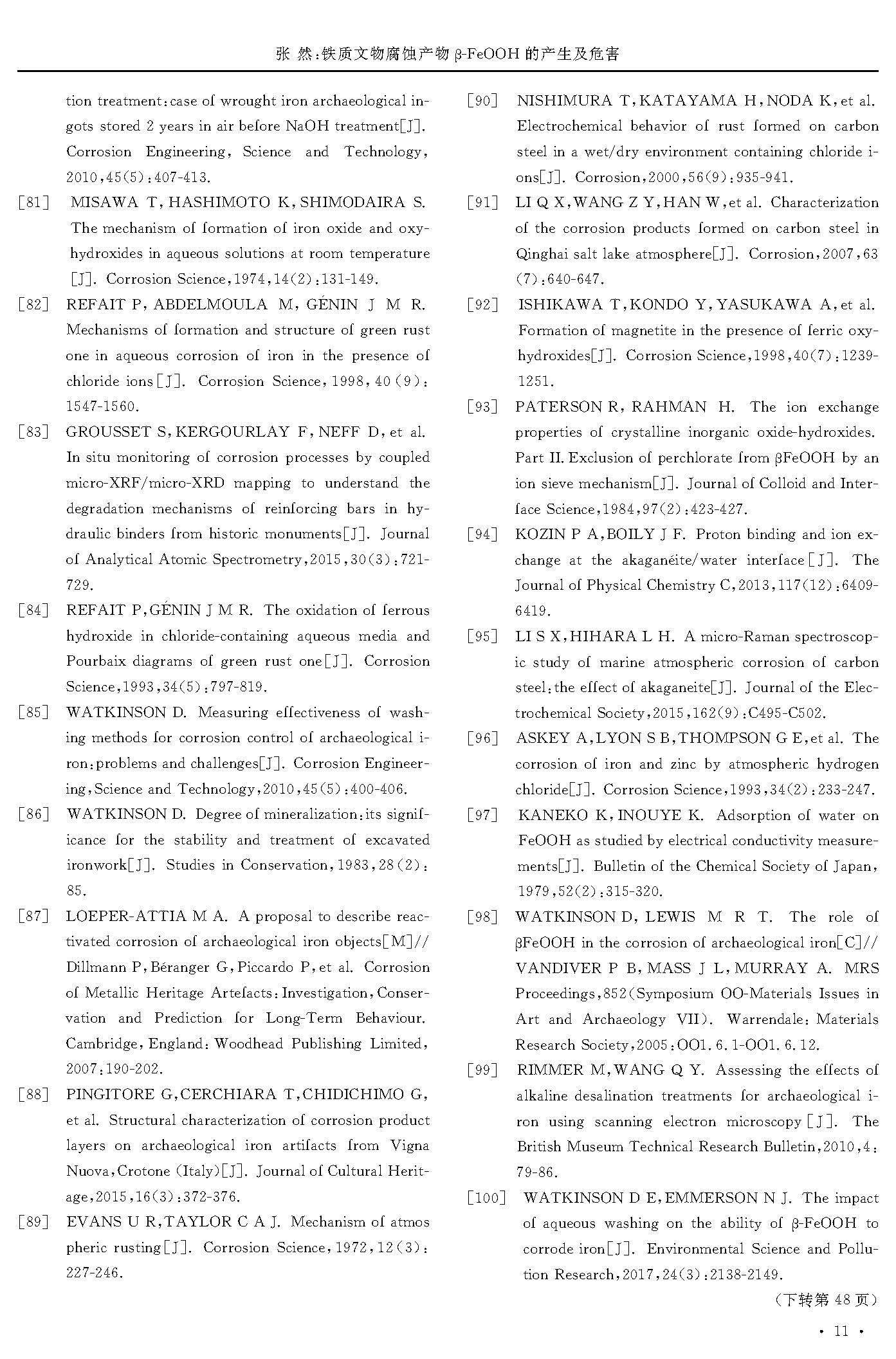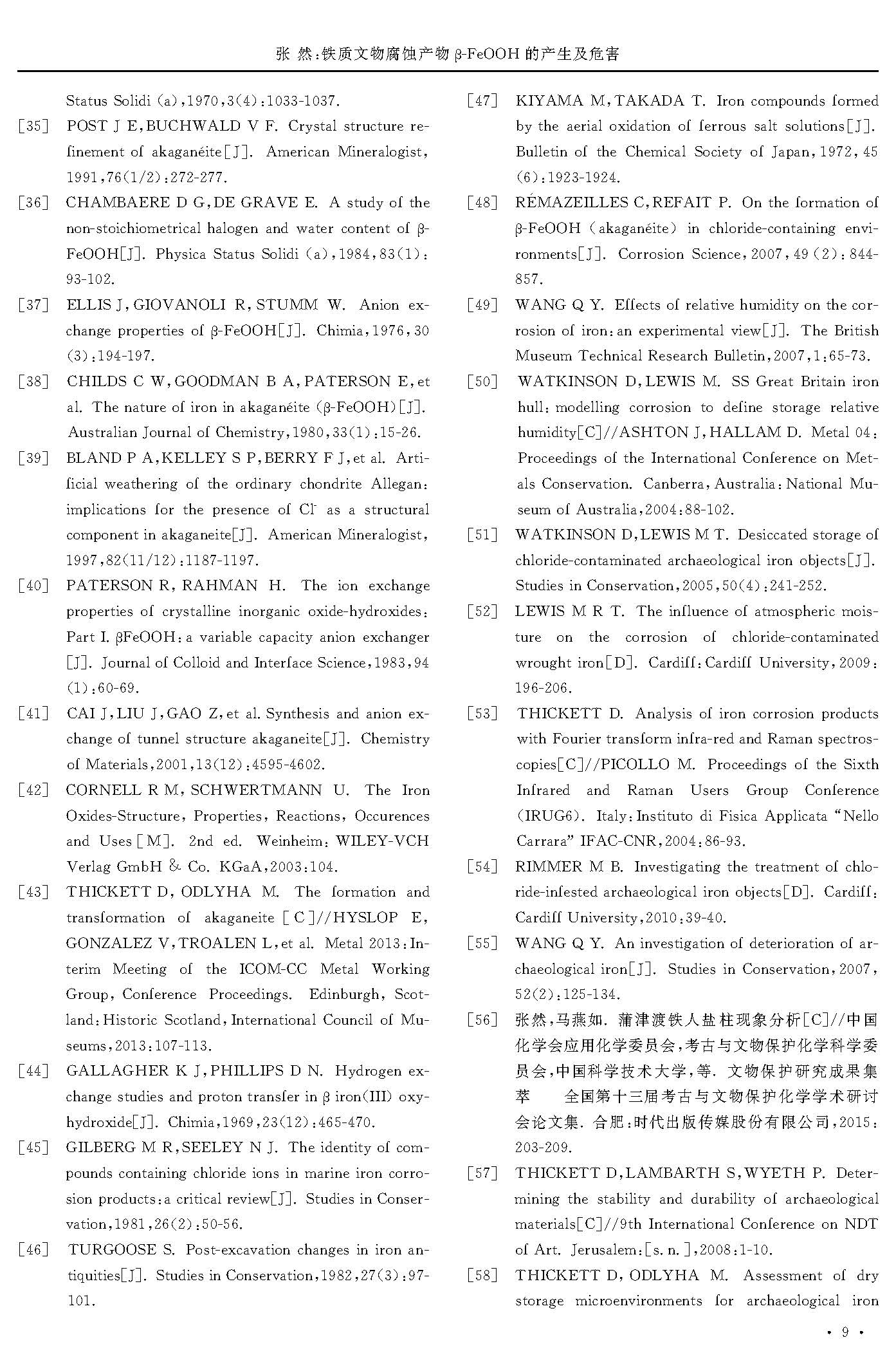 铁质文物腐蚀产物β-FeOOH的产生及危害
