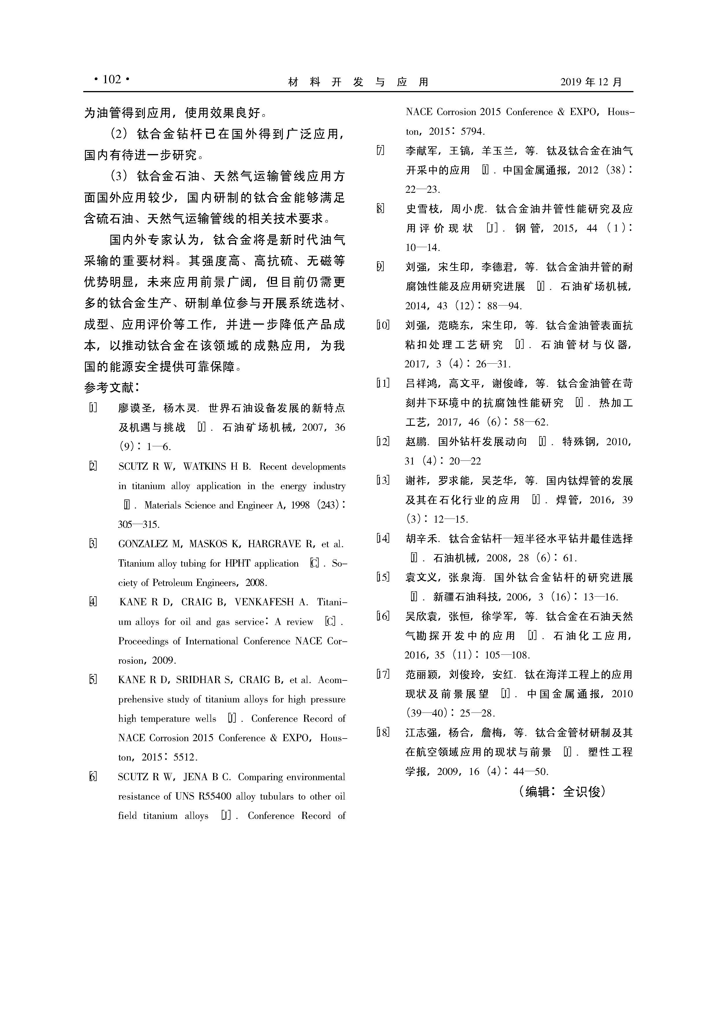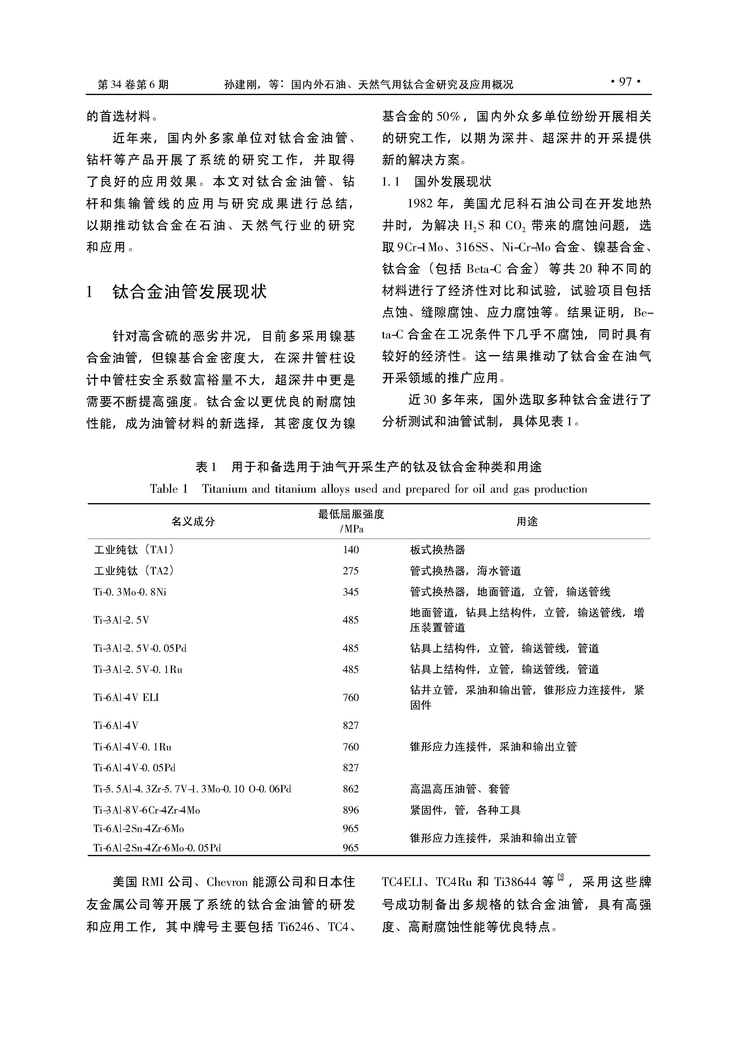 国内外石油、天然气用钛合金研究及应用概况