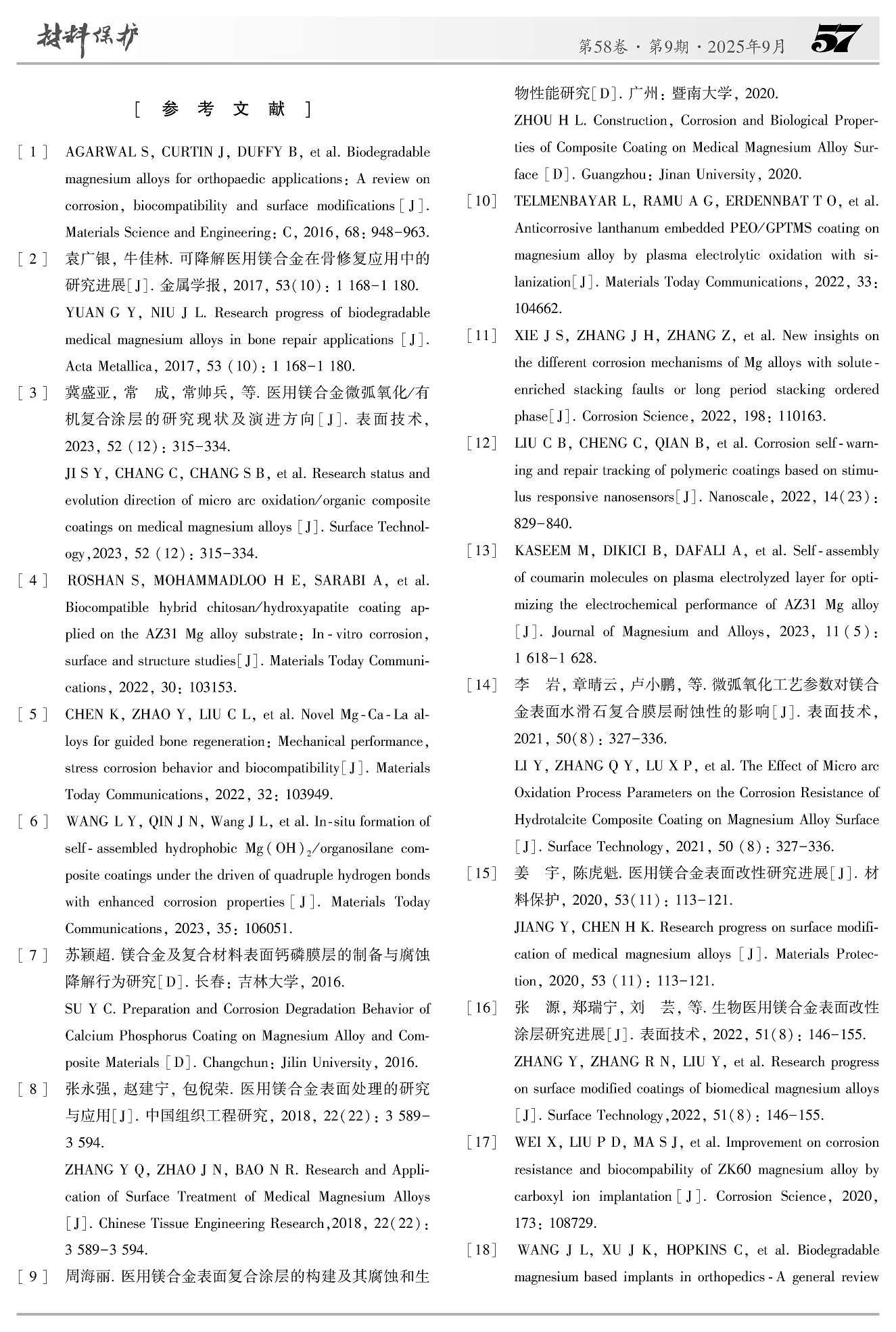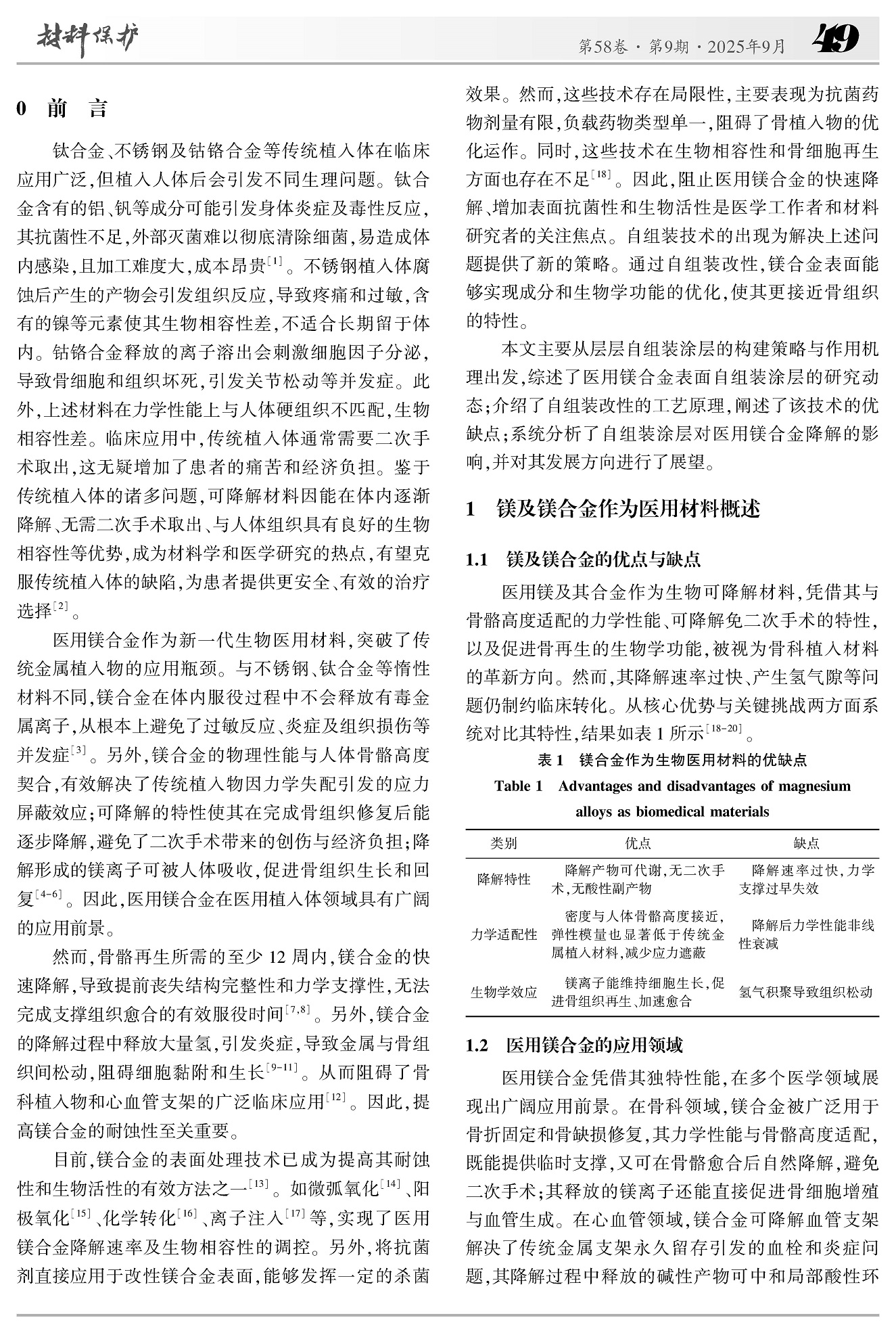 医用镁及其合金表面改性自组装涂层的研究进展