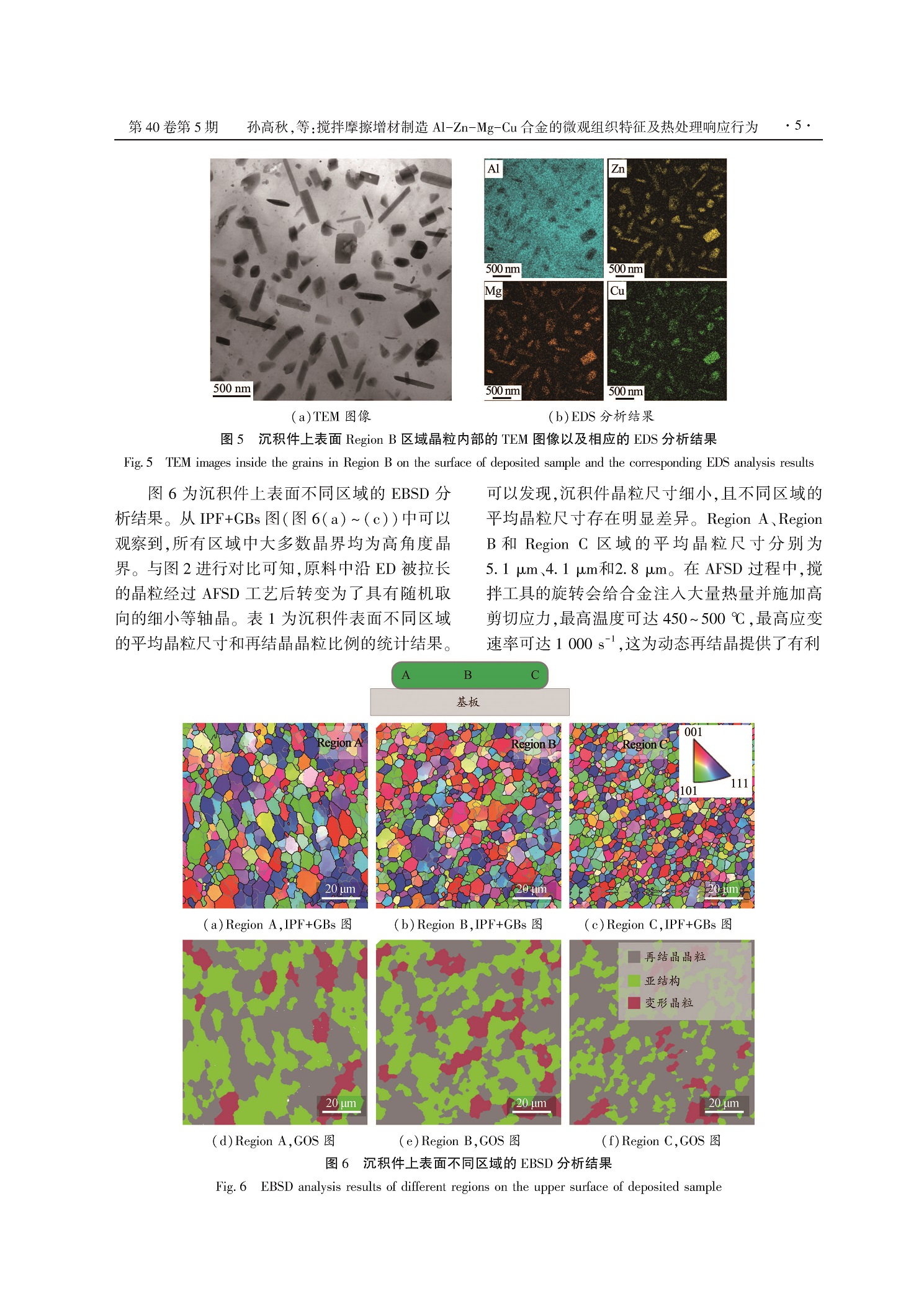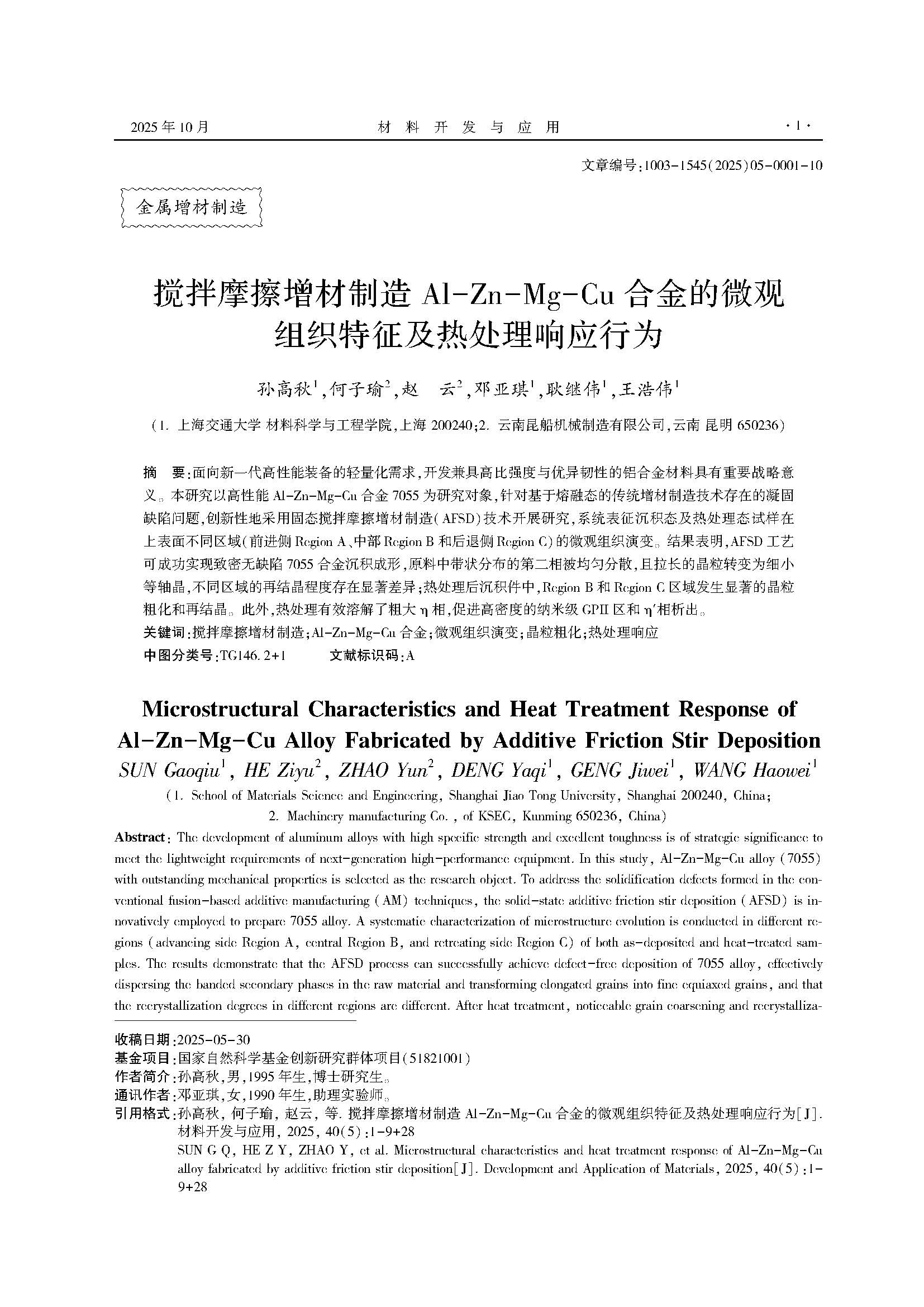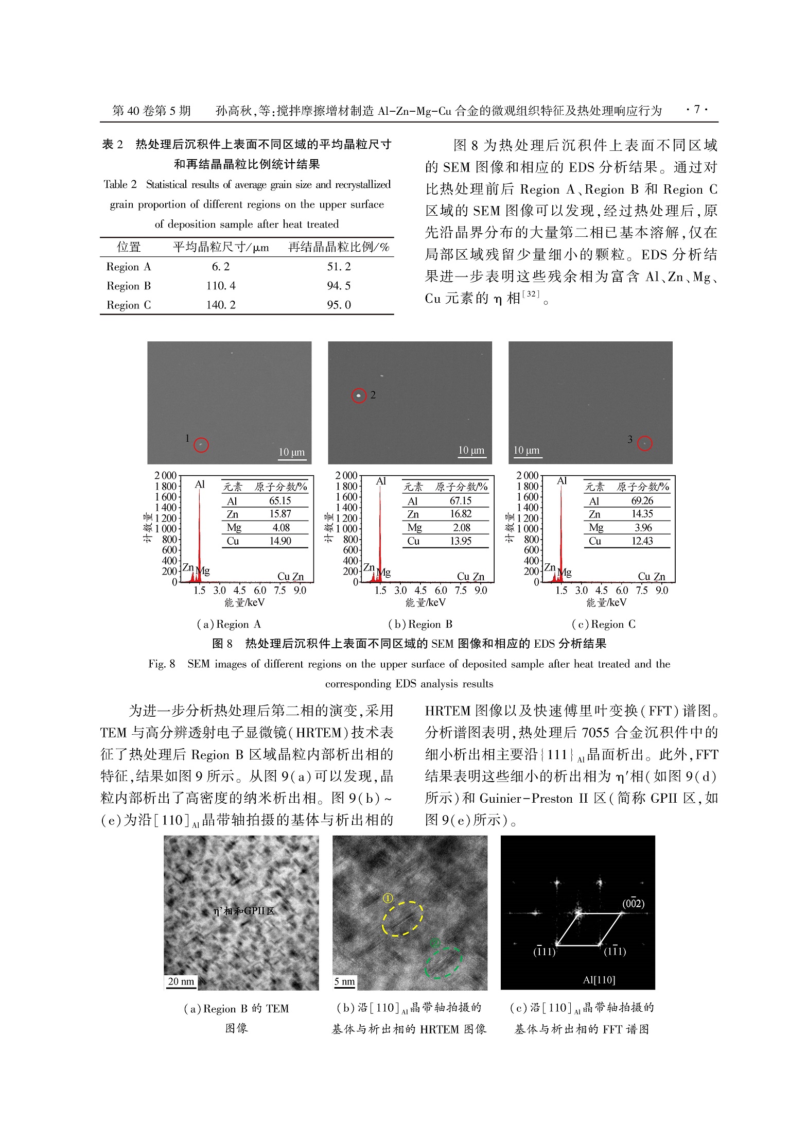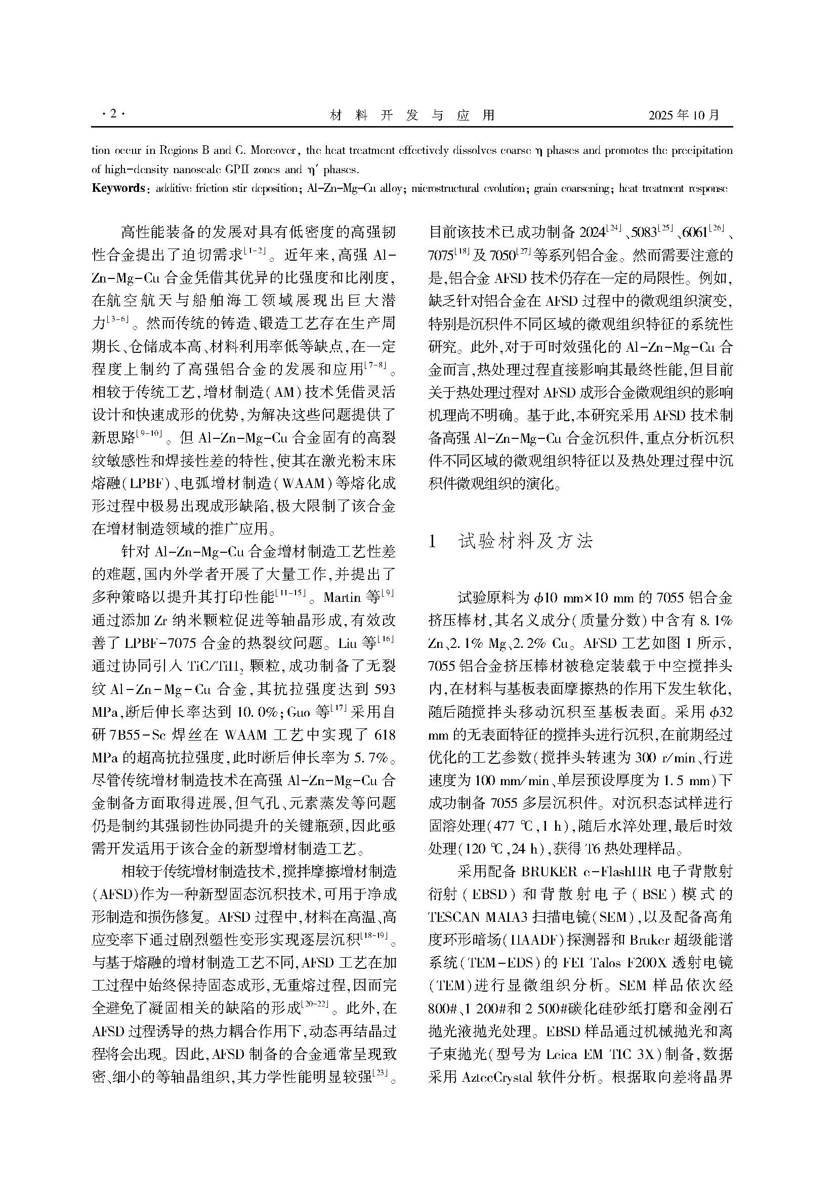 搅拌摩擦增材制造Al-Zn-Mg-Cu合金的微观组织特征及热处理响应行为