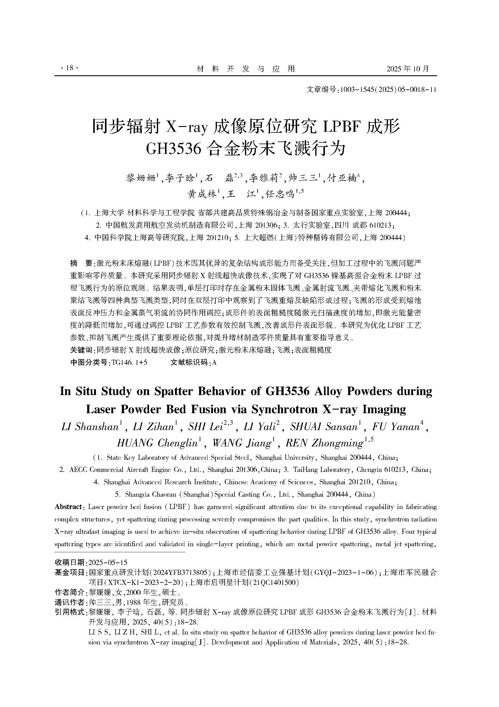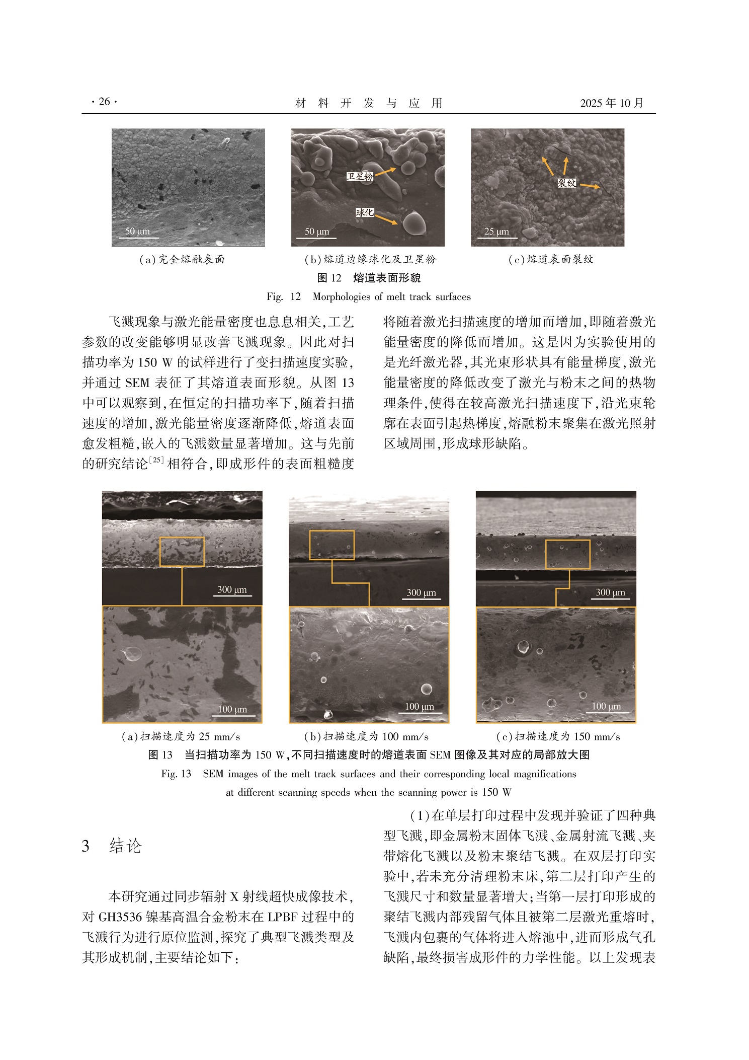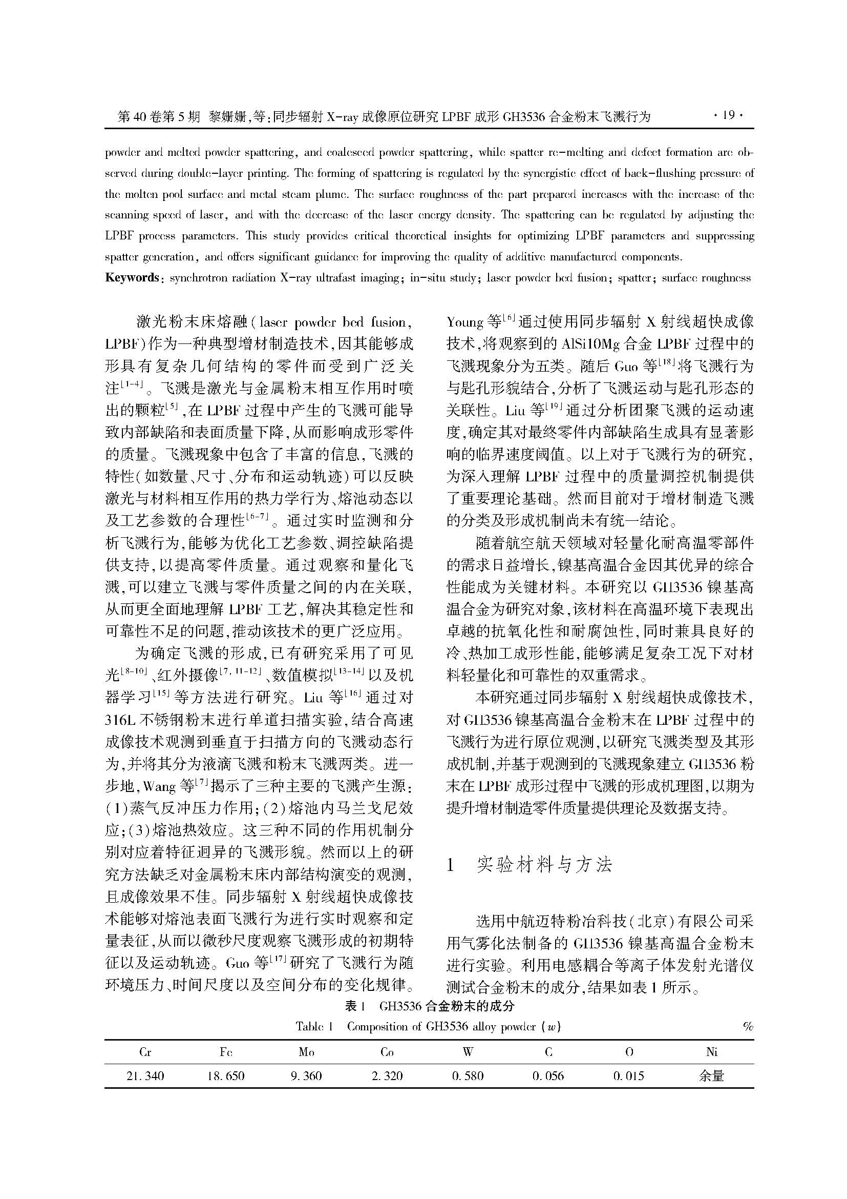 同步辐射X-ray成像原位研究LPBF成形GH3536合金粉末飞溅行为