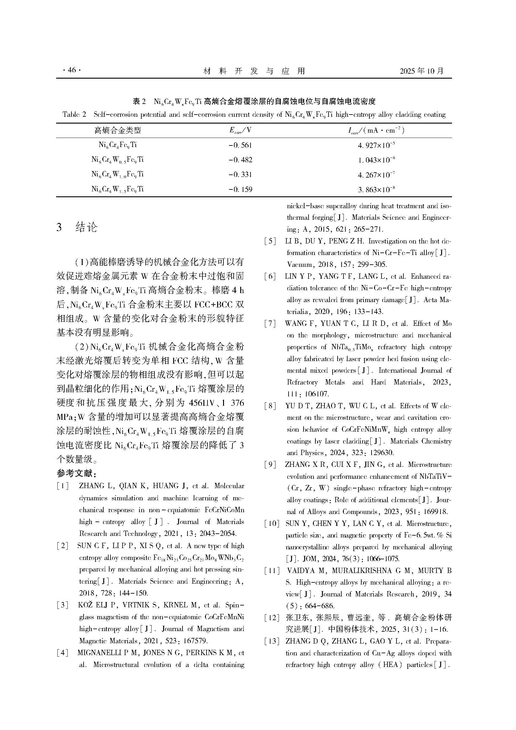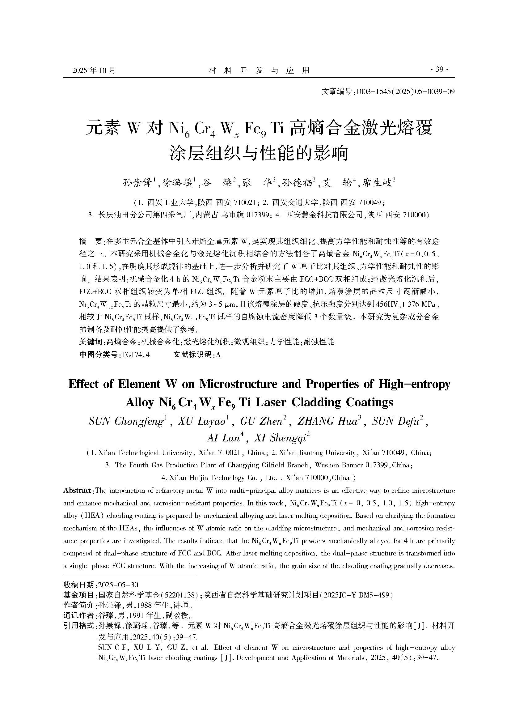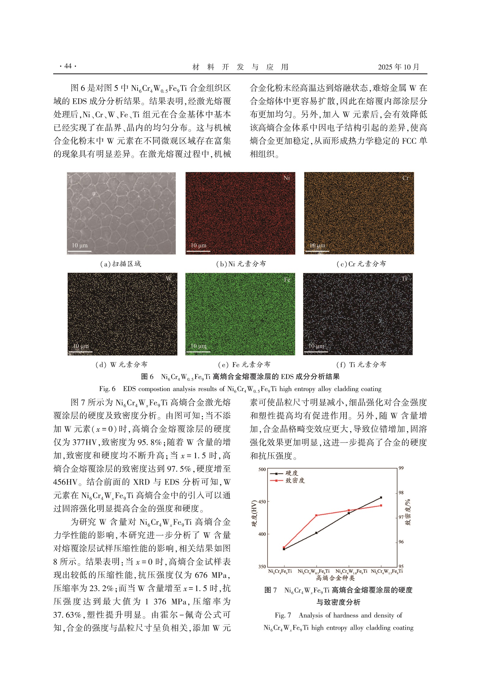 元素W对Ni6Cr4WxFe9Ti高熵合金激光熔覆涂层组织与性能的影响