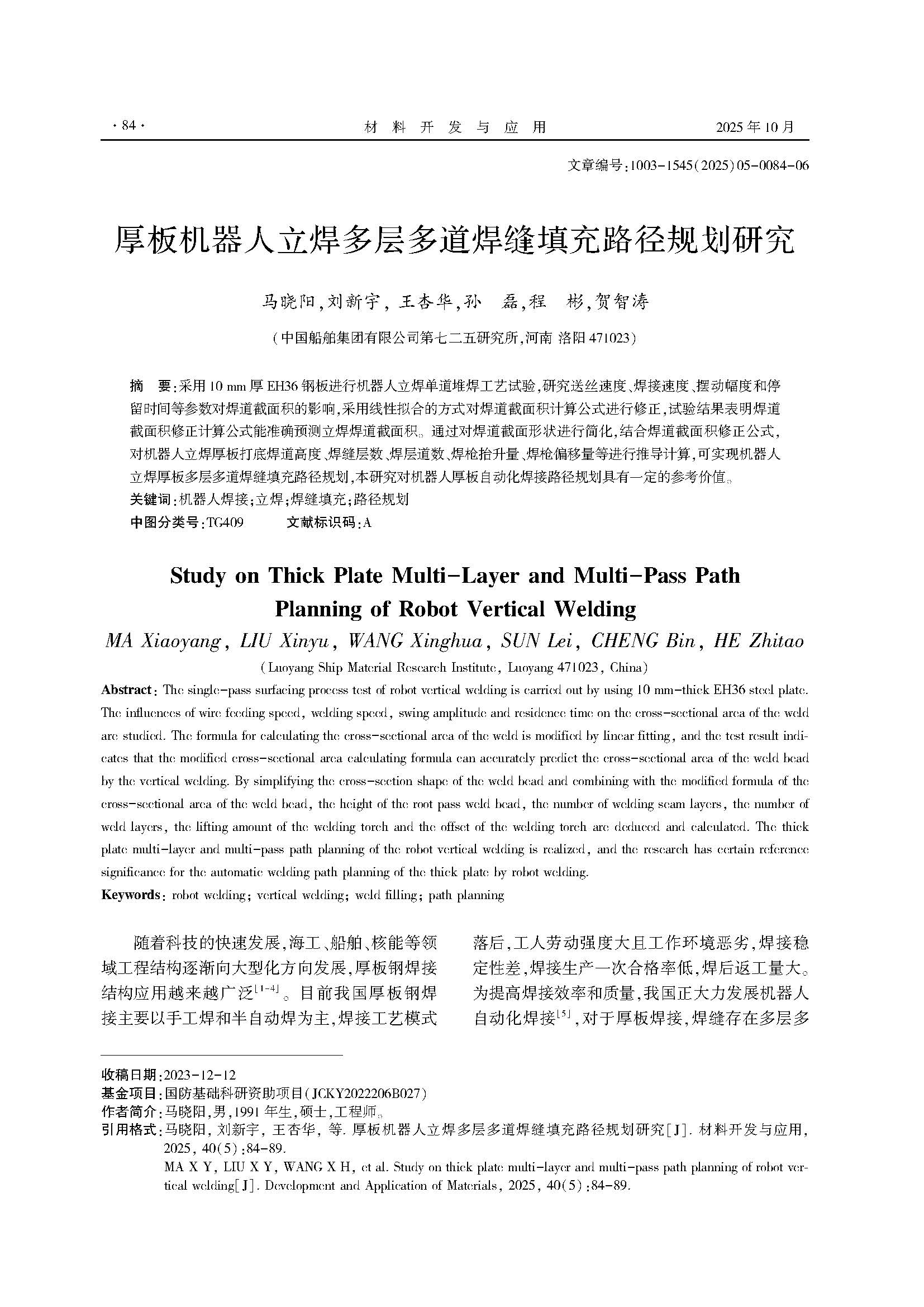 作者:马晓阳, 刘新宇, 王杏华, 孙 磊, 程 彬, 贺智涛