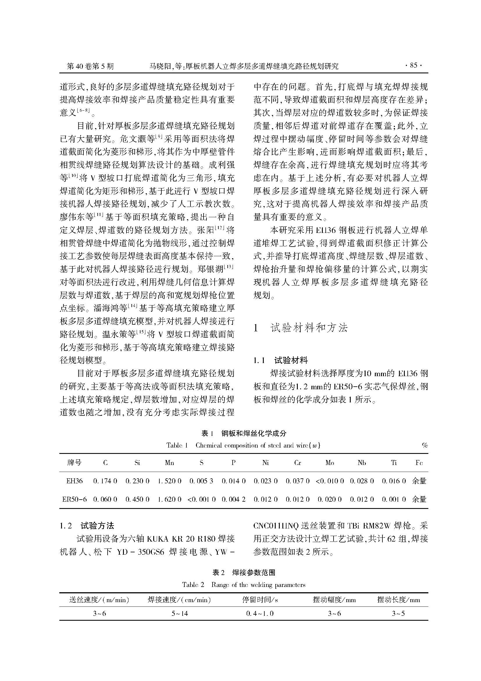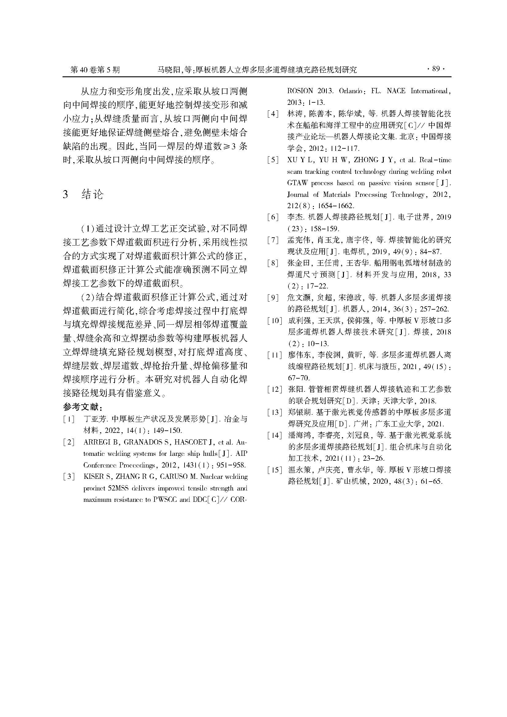 厚板机器人立焊多层多道焊缝填充路径规划研究
