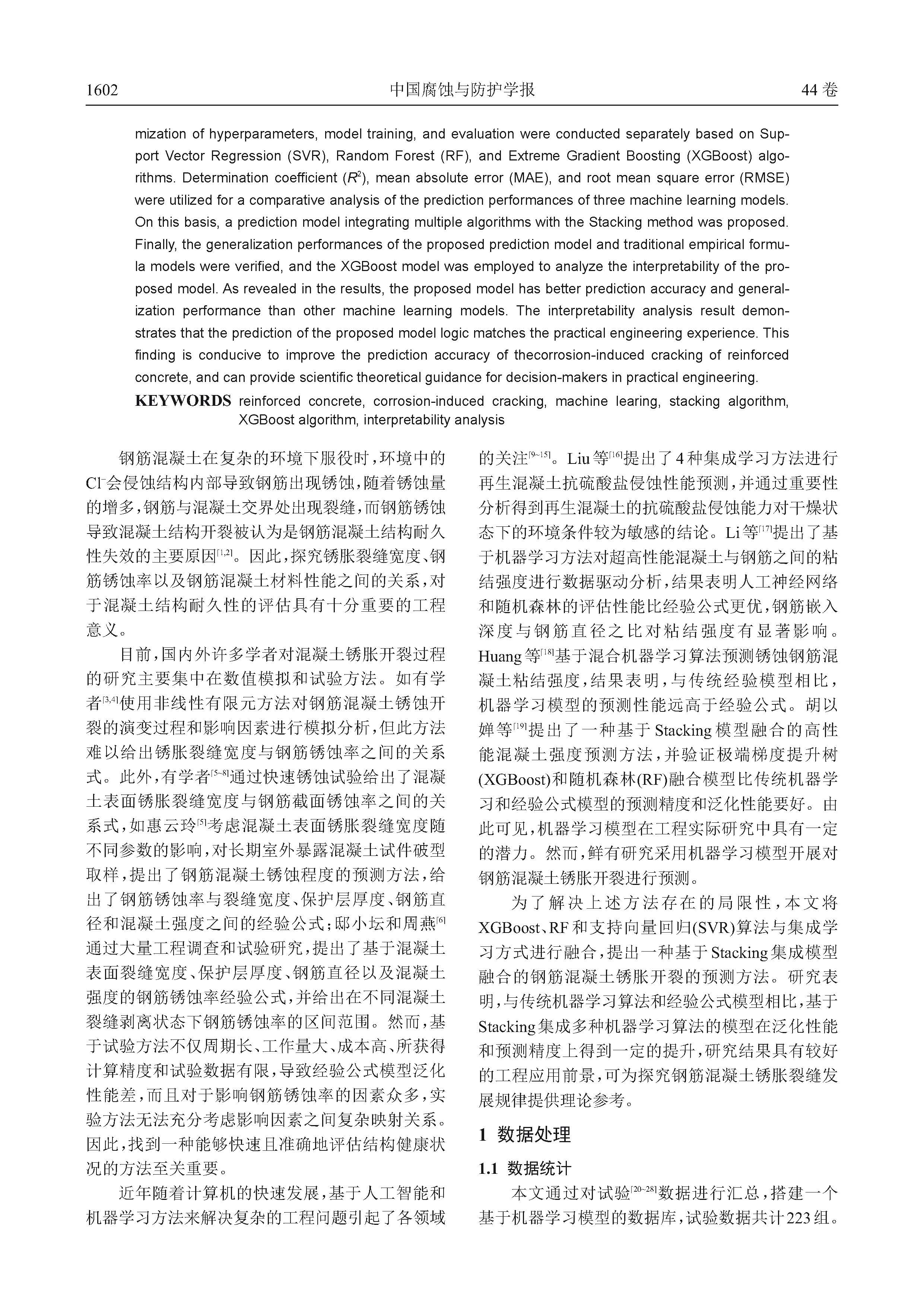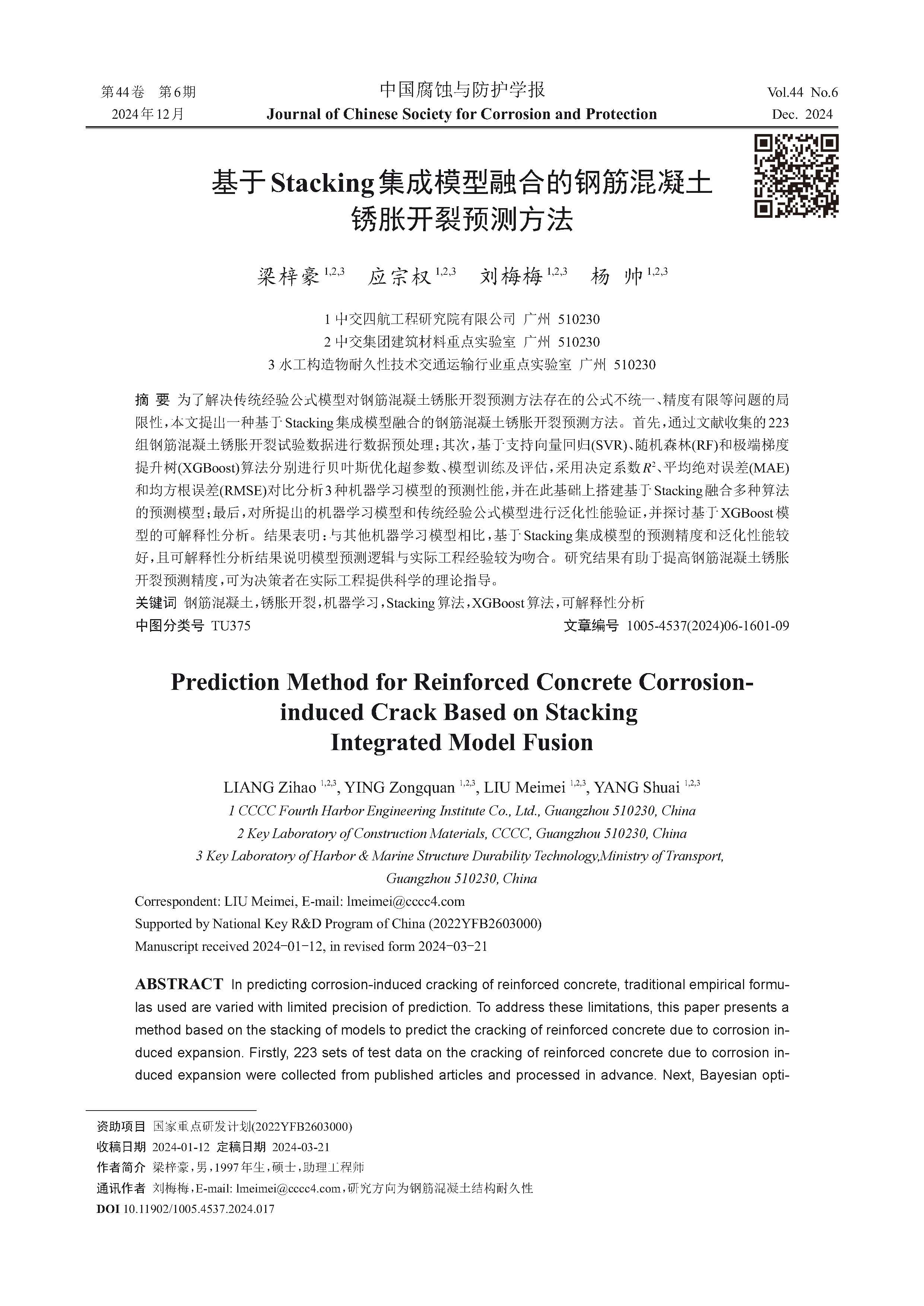 基于Stacking集成模型融合的钢筋混凝土锈胀开裂预测方法