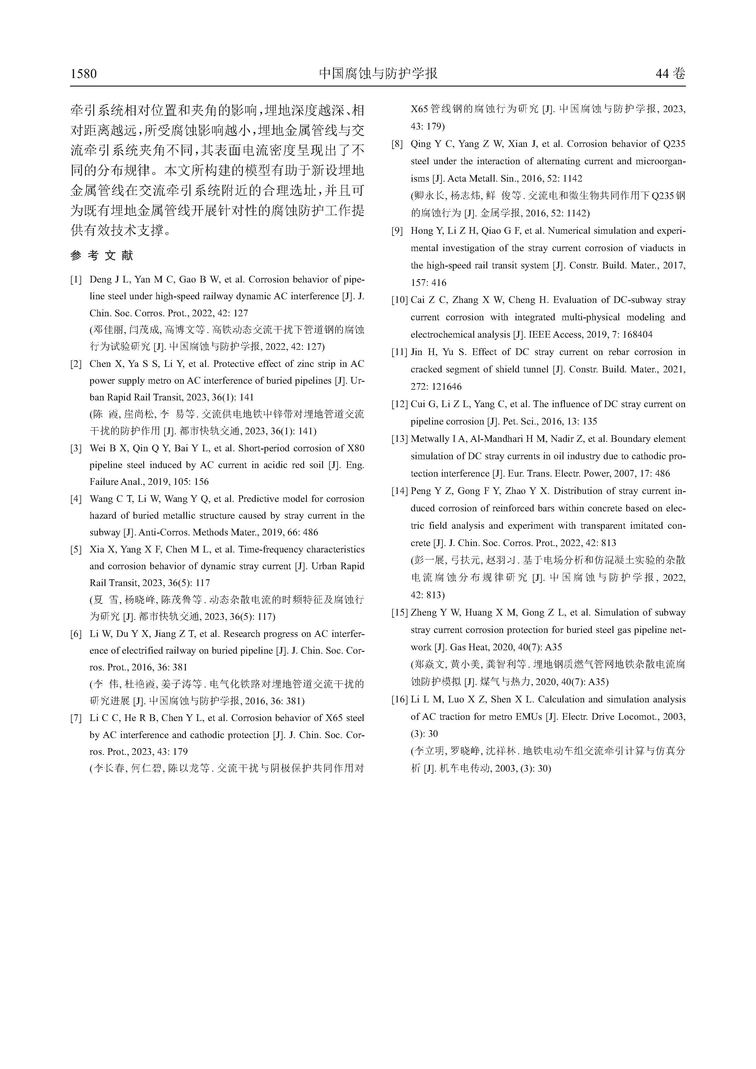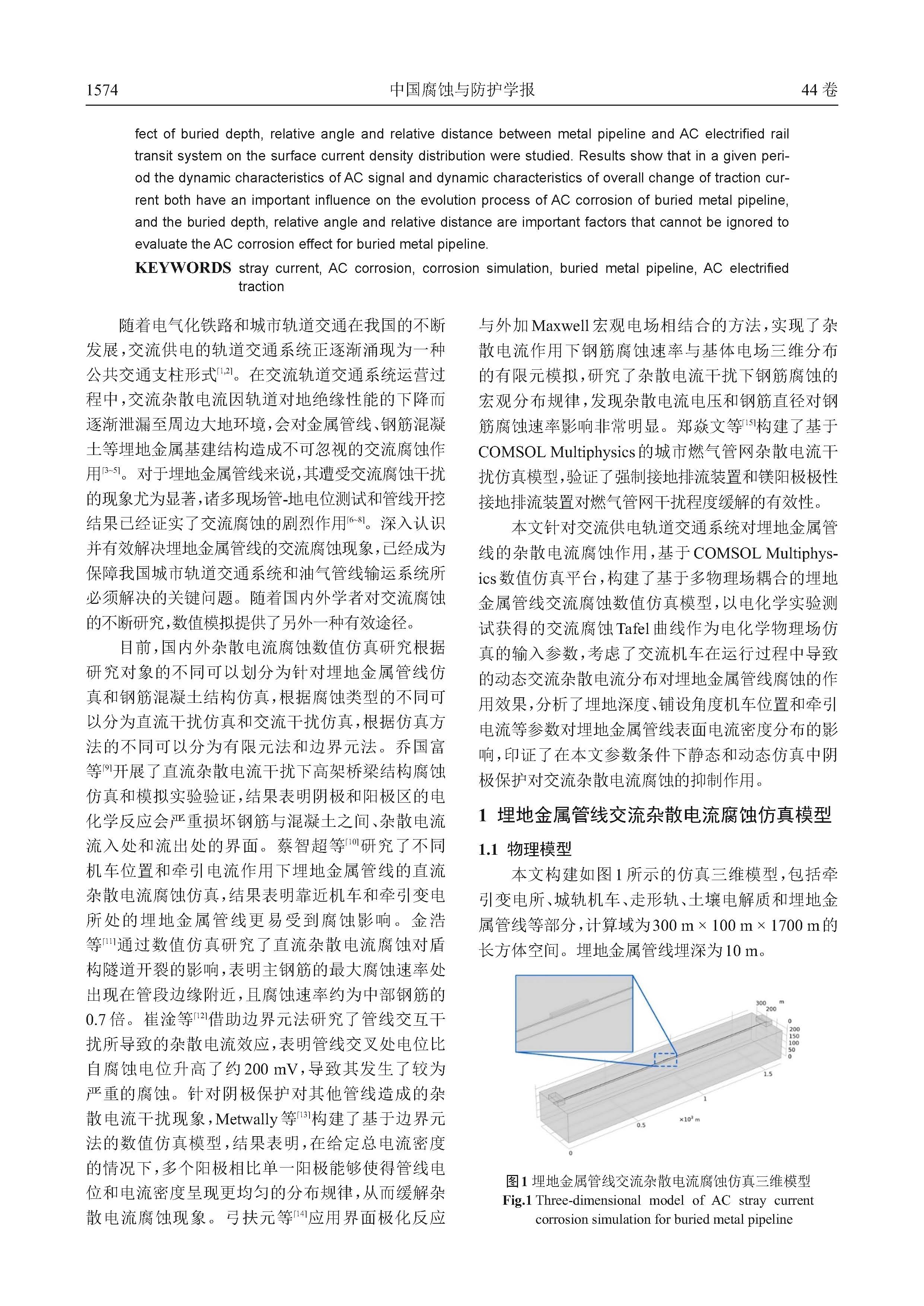基于物理场耦合的交流干扰作用下埋地金属管线腐蚀数值仿真
