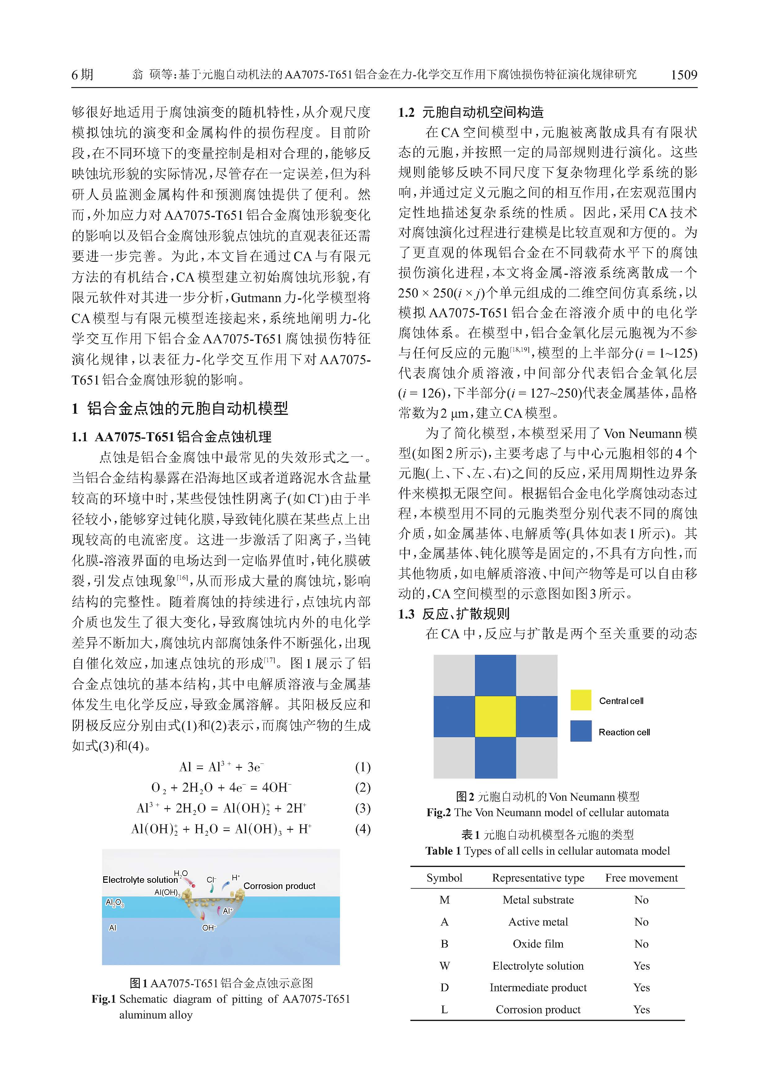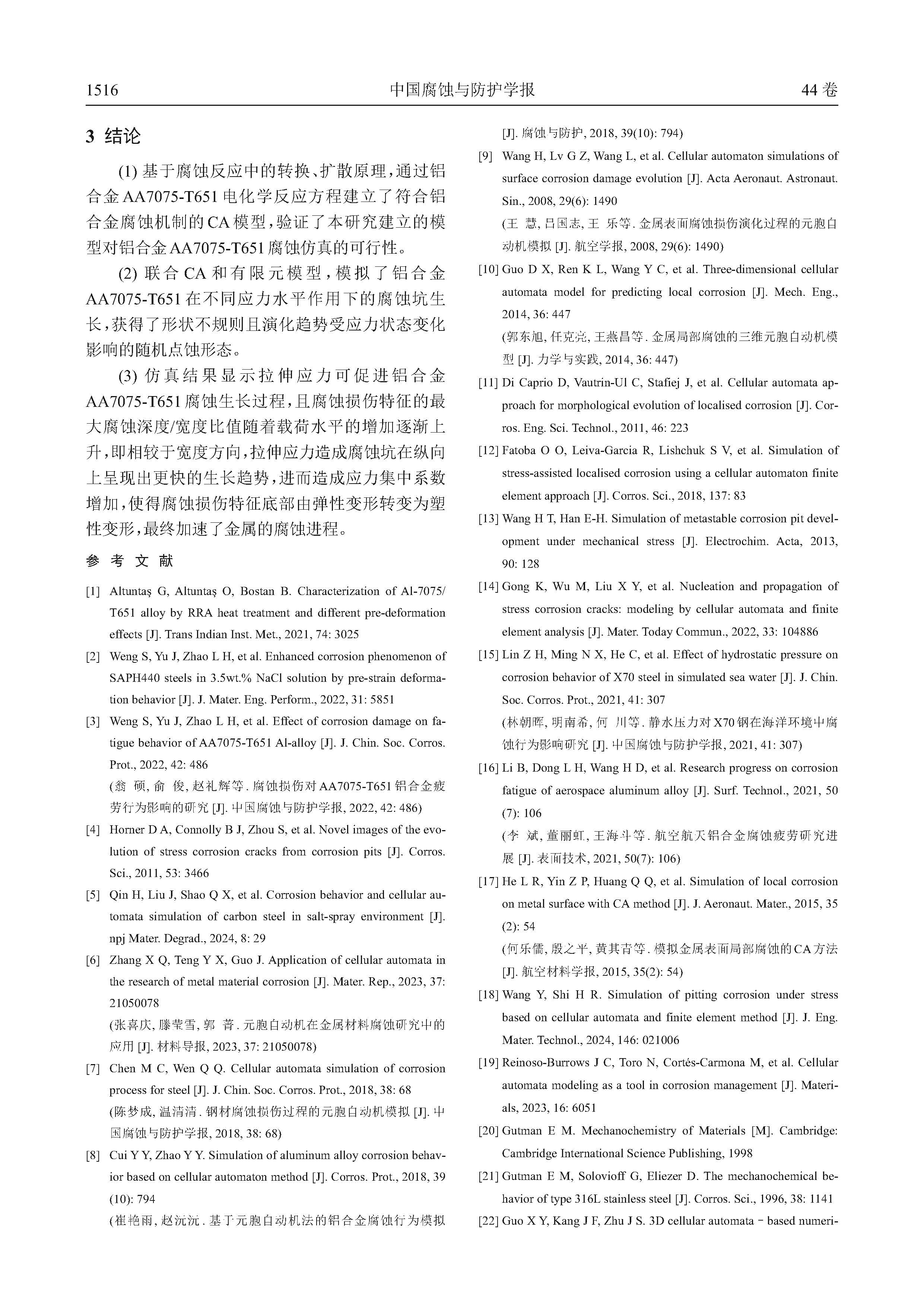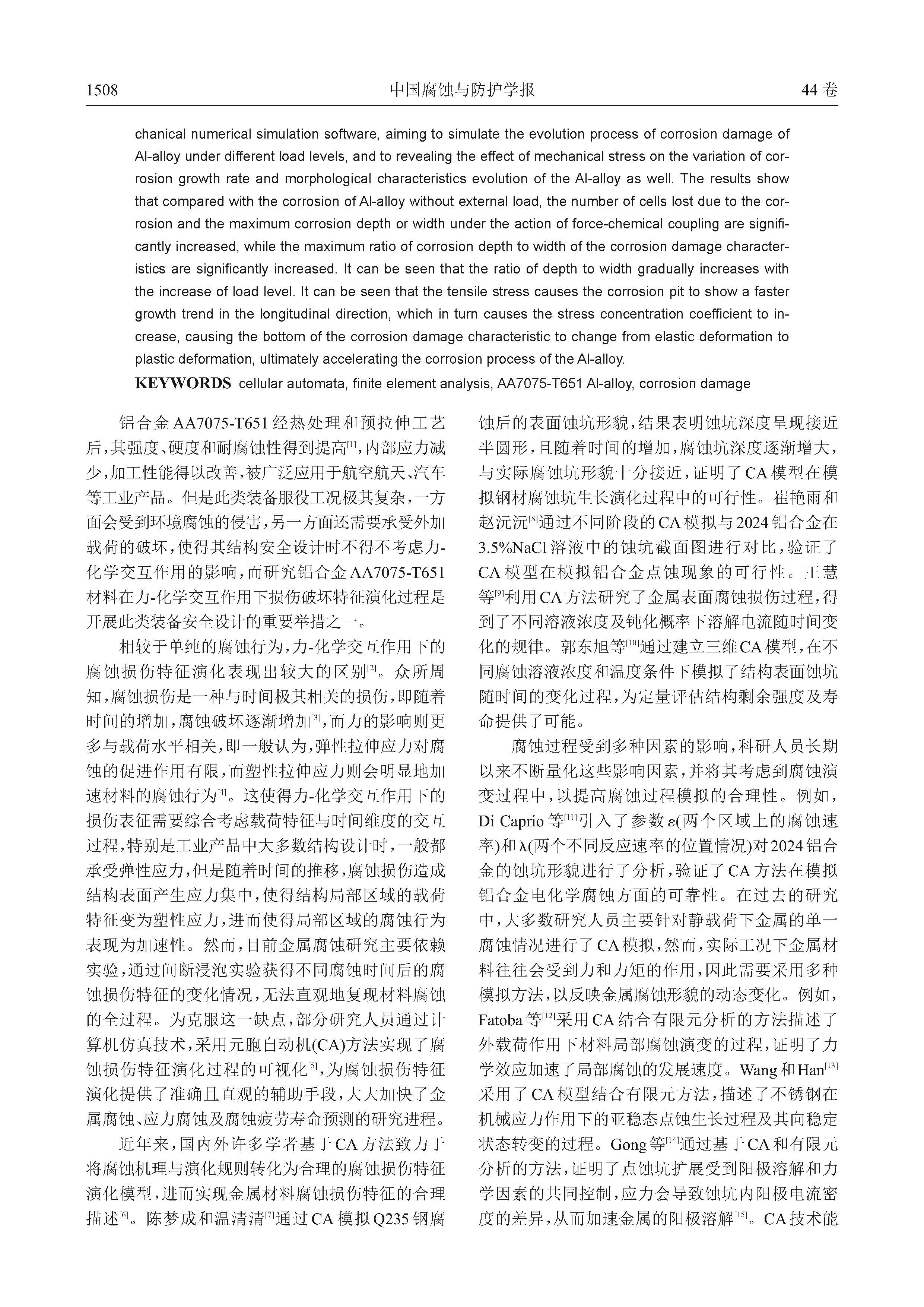 基于元胞自动机法的AA7075-T651铝合金在力-化学交互作用下腐蚀损伤特征演化规律研究