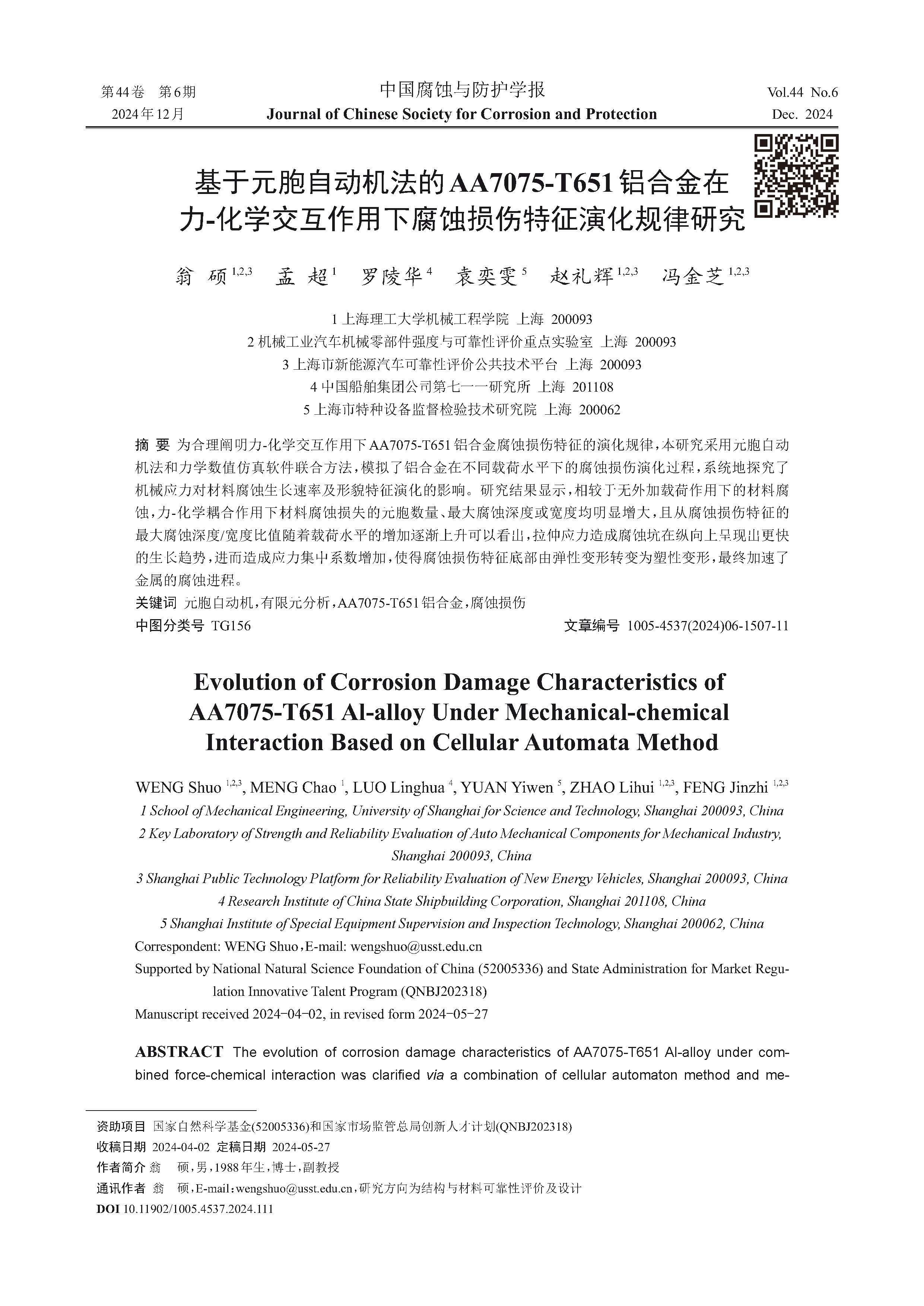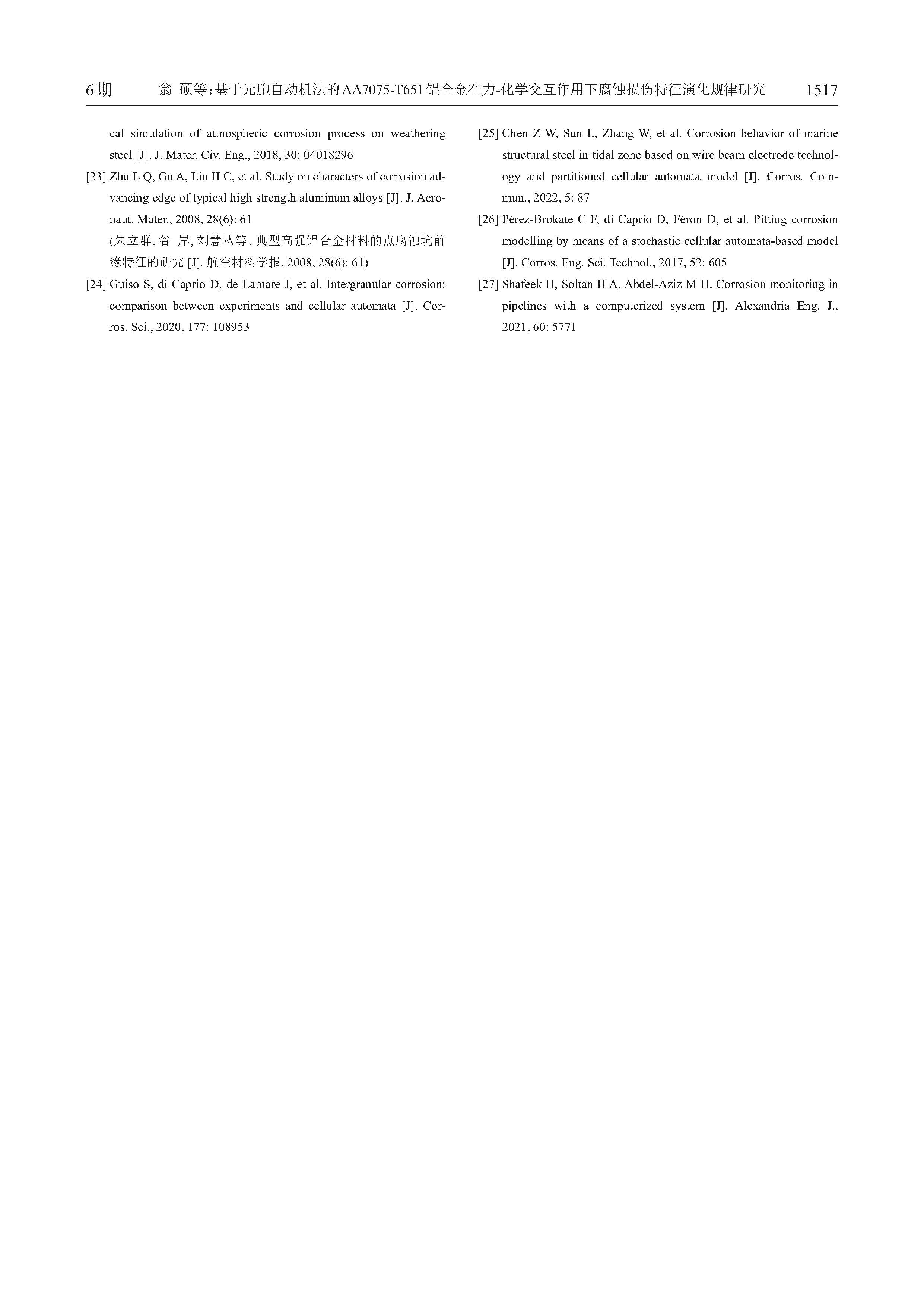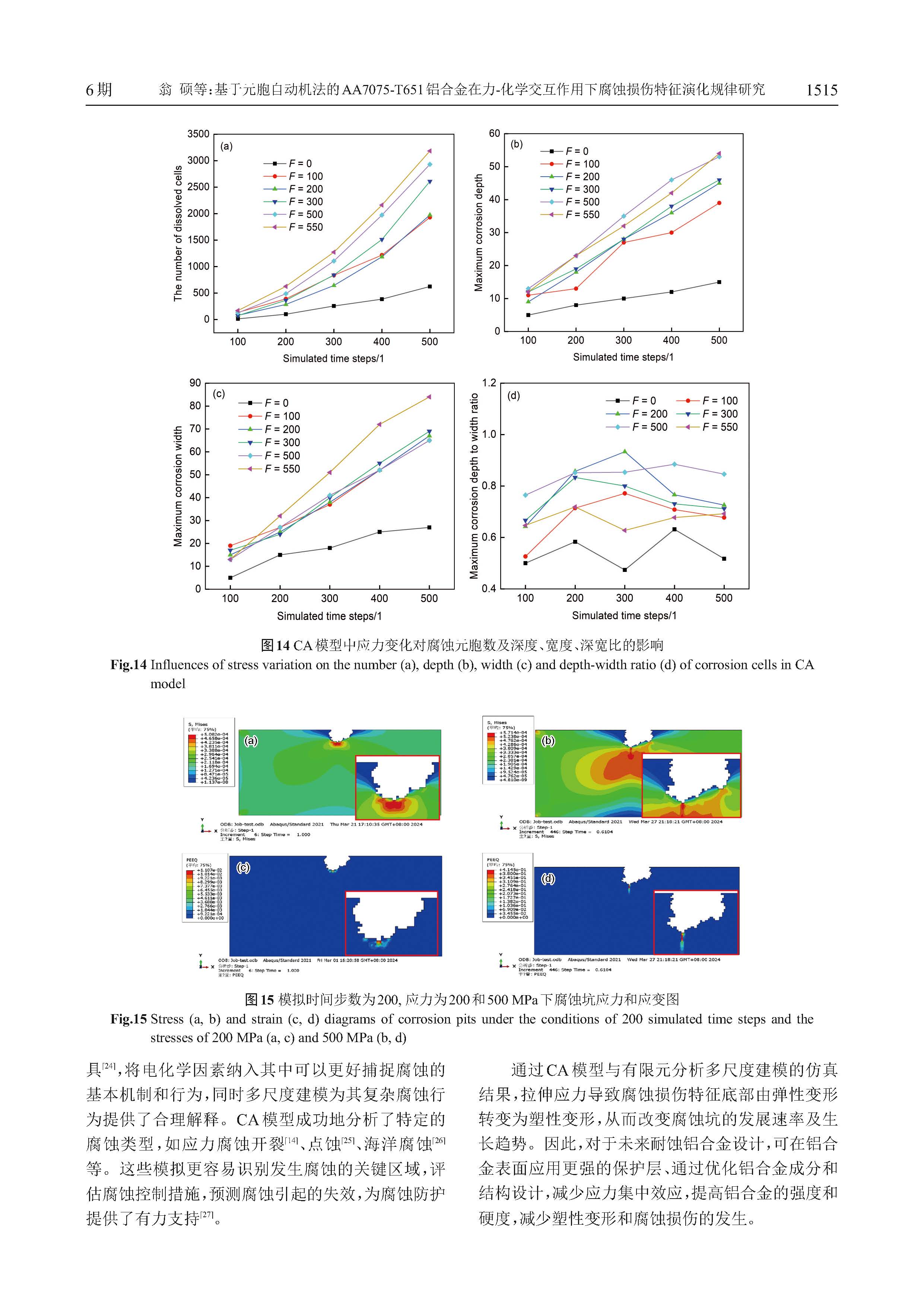 基于元胞自动机法的AA7075-T651铝合金在力-化学交互作用下腐蚀损伤特征演化规律研究
