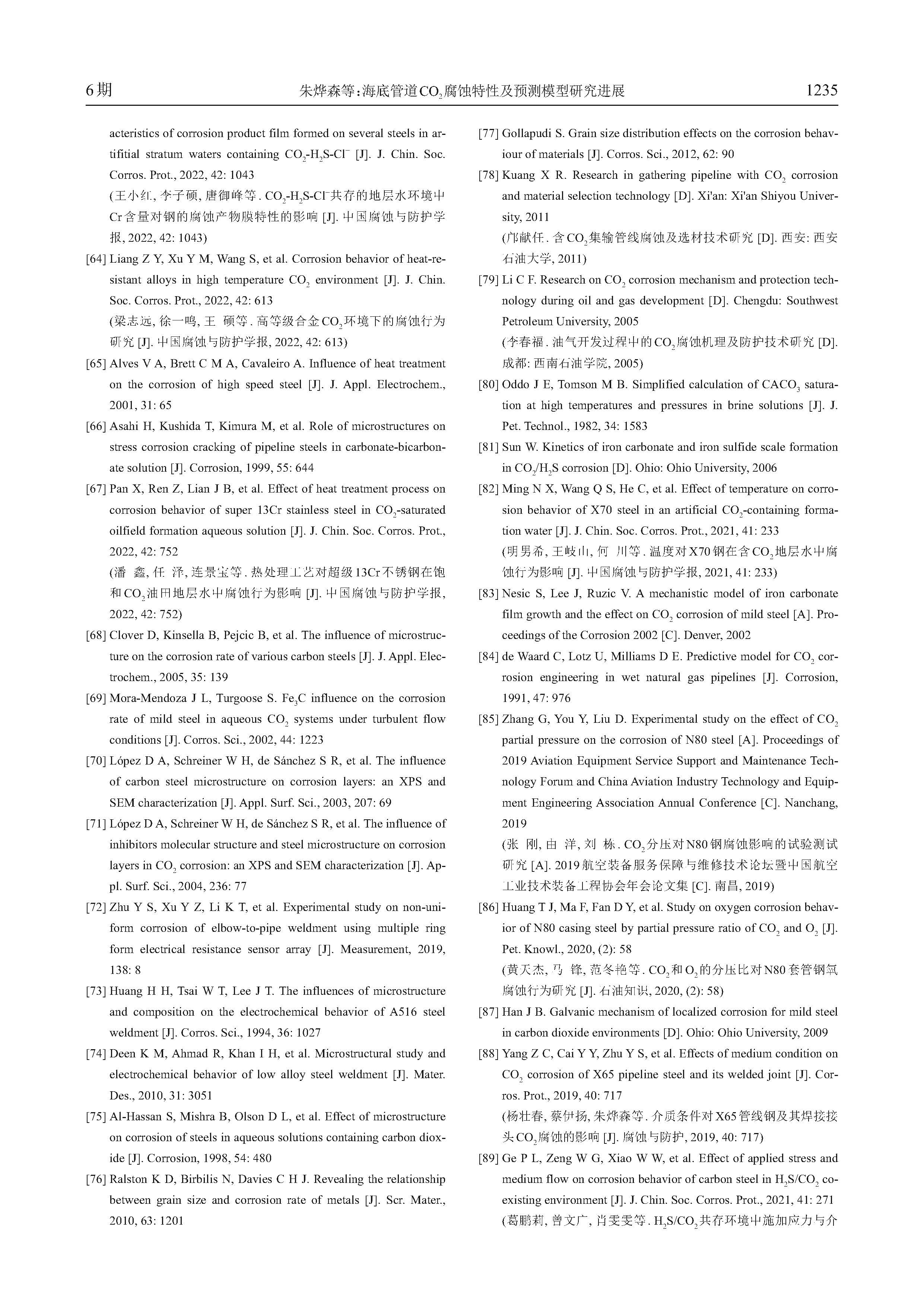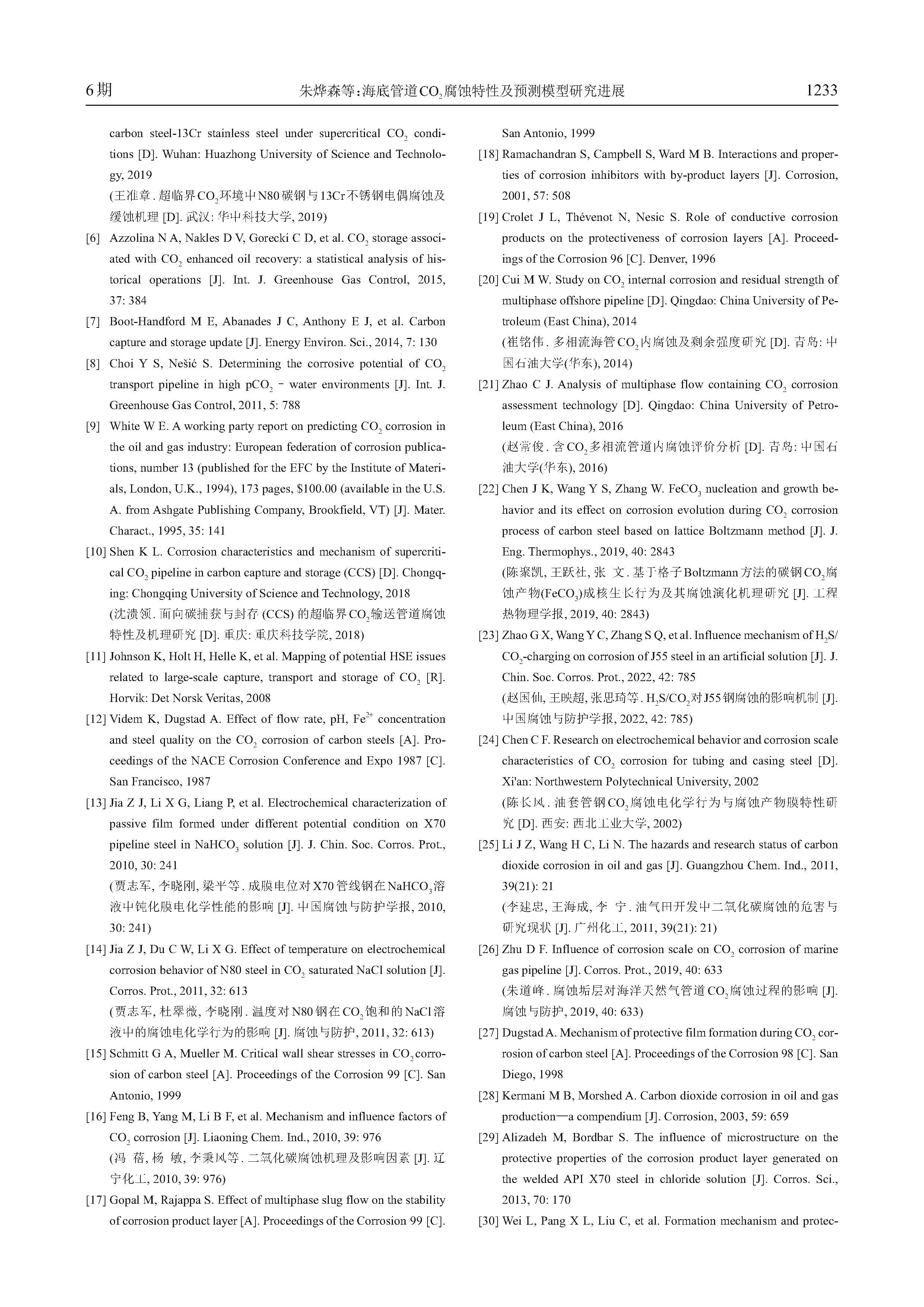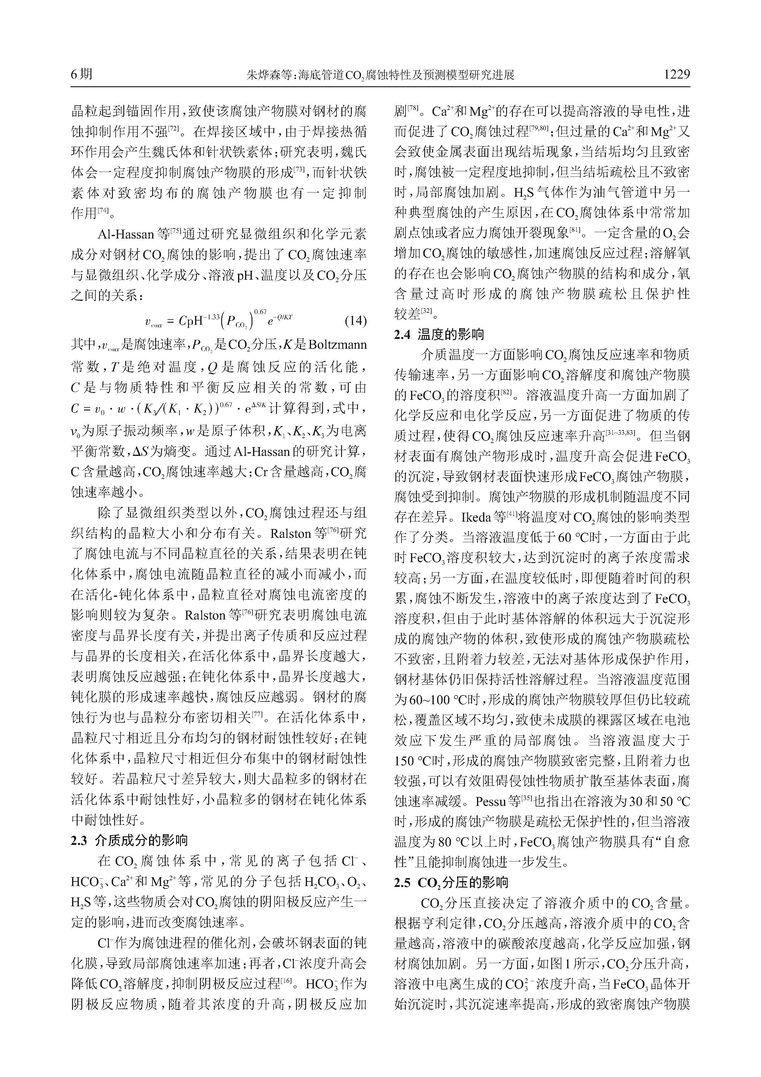 海底管道CO2腐蚀特性及预测模型研究进展