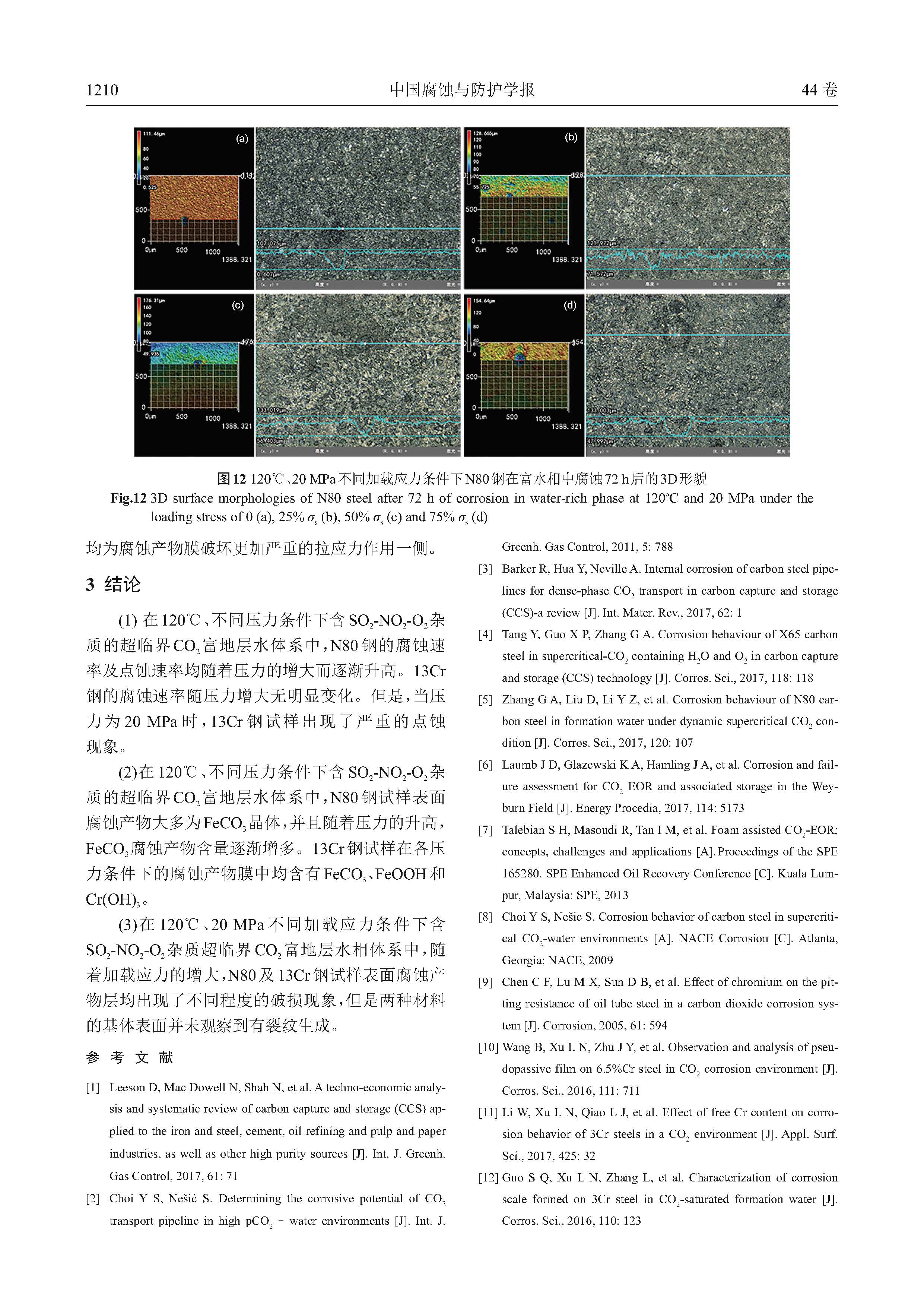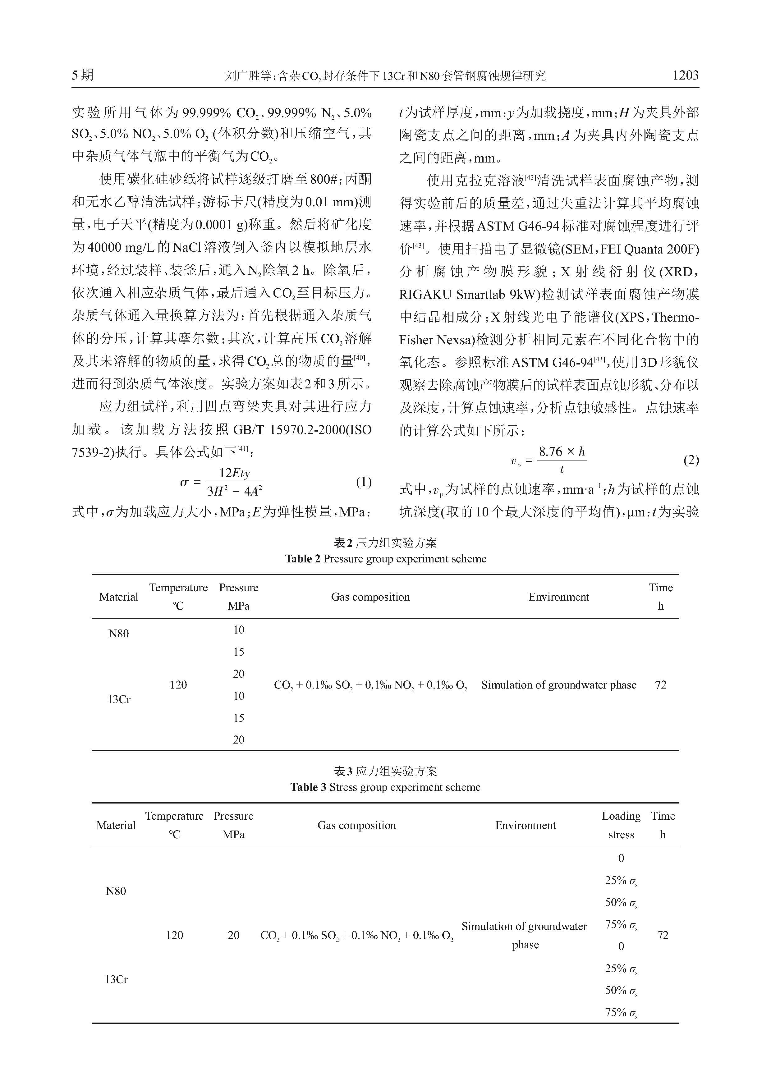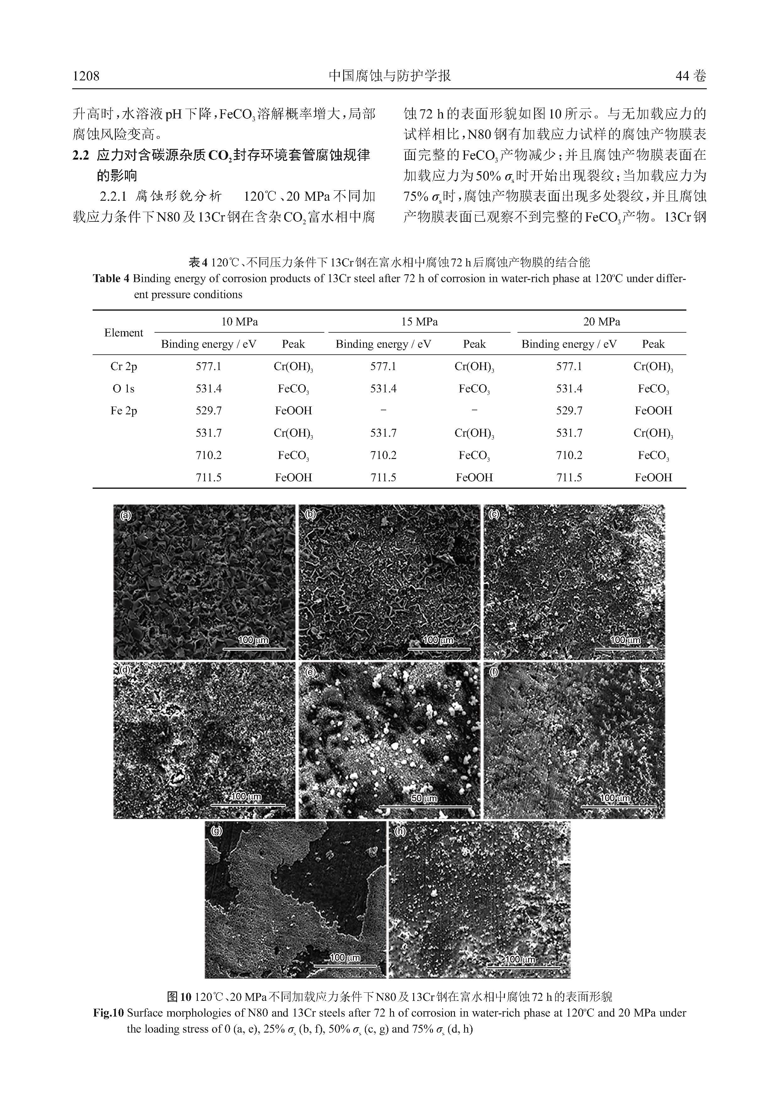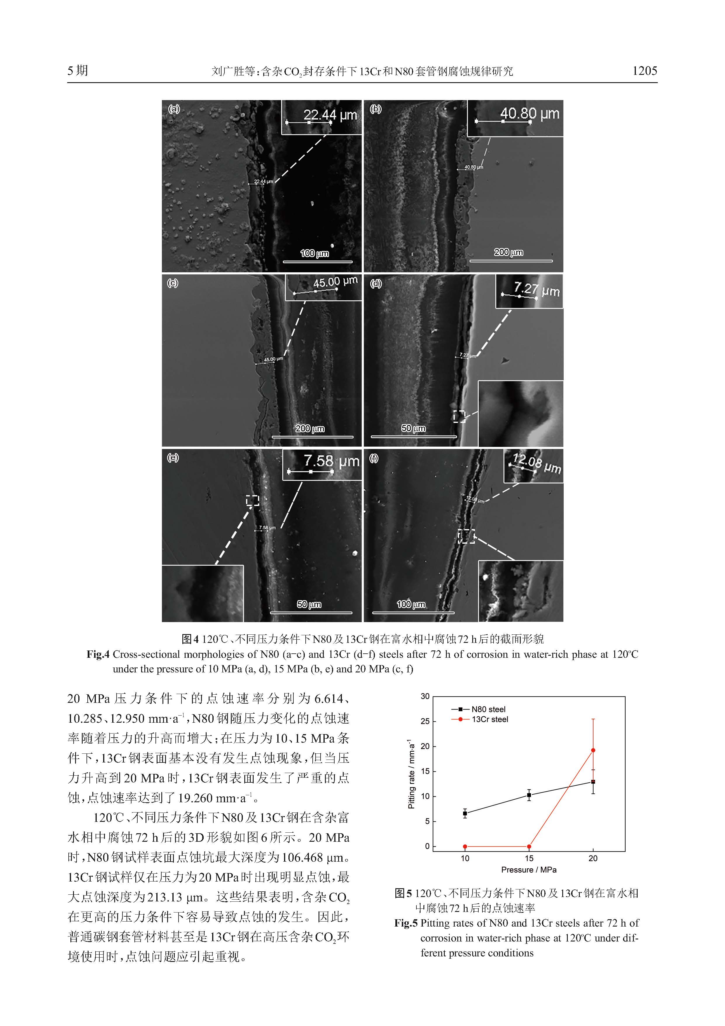 含杂CO2封存条件下13Cr和N80套管钢腐蚀规律研究