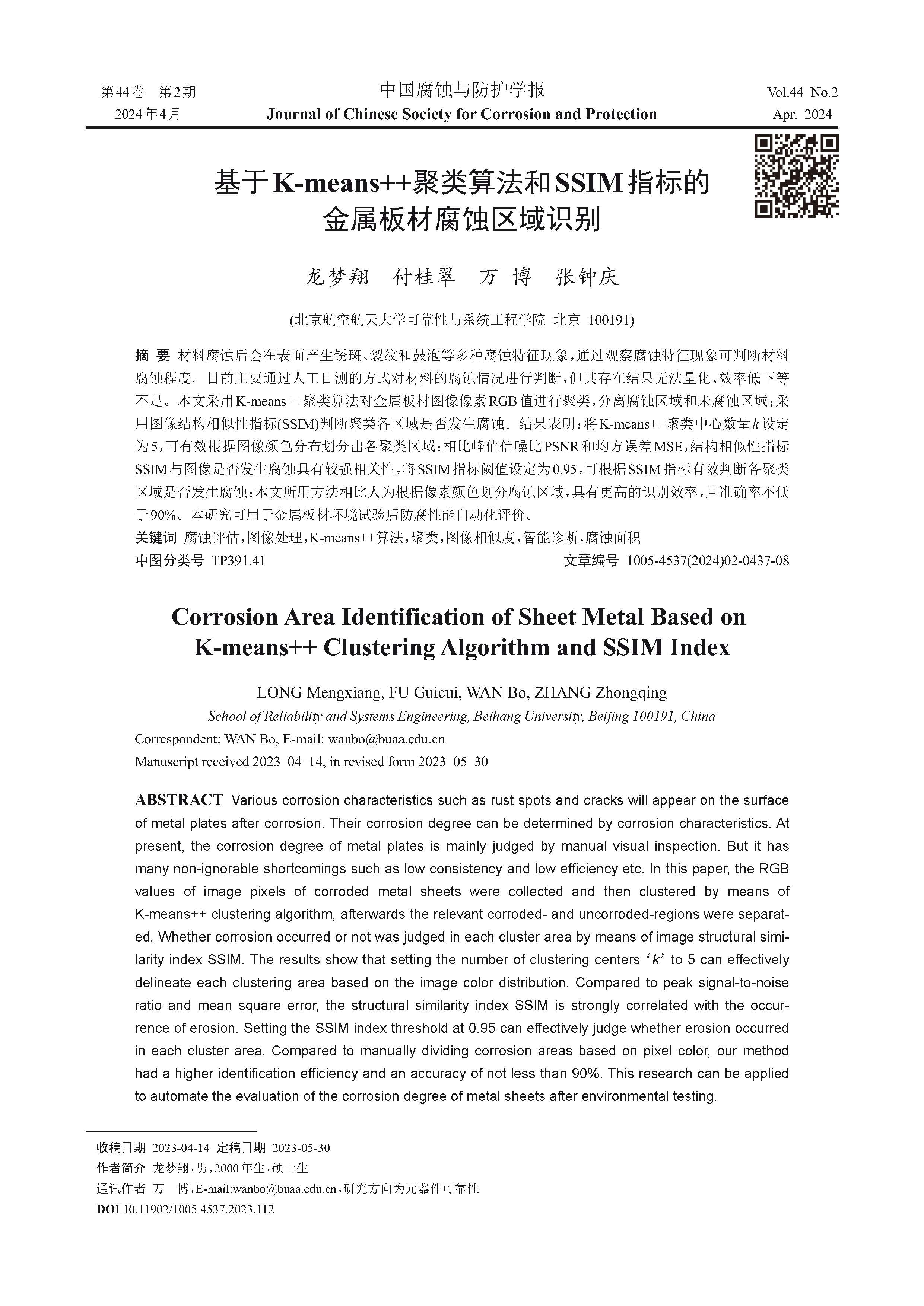 基于K-means++聚类算法和SSIM指标的金属板材腐蚀区域识别