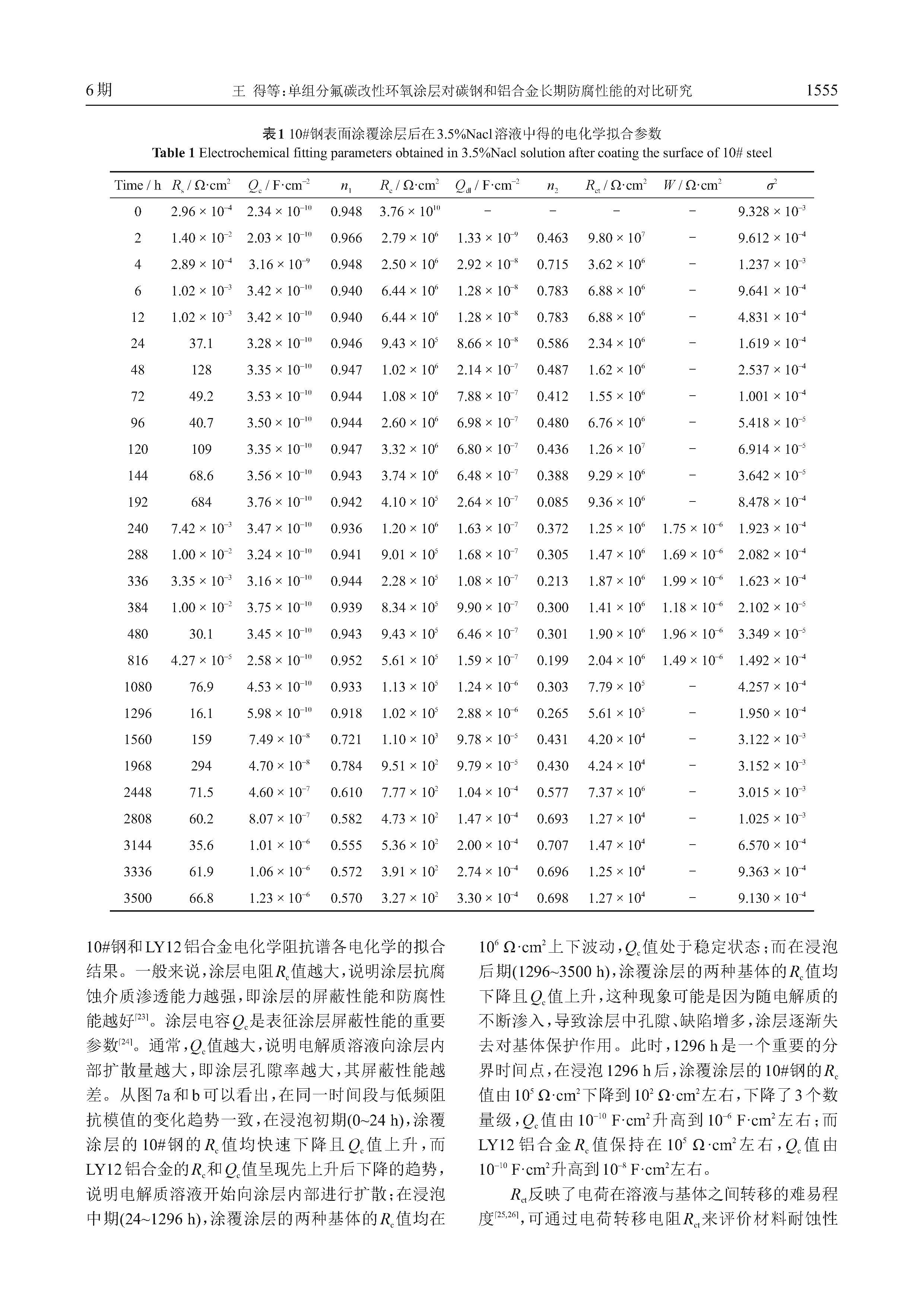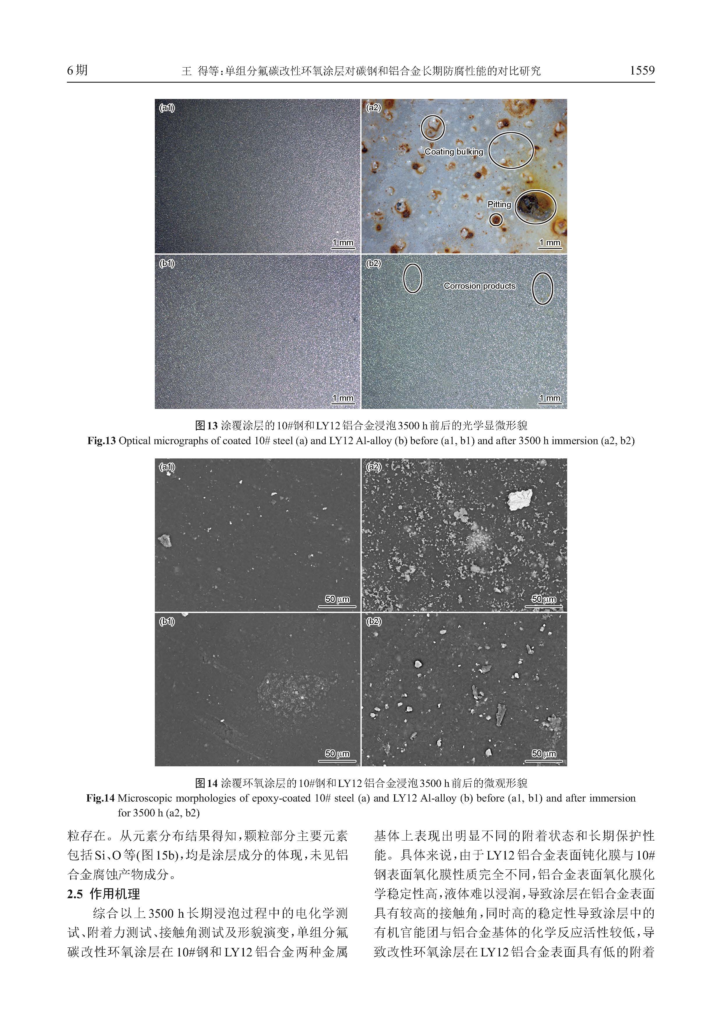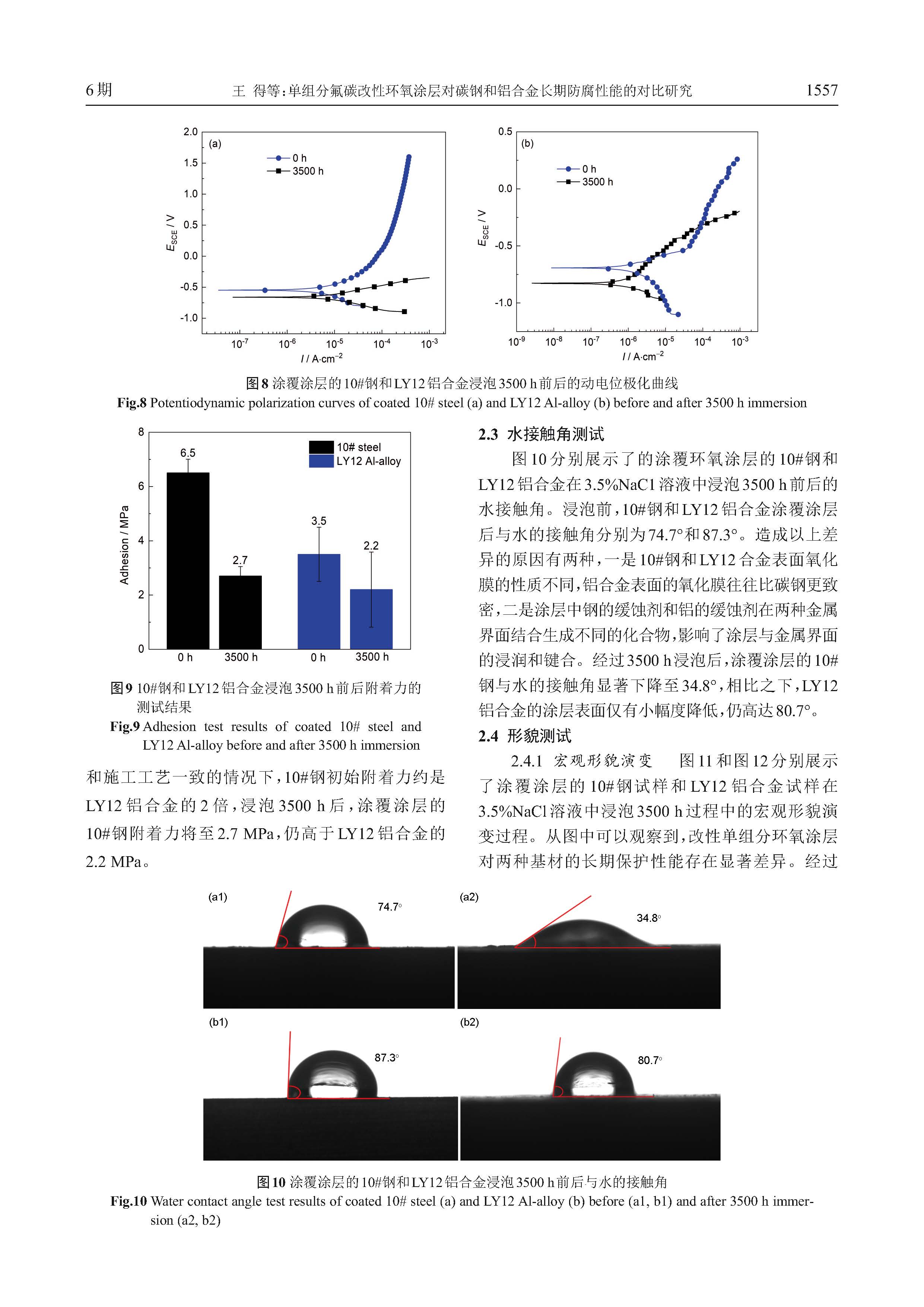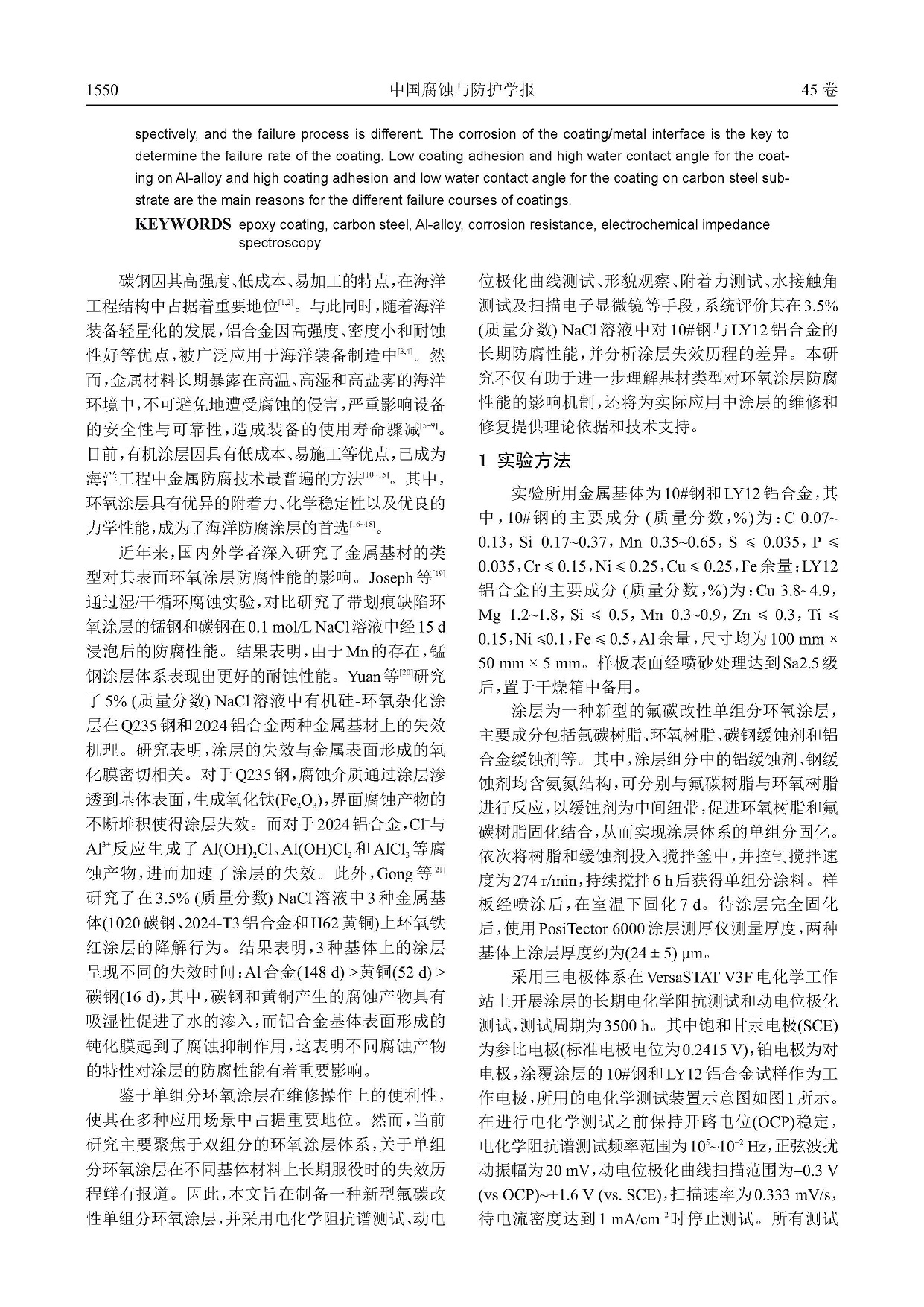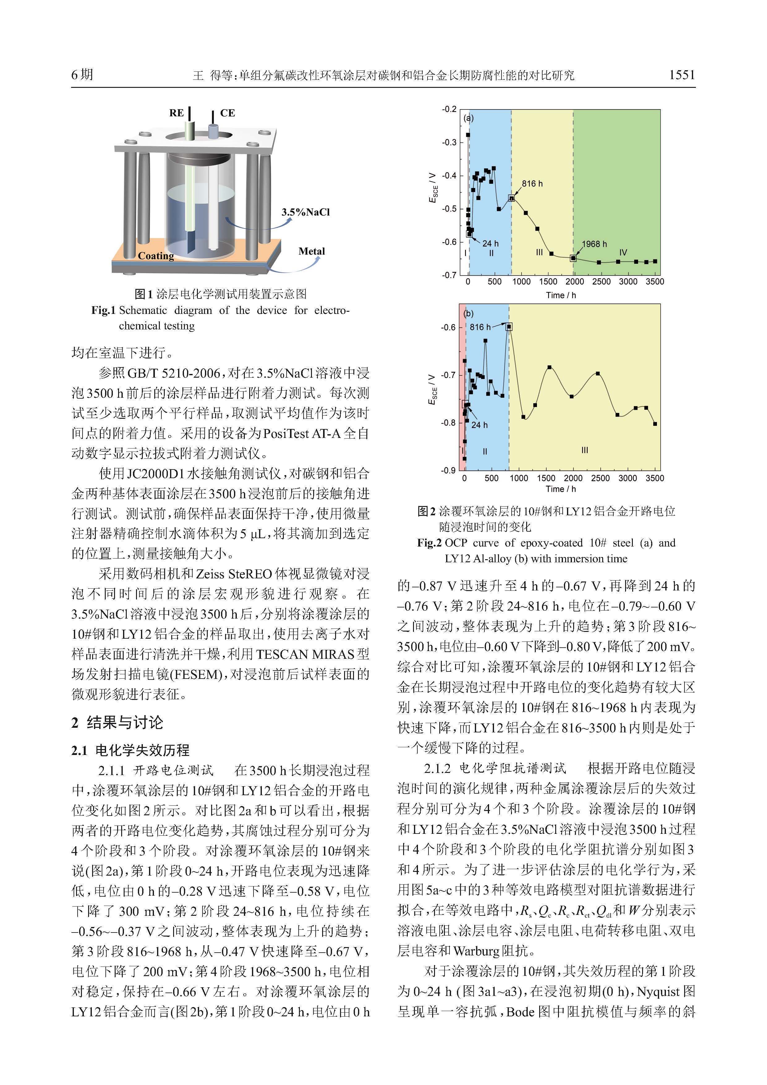 单组分氟碳改性环氧涂层对碳钢和铝合金长期防腐性能的对比研究
