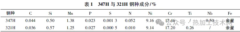 347H与321H不锈钢因具有良好的耐晶间腐蚀、耐高温、抗蠕变性能而广泛应用于航空航天、石油化工等行业。321H不锈钢属Cr-Ni-Ti系不锈钢,Ti添加使基体中第二相主要以TiC形式析出,由于Ti的固碳作用有效抑制Cr23C6析出,有效提升了321H钢种的高温性能和耐晶间腐蚀能力。潘超对321不锈钢中含钛夹杂物析出行为进行研究,发现样品冷却速率对夹杂物析出后尺寸有显著影响,通过水淬冷却TiN夹杂物平均尺寸达到5μm,空冷条件下夹杂物平均尺寸达到6μm,以5℃/min随炉冷却则夹杂物平均尺寸增加至7μm,5μm以上夹杂物较水淬冷却的不足1%增加至80%。Y Li等以SUS321中奥氏体晶粒尺寸为出发点,对马氏体起始转变温度和相变路径进行研究,结果显示,当奥氏体晶粒尺寸增加时,Ms点随之增加,层错能减小;当奥氏体晶粒尺寸<3.5μm时,奥氏体向马氏体转变过程逐渐被抑制。347H不锈钢则属于Cr-Ni-Nb系奥氏体不锈钢,由于Nb的添加使得其具有良好的耐晶间腐蚀以及高温组织稳定性,并随着聚焦式太阳能热发电技术的应用,347H作为熔盐储罐用钢受到广泛关注。SR Akanda等对347H钢种超临界CO2动力循环降解过程中材料厚度( 2.54mm与0.6mm) 的影响进行了研究,研究表明较厚规格347H钢种表面形成完整的保护性氧化膜,最大限度保护基体不被腐蚀。 本研究将固溶处理后的347H与321H钢种进行对比分析,从第二相分布与宏观力学性能的角度观察Nb和Ti两种添加元素对奥氏体不锈钢材料性能的影响,为工程实践提供理论依据和数据支撑。