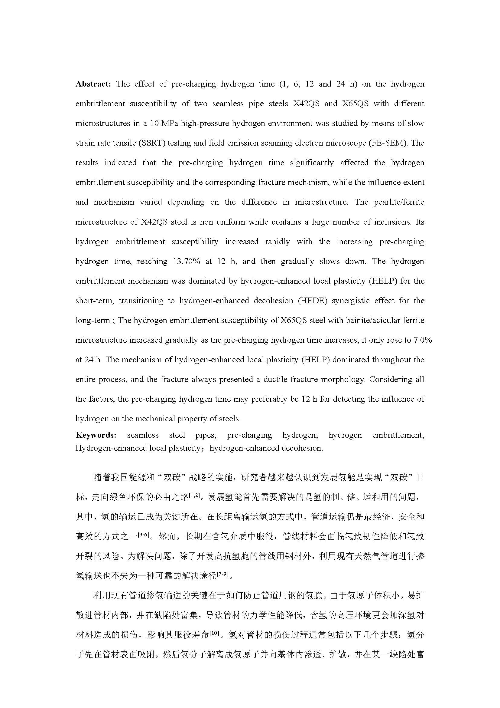 预充氢时间对不同显微组织无缝钢管钢高压氢脆敏感性影响