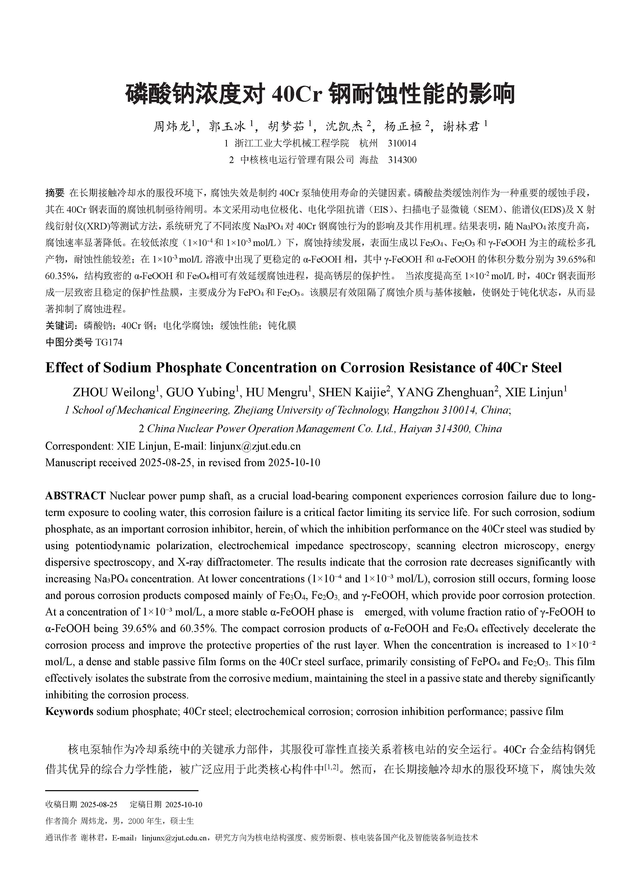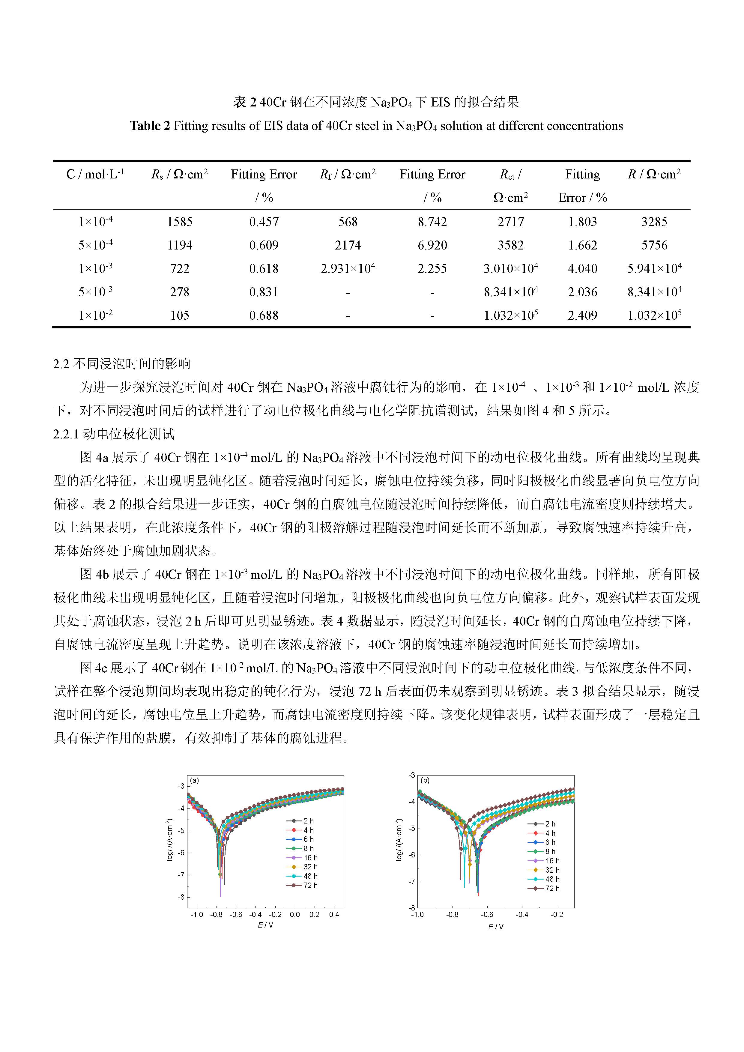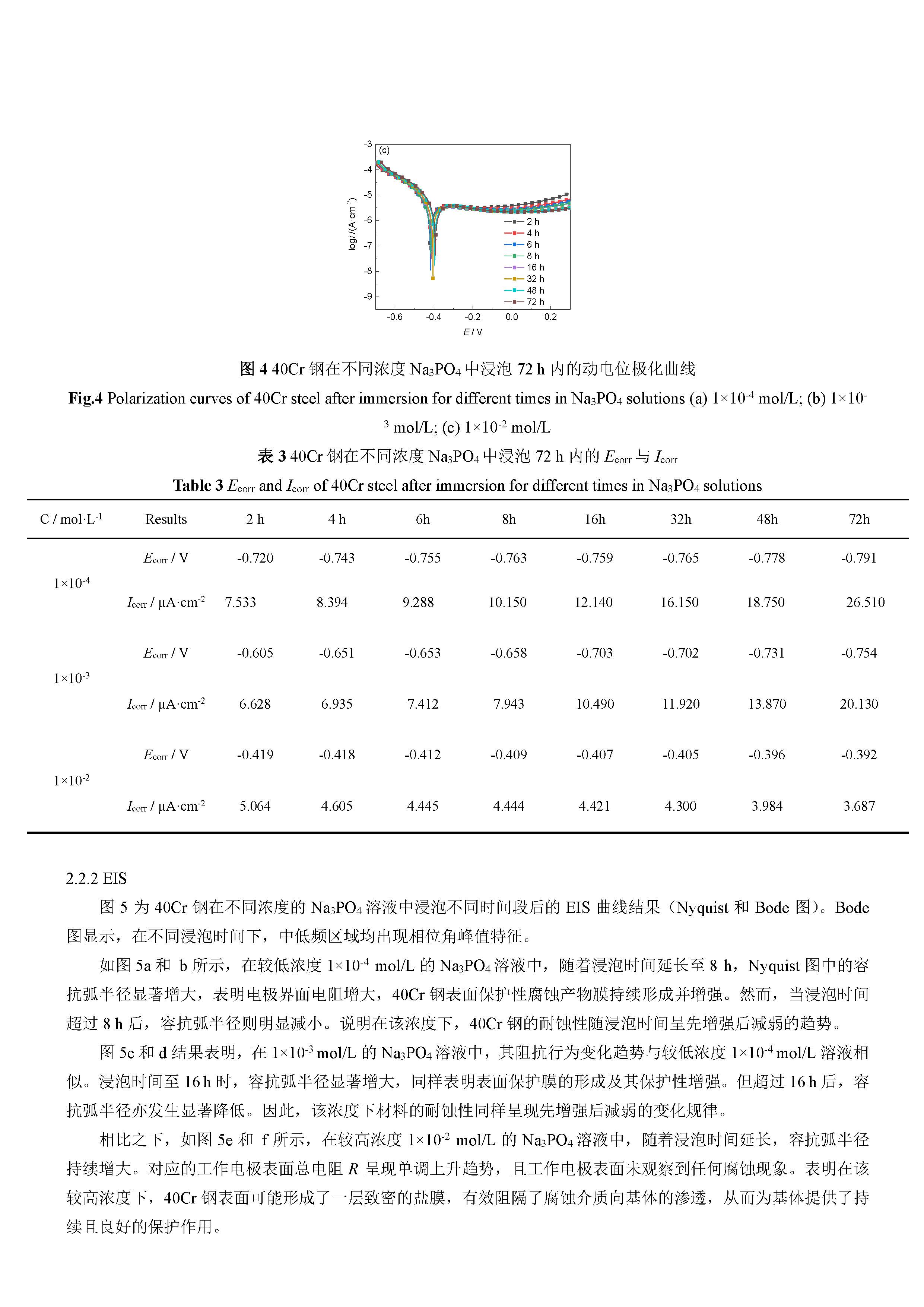 磷酸钠浓度对40Cr钢耐蚀性能的影响