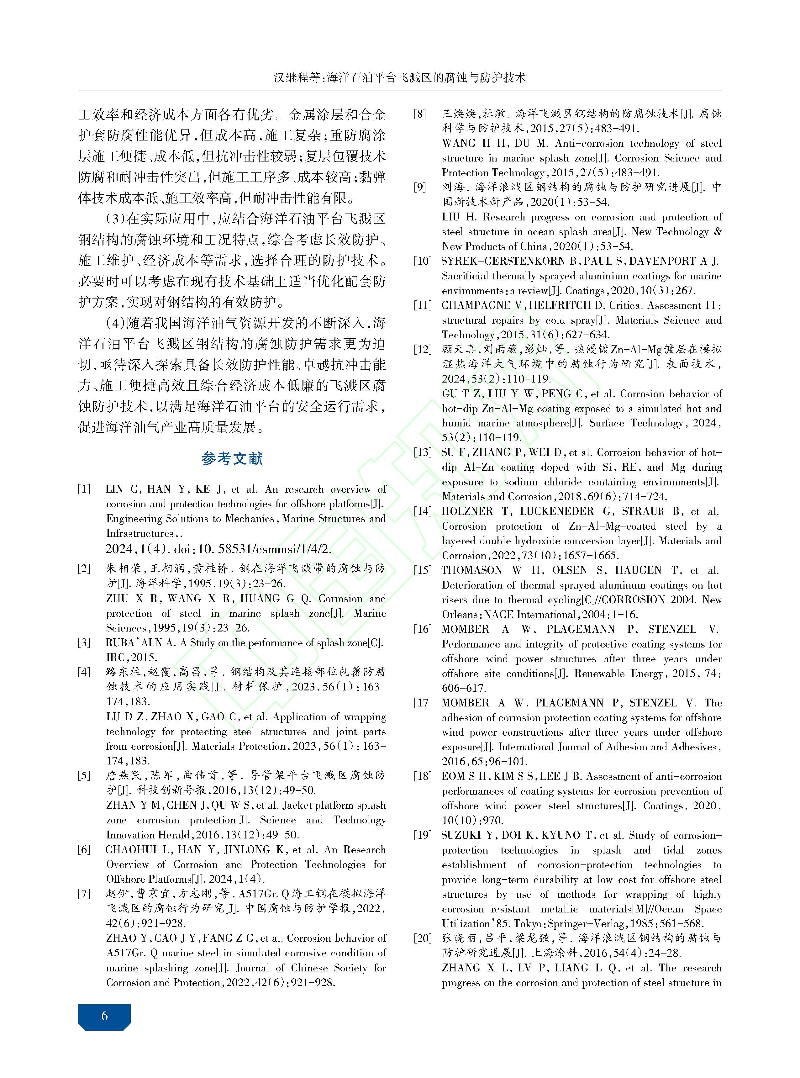 海洋石油平台飞溅区的腐蚀与防护技术