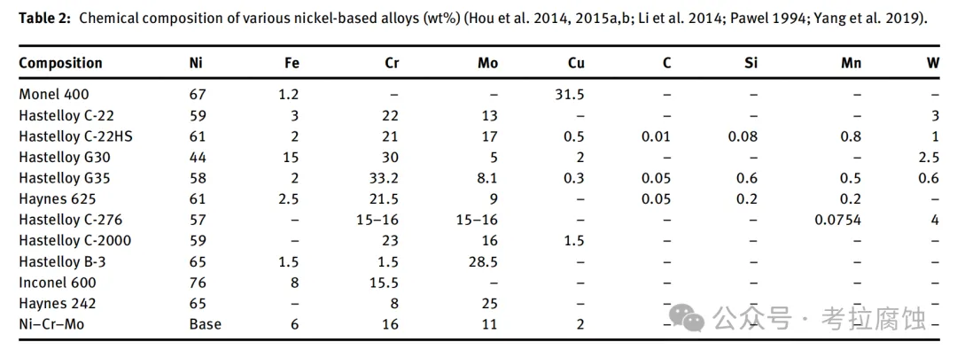 Ni-Cu合金(如Monel 400)耐蚀性优于Ni-Cr-Mo合金。 |