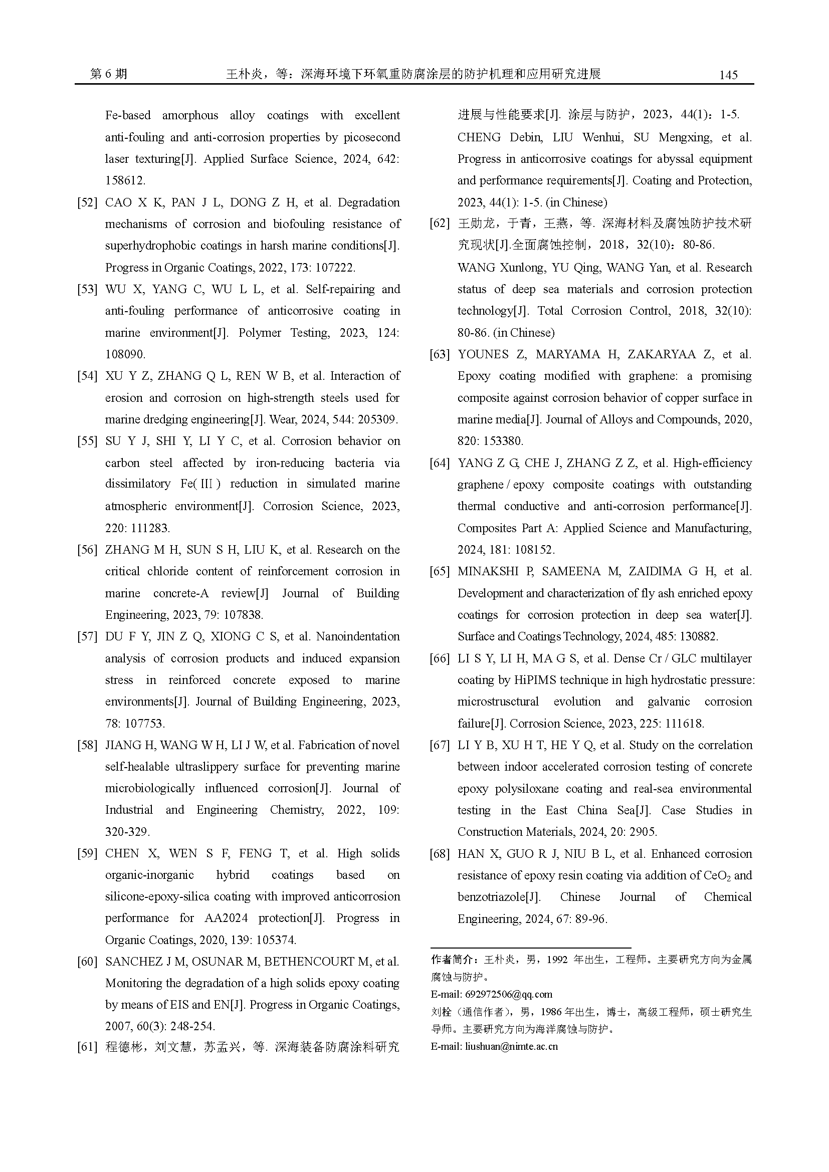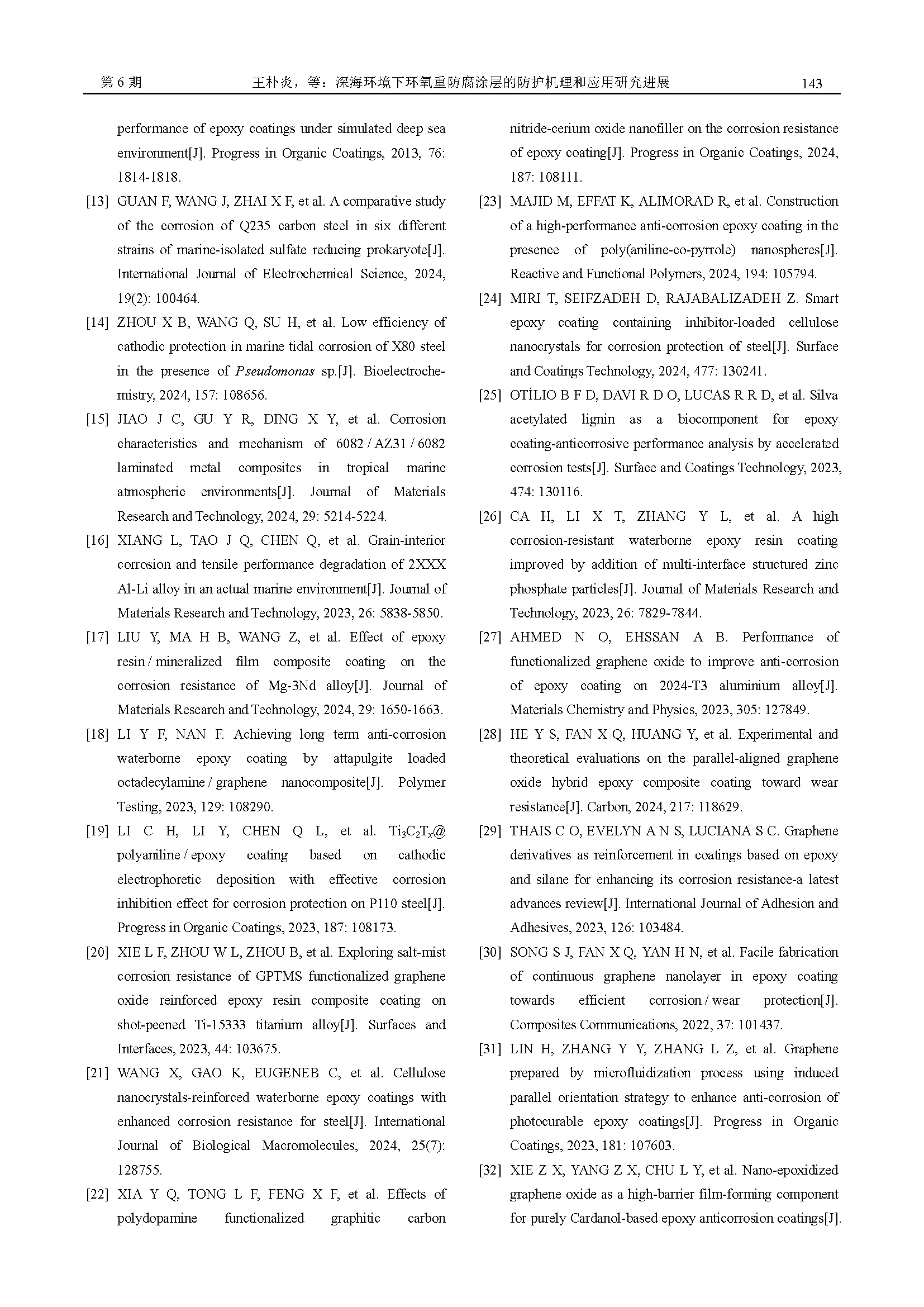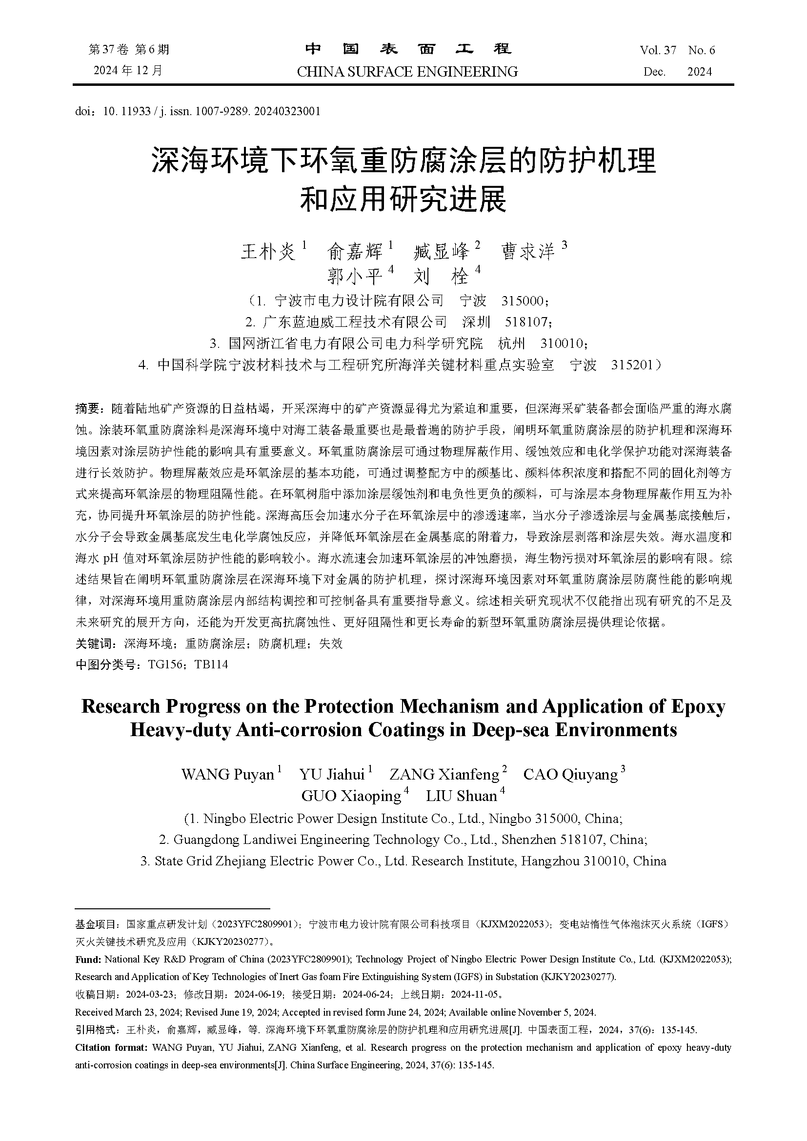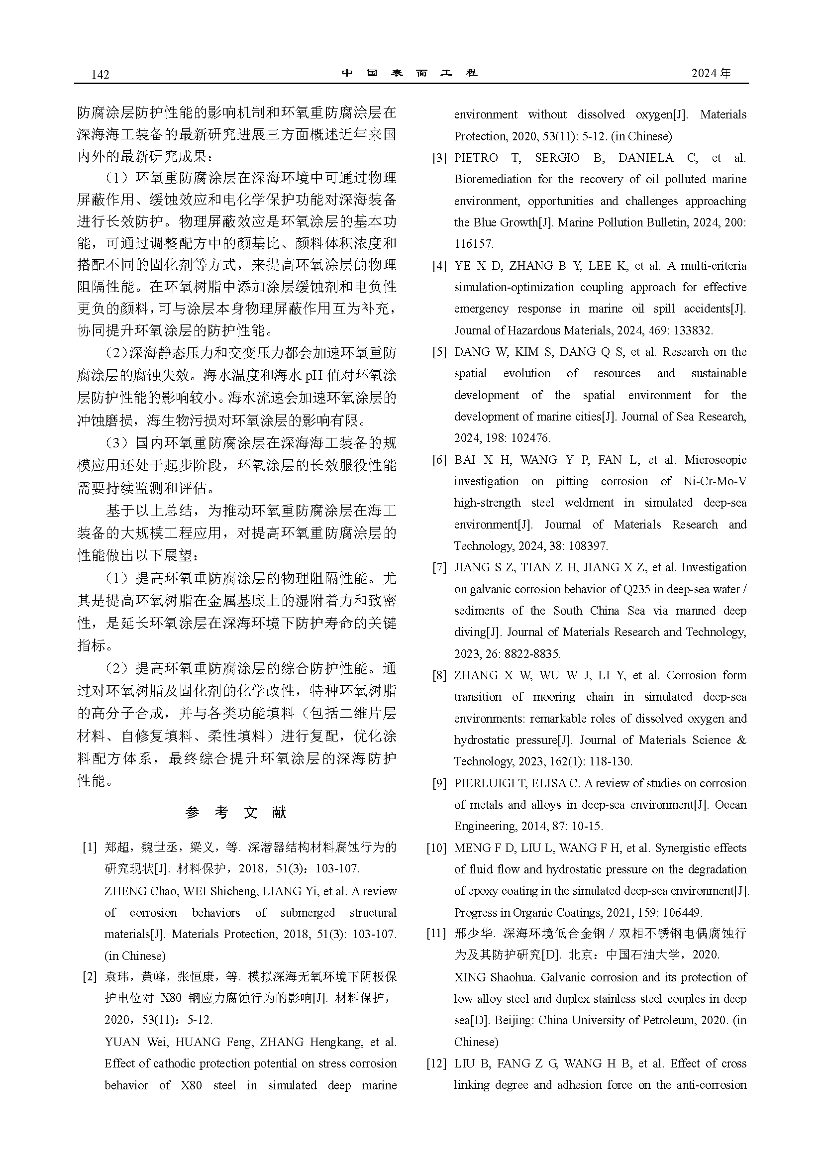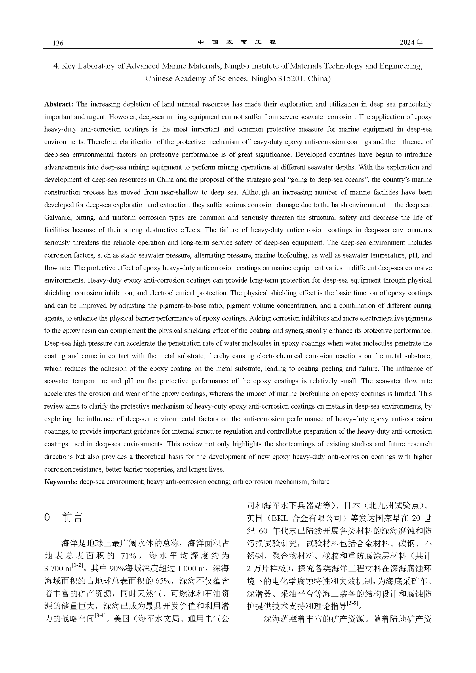 深海环境下环氧重防腐涂层的防护机理和应用研究进展