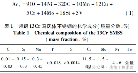 1) 888℃×1h亚温淬火+620℃×6 h回火后13Cr超级马氏体不锈钢的组织主要为回火马氏体,铁素体和逆转变奥氏体,960℃×1h淬火+620℃×6h回火后的组织主要为回火马氏体与逆转变奥氏体。在同等回火次数与回火温度下,888℃亚温淬火的组织更细小,析出的碳化物更多,同时产生的逆转变奥氏体更多,二次回火同样有助于细化组织。 2) 888℃×1h水淬+620℃×6h回火+610℃×3h回火后13Cr超级马氏体不锈钢的逆转变奥氏体含量最高,硬度与屈服强度最低,低温冲击性能最高。 3) 亚温淬火产生的铁素体有助于逆转变奥氏体的形成,铁素体与逆转变奥氏体共同作用,有利于降低马氏体不锈钢的硬度,提高马氏体不锈钢的低温冲击性能,提升马氏体不锈钢的综合力学性能。