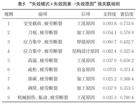 失效分析是对产品故障进行系统化分析和研究的过程,涉及工程学、材料科学、计算机科学等多个领域。失效分析工程师通过对失效部件的服役环境、工艺类型及断口特征等多种关键因素进行综合分析,找到失效的根本原因,并制定有效的预防和改进措施。有效的失效分析对提高产品的可靠性和安全性具有重要意义,其广泛应用于航空、航天、航海、汽车制造、电子设备和医疗器械等多个领域。近年来,对产品的可靠性要求日益提高,同时产品的功能、结构、受力、服役环境等越来越复杂,传统的人工失效分析方法难以从大量数据中找到失效的关键因素,以及因素间的耦合关系,且人工法受专家经验的影响较大,分析过程须耗费大量精力。 为了应对失效分析不断增大的复杂性,自然语言处理和数据挖掘等技术成为提高失效原因诊断效率的有效手段,近年来该技术在失效分析领域得到广泛应用。随着失效分析工作的逐年开展,失效分析案例逐渐增多,蕴含的数据价值不断显现。应用自然语言处理技术对大量失效分析文档进行文本挖掘,提取文本特征,并结合各类数据挖掘方法对文本特征进行分析,对识别失效模式和潜在失效风险等极具应用价值。LIU等应用自然语言处理技术对管道事故叙述文本数据进行文本挖掘,并结合K-means聚类分析方法,识别造成管道事故的影响因素,为管道系统的维护和安全管理提供了科学依据。HALIM等综合分析了多个管道事故数据库,开发了一种基于大数据和机器学习技术的因果模型,揭示了不同因素之间的复杂关系,研究成果在提高管道事故风险预测准确性等方面具有重要作用。CHOKOR等对建筑领域大量事故报告进行文本挖掘,采用聚类分析方法对建筑事故报告类别进行划分,提高了事故报告的处理效率。杨晓等设计并建立了船舶系统典型材料失效分析案例数据库,通过对船舶系统失效案例的多层级分类,提高了失效分析工程师获取信息的效率。 关联规则挖掘是数据挖掘领域中的重要研究课题之一,其在发现事物间隐藏关联关系的数据挖掘场景下具有良好的表现。失效原因排查及诊断过程涉及的失效因素种类多,各因素间相互影响。应用关联规则对失效分析案例数据进行分析、挖掘,形成失效分析关联知识并保存,对产品失效原因的推理具有重要意义。 然而,自然语言处理和数据挖掘等技术在失效分析领域起步较晚,且聚焦在具体的领域,如管道事故、换流站故障,以及轨道电路故障等,缺少可以覆盖不同类型应用场景的统一模型框架,且现有研究对失效文本的挖掘方法通常为聚类分析、神经网络等,这些方法对分析结果的可解释性较差,不利于对产品失效原因进行推理。与此同时,现有的关联规则挖掘研究大多与算法效率提升有关,较少研究失效案例分析与应用的改进方法。因此,在失效分析领域,如何根据失效案例数据的实际特点及结构,结合自然语言处理技术,应用关联规则挖掘方法实现失效分析案例的分析挖掘,建立失效因素关联路径,辅助提高失效原因排查的效率、准确性,成为亟待解决的问题。 针对在复杂应用场景下,传统失效分析技术难以在大量数据中发现失效因素和失效原因间潜在关系的问题,研究人员提出了一种结合自然语言处理技术、关联规则挖掘算法的失效分析案例文本挖掘方法,同时发明了基于Apriori算法的两阶段失效分析案例文本关联规则挖掘方法,建立了失效分析案例文本挖掘方法框架;对某船舶单位的失效案例文本进行了有效验证,研究结果对产品失效原因诊断和故障作用机制解释方面具有重要的辅助借鉴作用。 基于Apriori算法的失效分析案例文本挖 掘方法框架设计 基于Apriori算法的失效分析案例文本挖 掘方法优化与工程应用 结论与展望