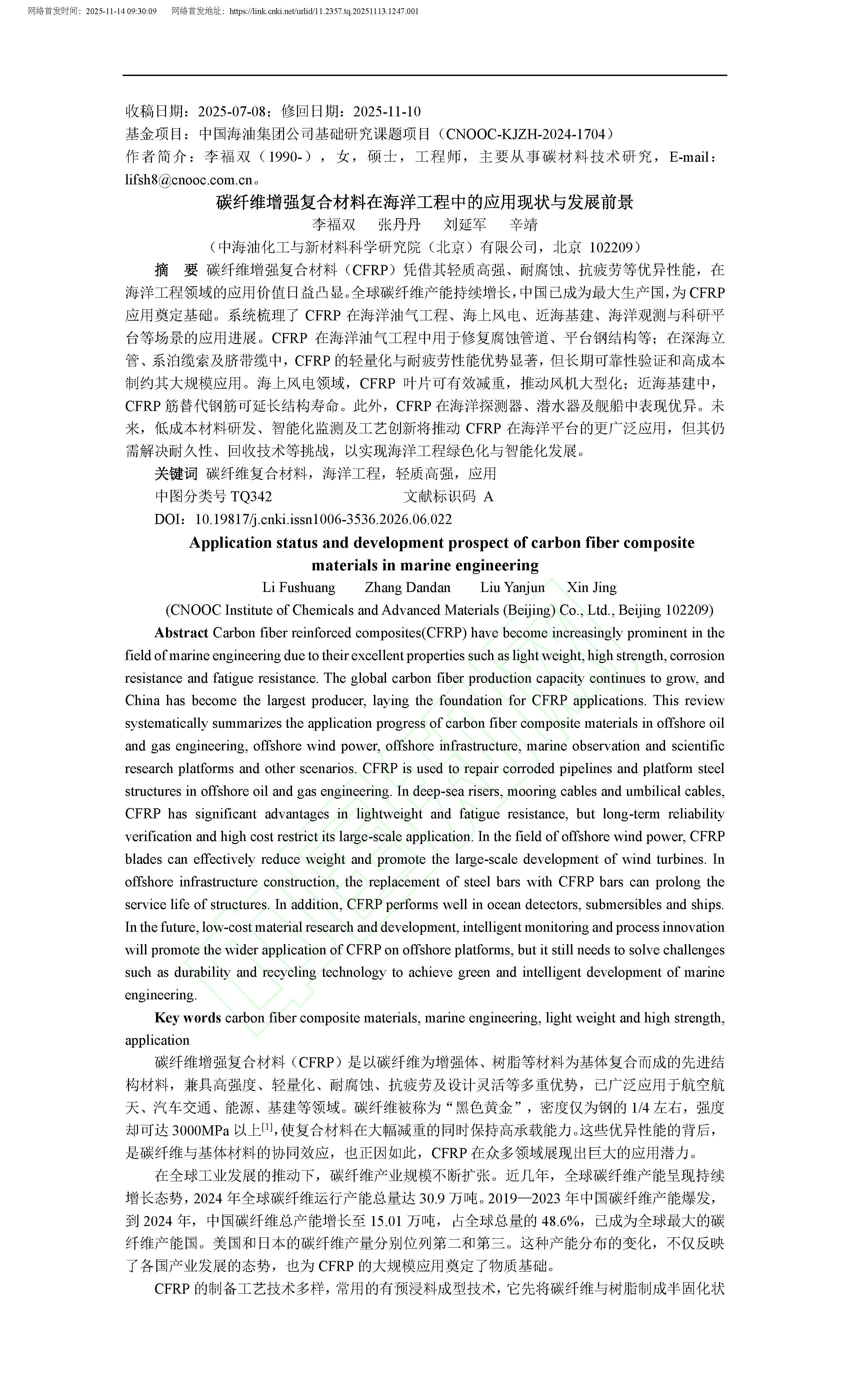 碳纤维增强复合材料在海洋工程中的应用现状与发展前景